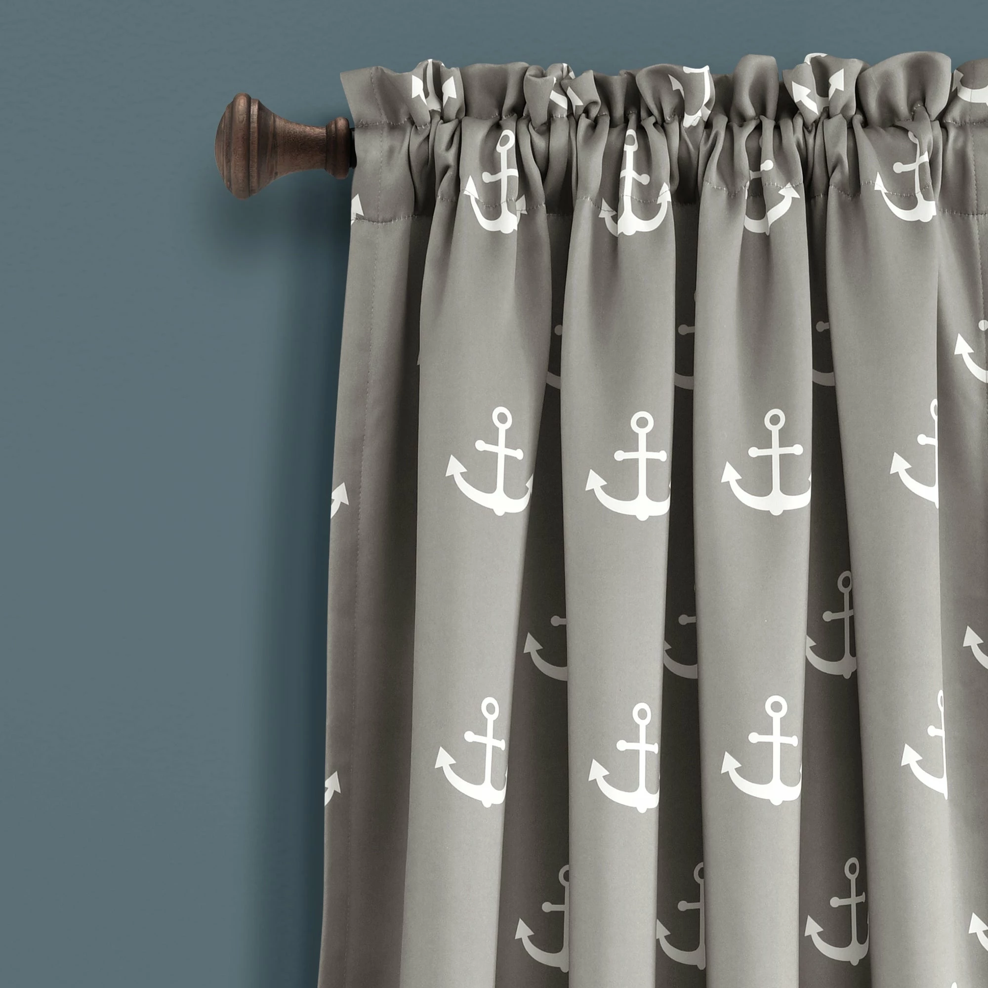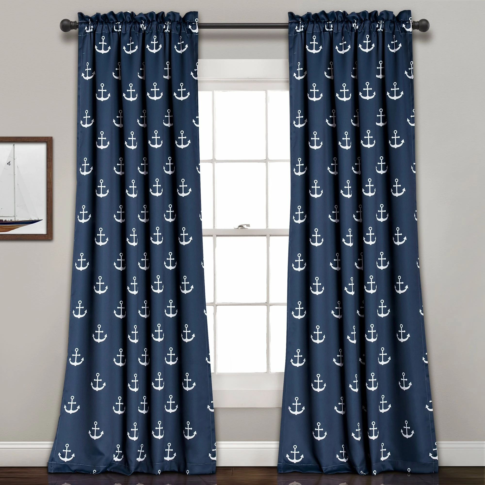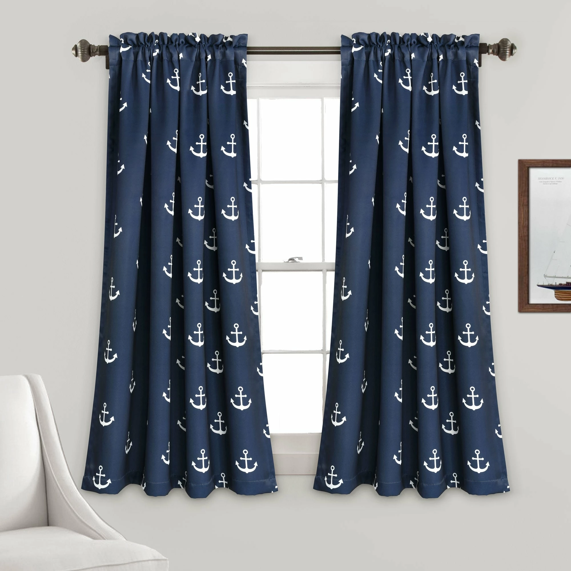 Darken your bedroom while displaying a nautical theme these thick window curtain panels featuring an anchor pattern. This machine-washable two-piece set features soft polyester construction for lasting wear and easy care.
