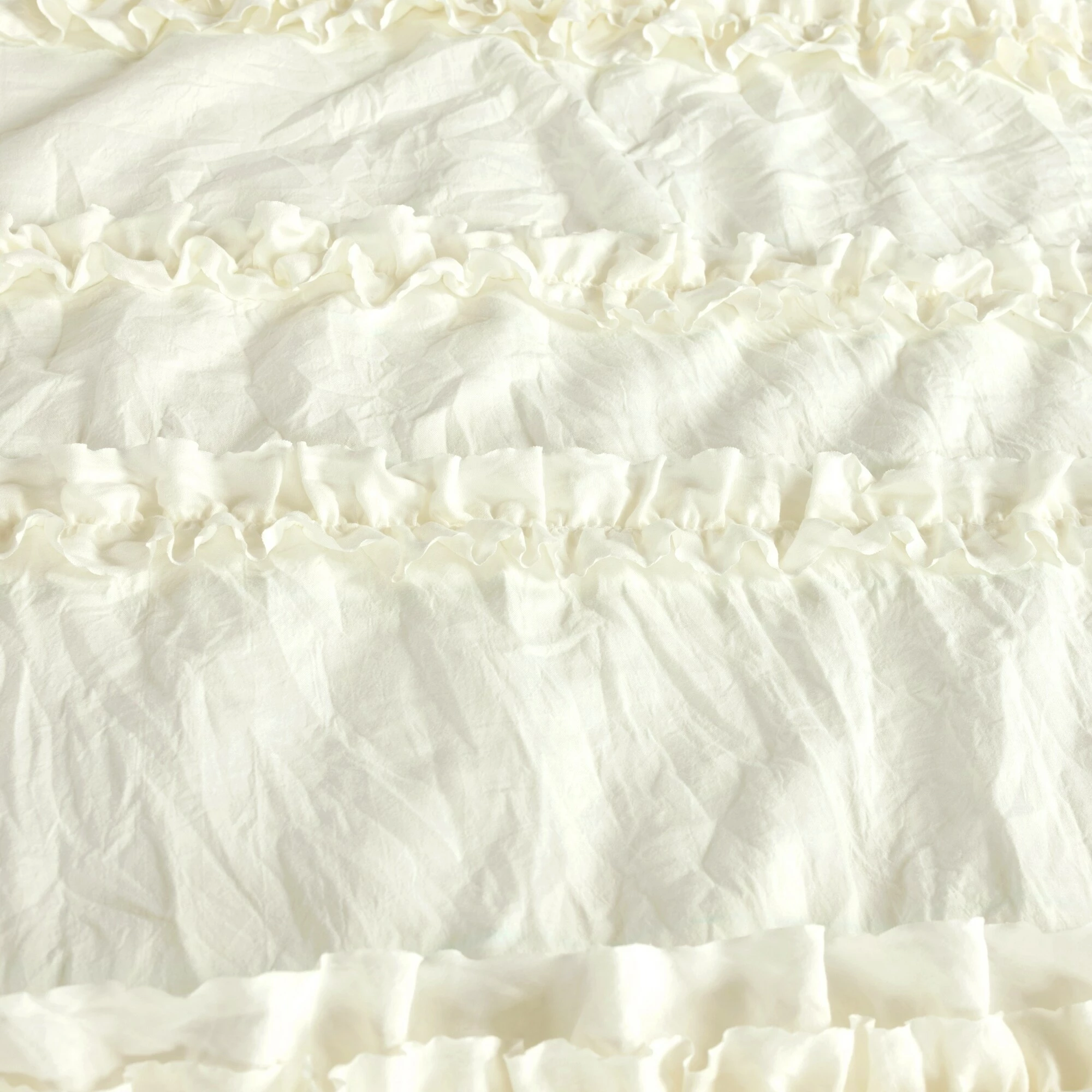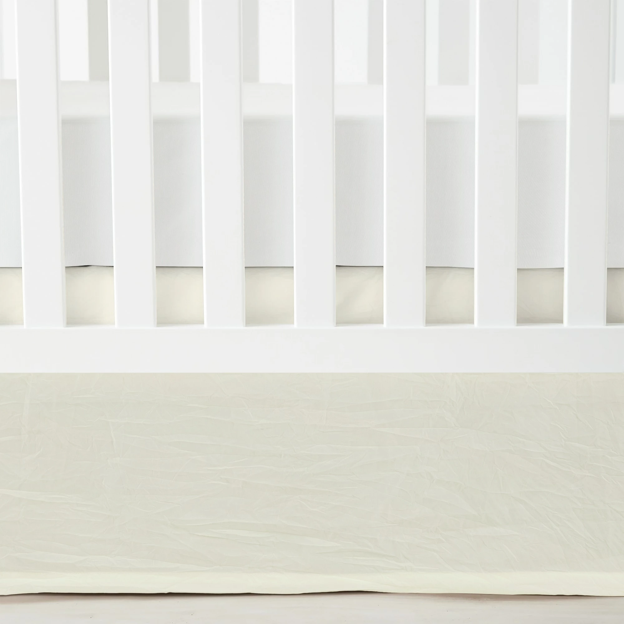 Layers of super soft ruffles arranged in a solid striped pattern give this charming quilt a fresh yet timeless appeal that coordinates beautifully with the ultra-soft fitted sheet and a tailored crib skirt that features split corners for easy attachment around the crib. Perfect for cottage or farmhouse themed nurseries or toddlerโs rooms, the design of this solid 3-piece set is flexible enough to suit any dรฉcor style. This bedding set is STANDARD 100 by OEKO-TEXยฎ certified, which means the fabric, dyes and all components have been tested in an independent laboratory and certified against a list of more than 350 harmful substances. Easy-care fabric makes upkeep of this bedding set a breeze. Please refer to label for full care instructions.