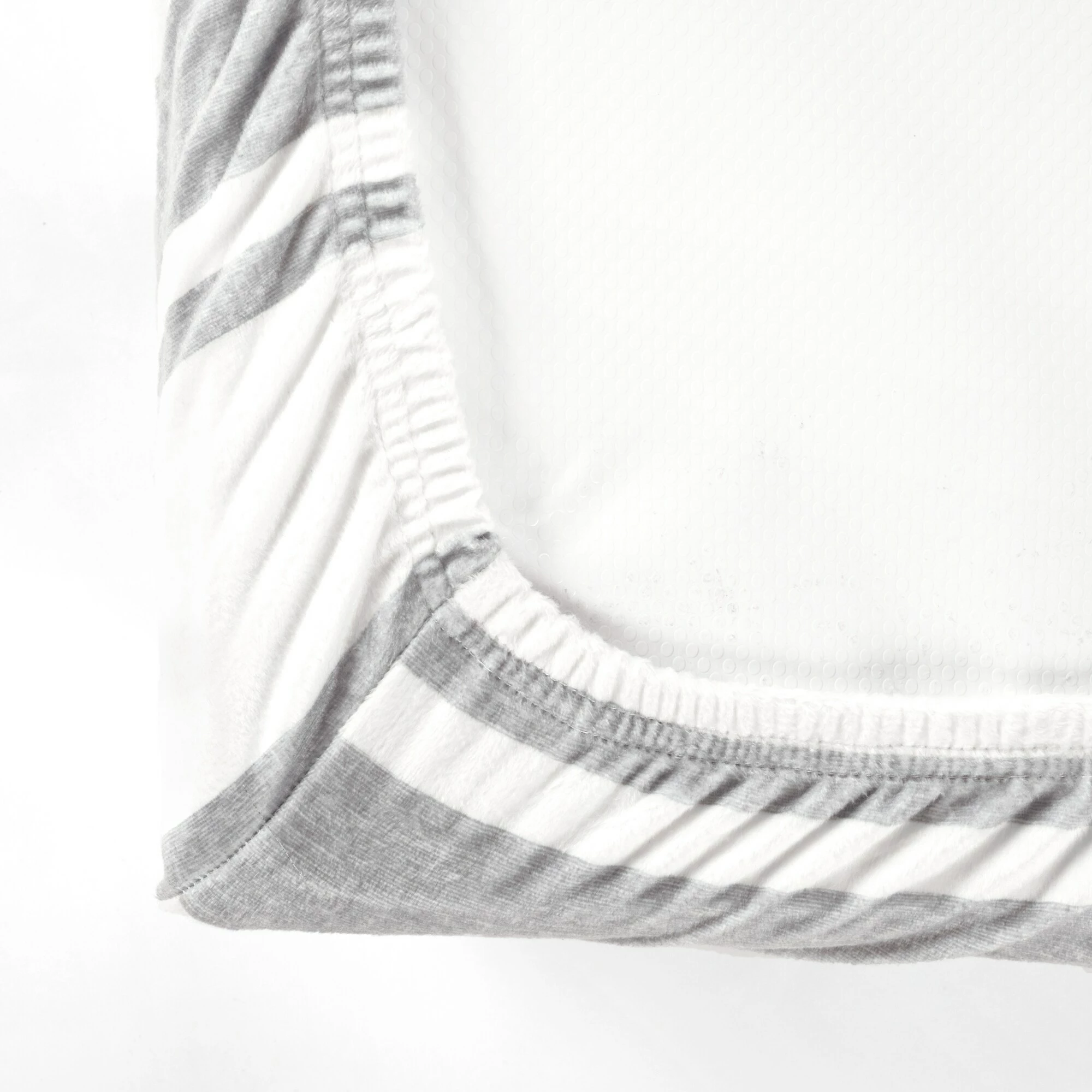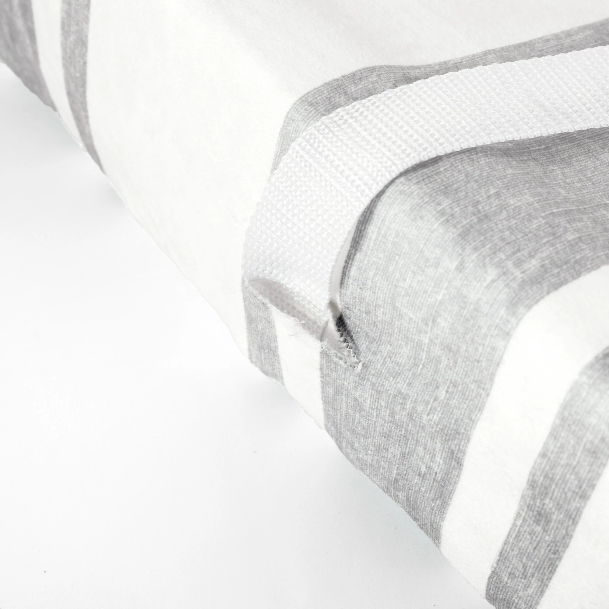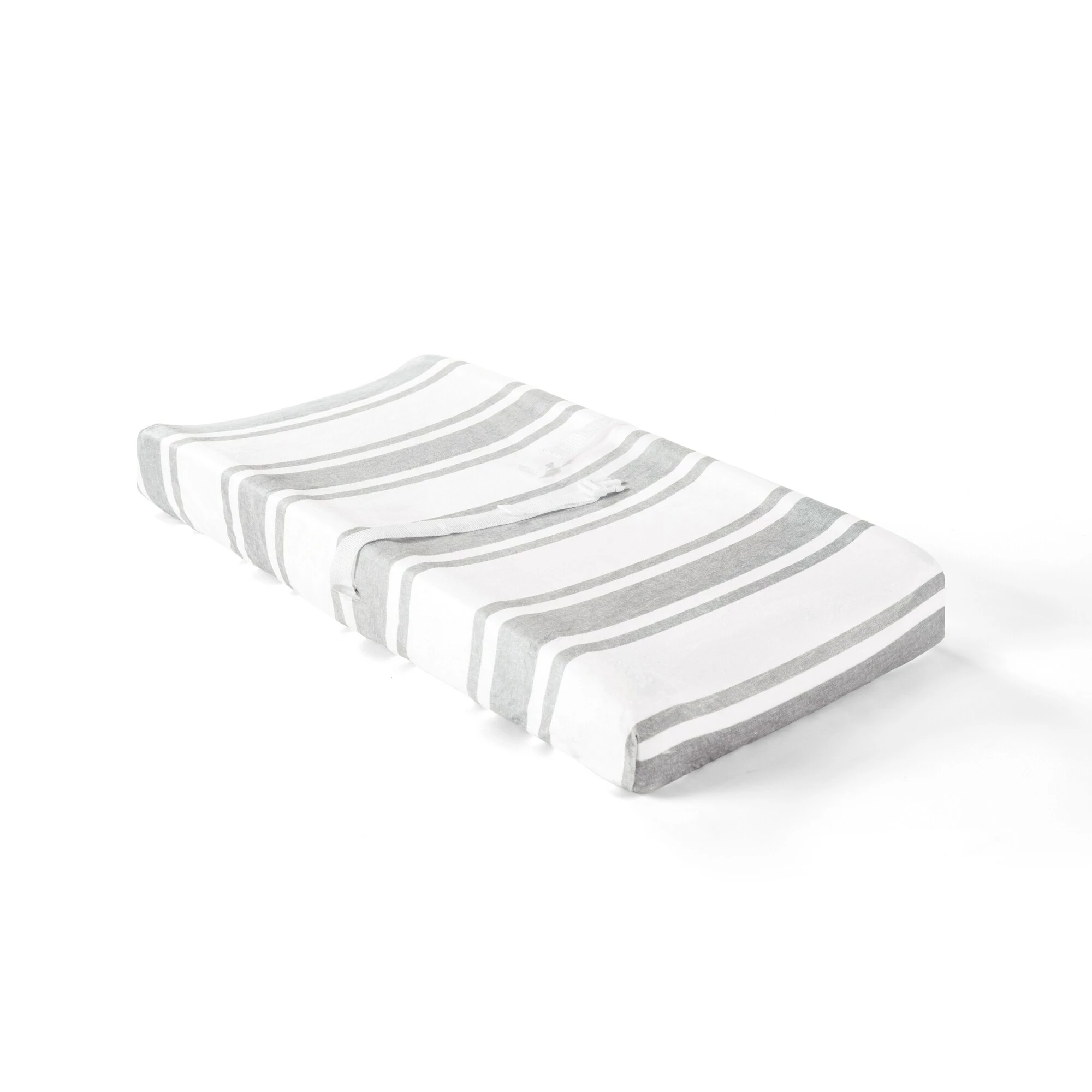 This plush and stylish changing pad cover helps make changing diapers a breeze! Designed for ultimate comfort and a stay-put fit, the oh-so-soft fabric is printed with classic stripes that add a designer look to any nursery. Easy Care.