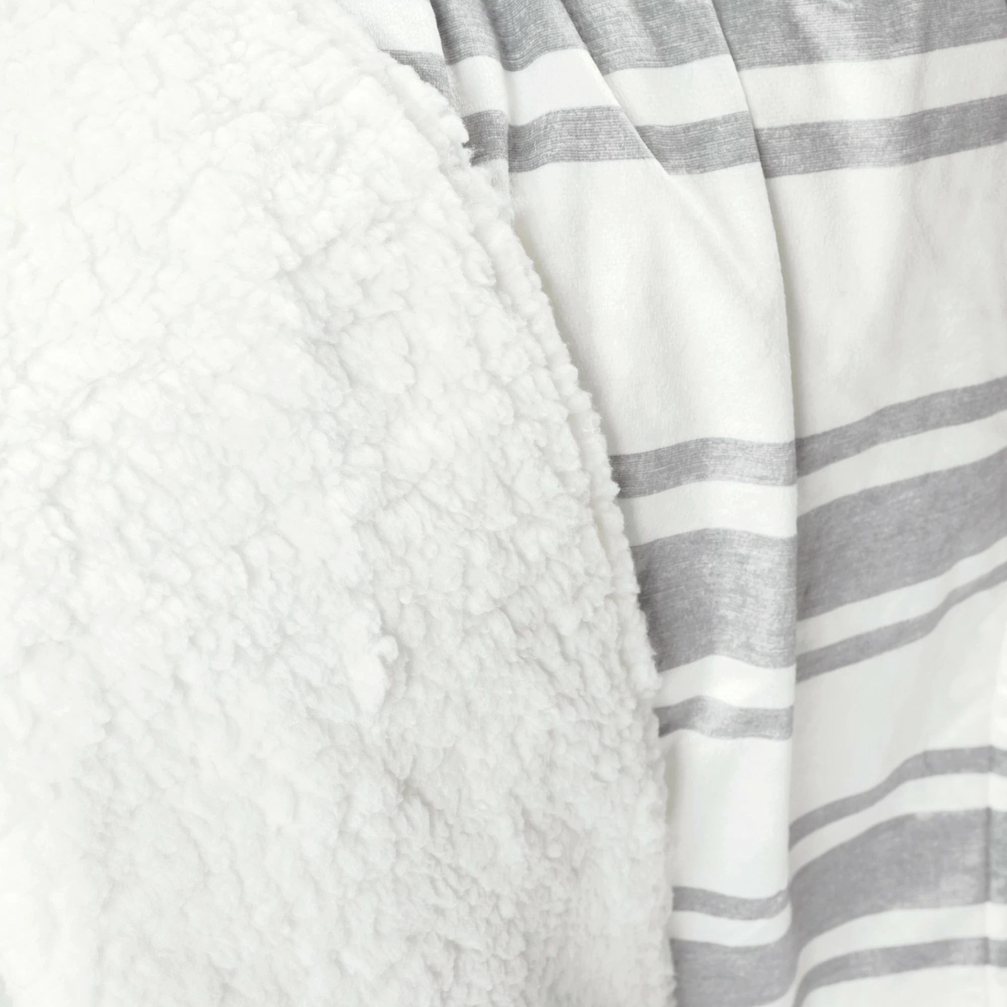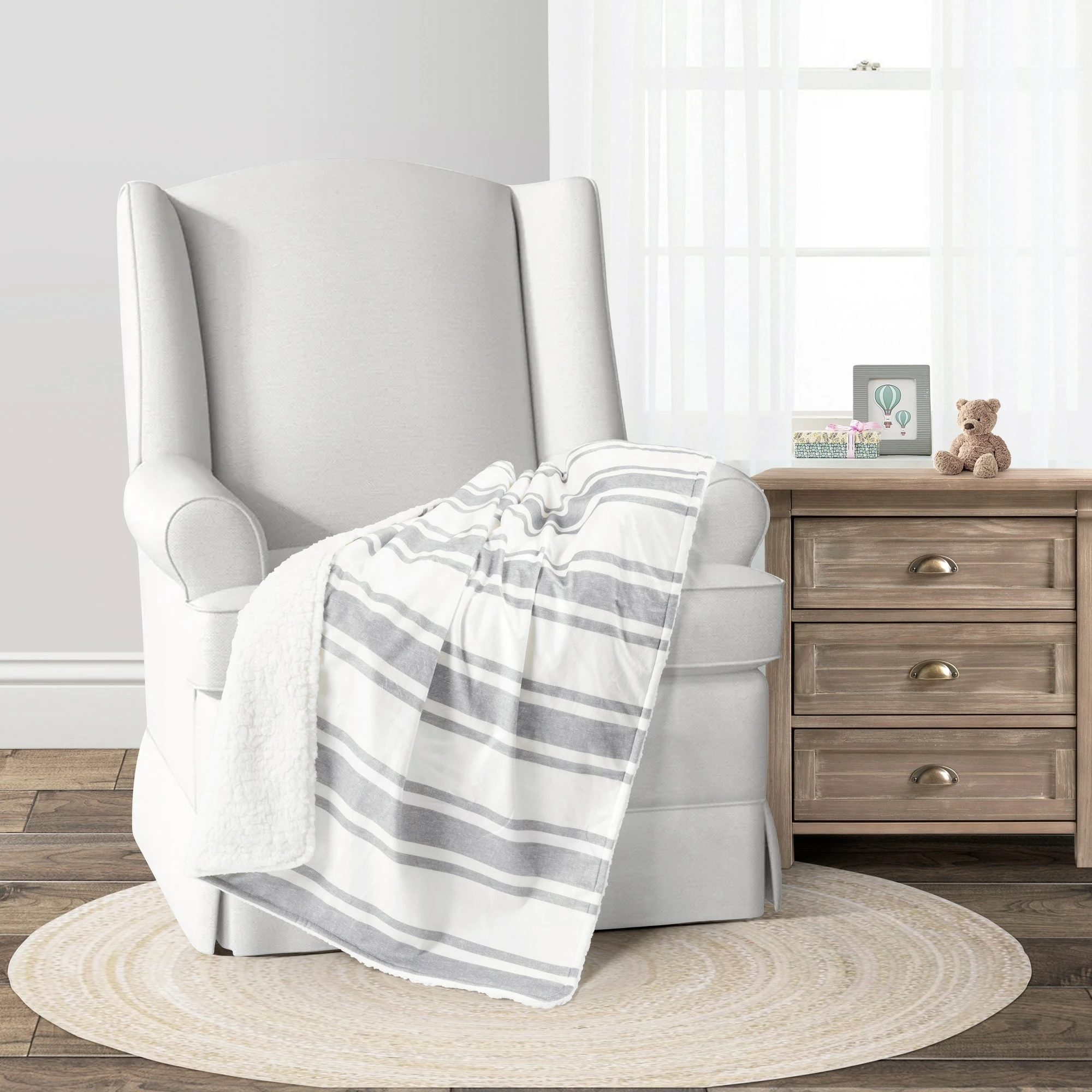 Style your nursery with this soft and cozy sherpa blanket. Designed for ultimate comfort, the oh-so-soft fabric is printed with timeless, classic stripes that add extra comfort for baby and a designer look to any nursery or toddler’s room. Easy Care.