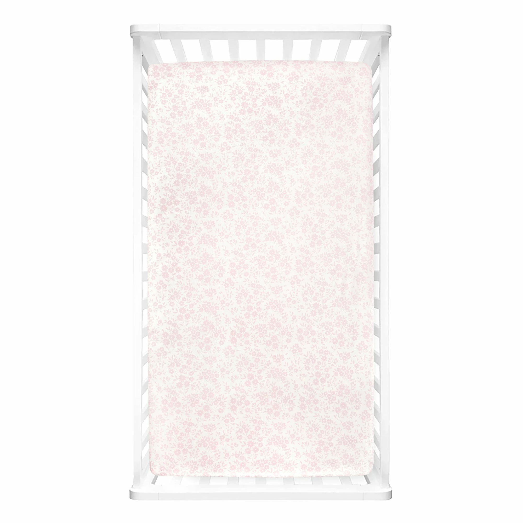 Adorn your cozy cottage themed nursery with this floral garden STANDARD 100 by OEKO-TEXยฎ certified fitted crib sheet. The hand drawn flowers are delicate and enrich your nursery decorations. The soft fabric and colors provide a restful sleep setting.