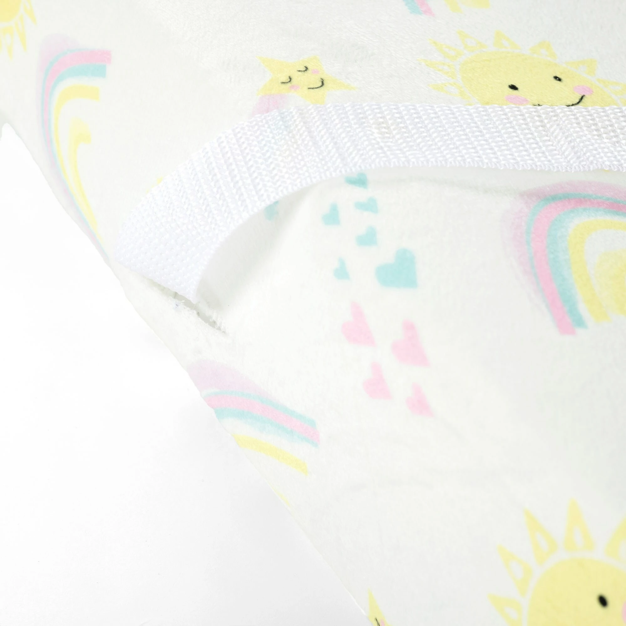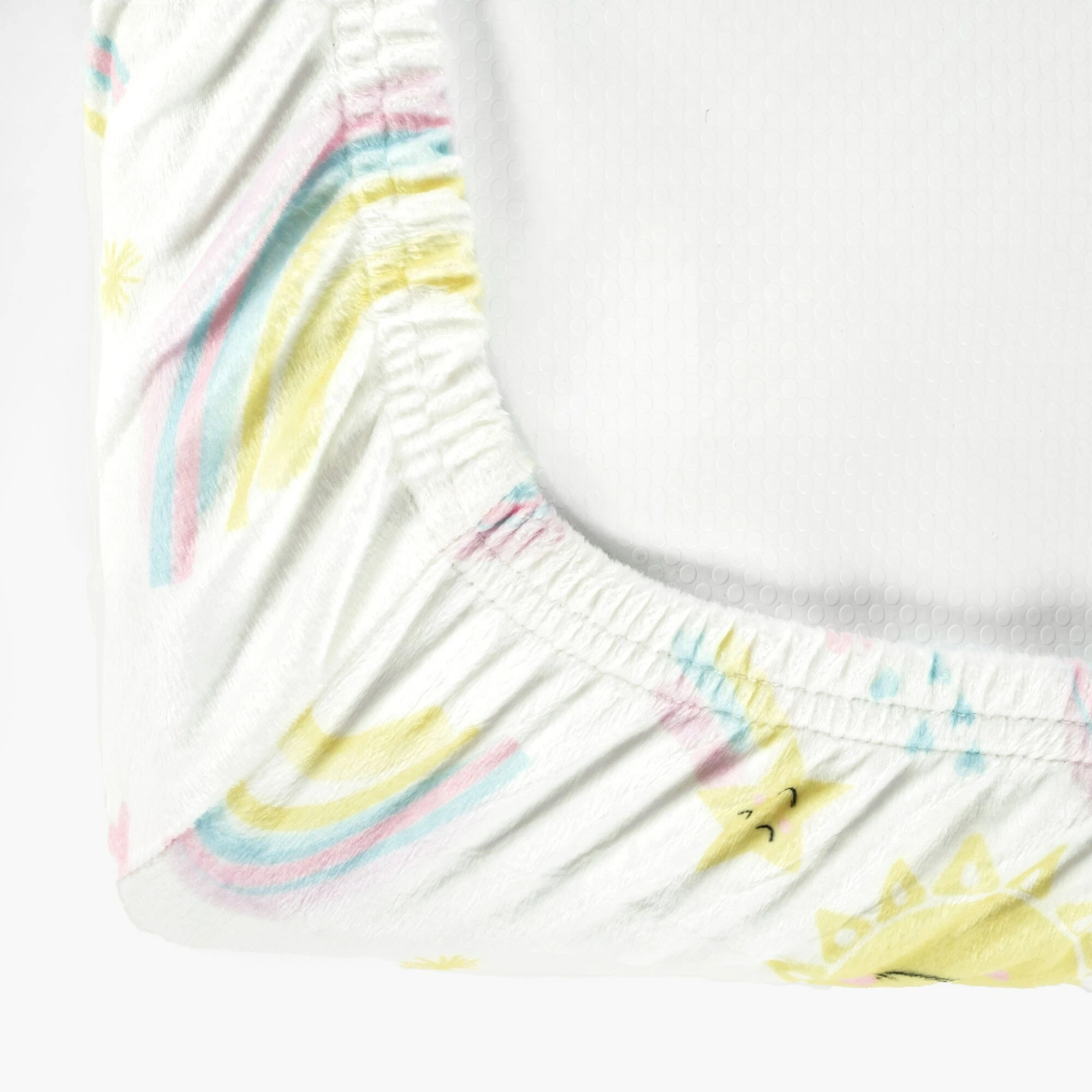Shower your baby’s crib with sunshine, stars and rainbows. This STANDARD 100 by OEKO-TEX® certified super soft changing pad cover is perfect for a pink or space themed nursery. The soft colors in the design match existing decor easily.