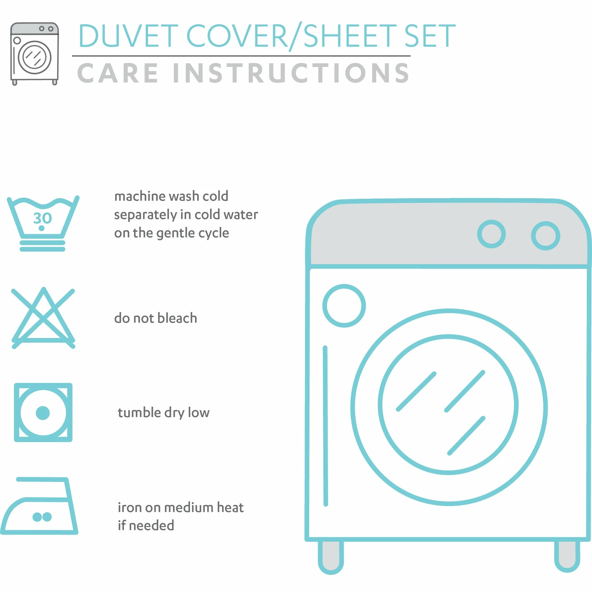 Machine Wash Cold Separately With Similar Colors. Gentle Cycle. Do Not Bleach.