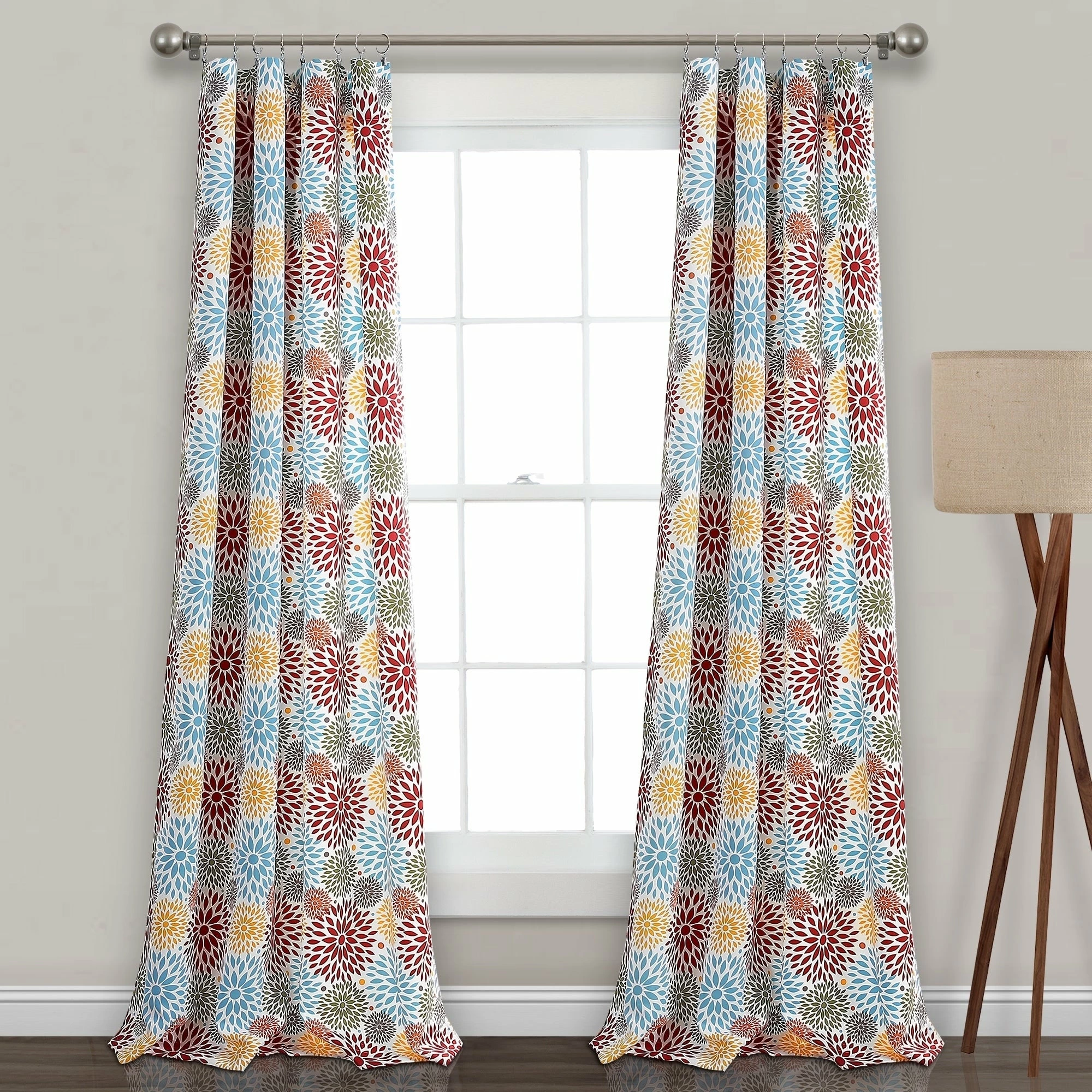 The flowers in this design appear to be expanding like a fireworks display. It’s a unique, abstract design that works beautifully in any room in your home. These panels are sold by the pair and offer room darkening capabilities to regulate temperature.Each Panel: 84″Hx52″W+2″ Header100% Polyester2-pc set includes: 2 Window PanelsRoom DarkeningMachine Wash Cold, Mesh Bag, Similar Colors, Gentle Cycle. Use Only Non-Chlorine Bleach When NeededTumble Dry Low, Light Iron If Needed.No Lining3″ Rod Pocket