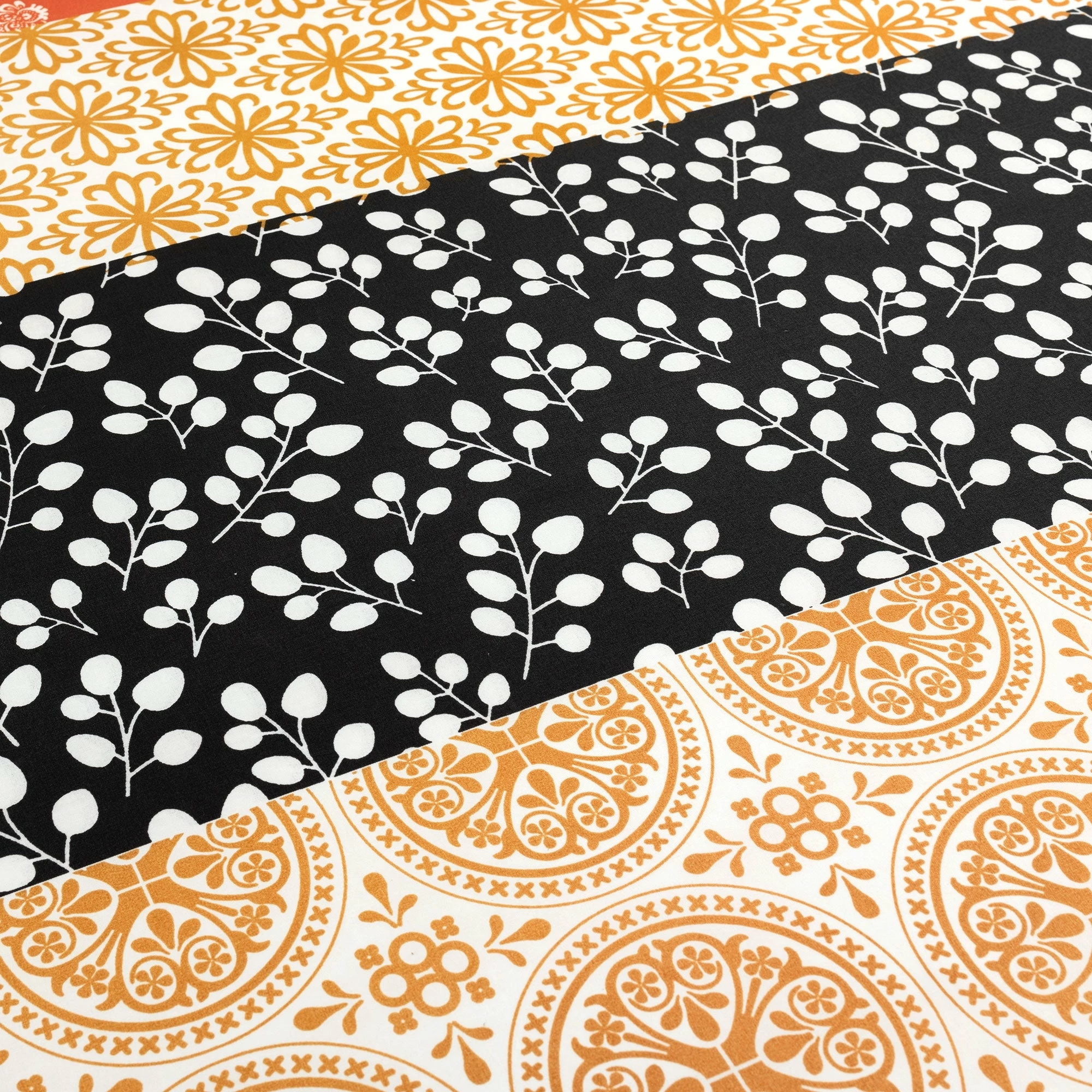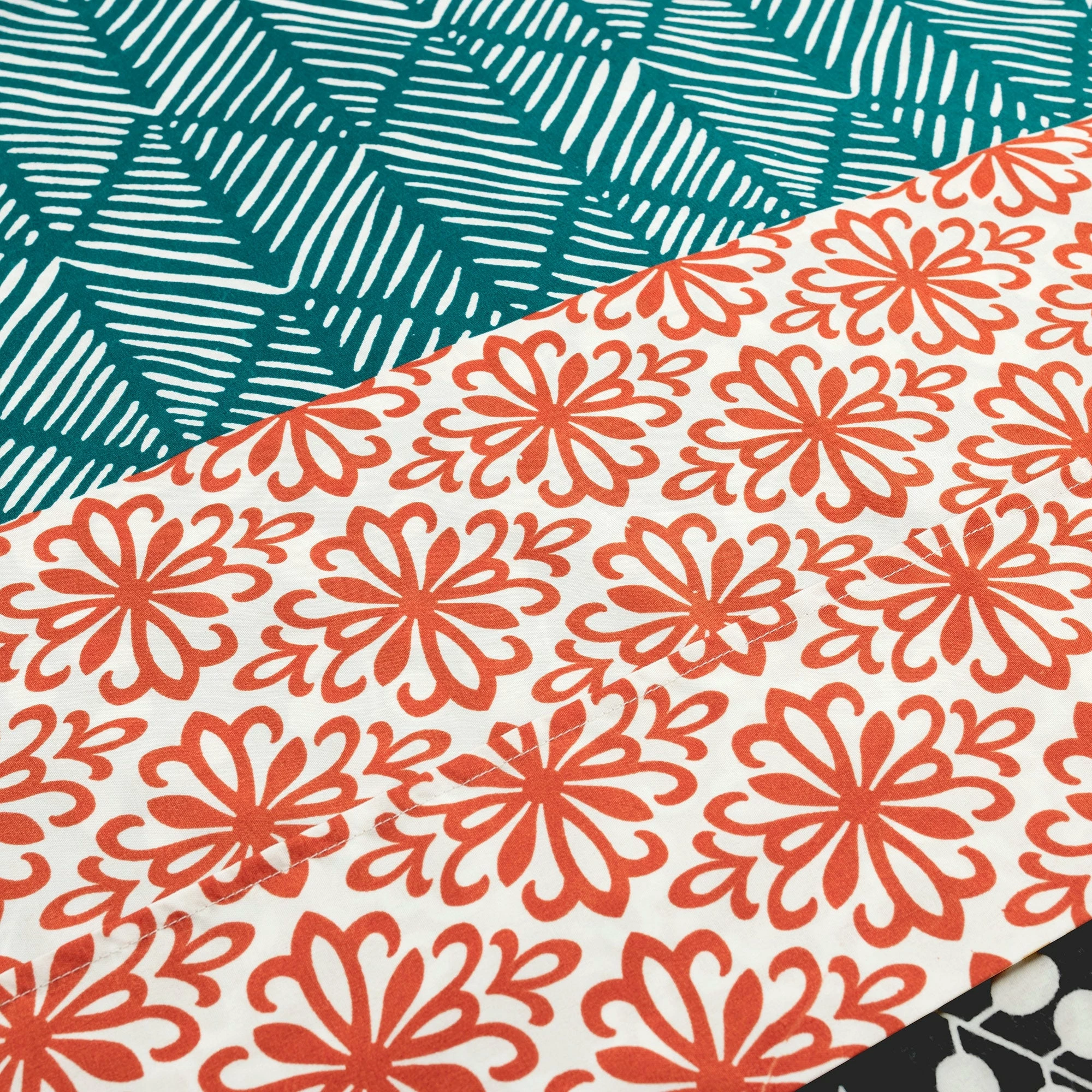 Decorate your bohemian bedroom by starting with the basics – the sheets. This complete sheet set is embellished with swirls of botanical patterns and geometric shapes in an exciting color palette. Each piece of this set is made with naturally hypoallergenic fabric that is so soft to the touch. These sheets are durable and will last many nights. Comfort is key with bed sheets, and this material is very breathable and is sure to keep you cool all year long. The free-spirited pattern pairs perfectly with its coordinating bedding set or can be styled independently. This set includes 1 flat sheet, 1 fitted sheet, 2 matching pillowcases and 2 solid pillowcases. The fitted sheet has a 9 inch drop. For your convenience this sheet set has easy care instructions. Please refer to the care label for best results.