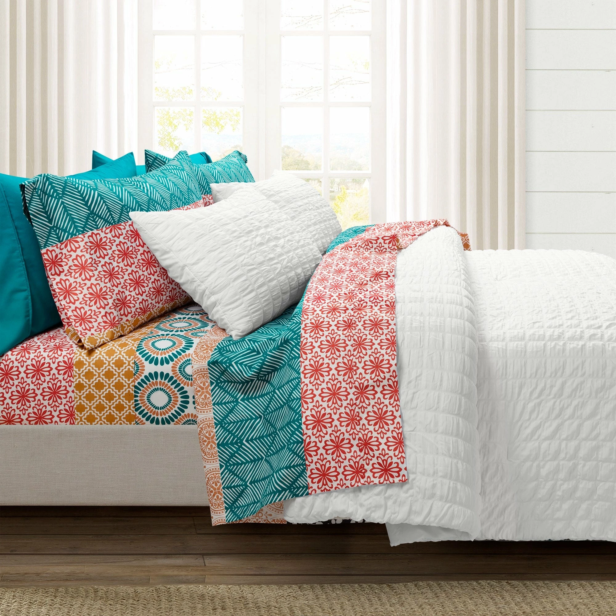 Sleep peacefully on this boho sheet set. Designed to keep you cool and comfortable all year long, these sheets are soft yet built to last for many restful nights. Coordinate with matching bedding set or style independently. Includes 4 Pillowcases.