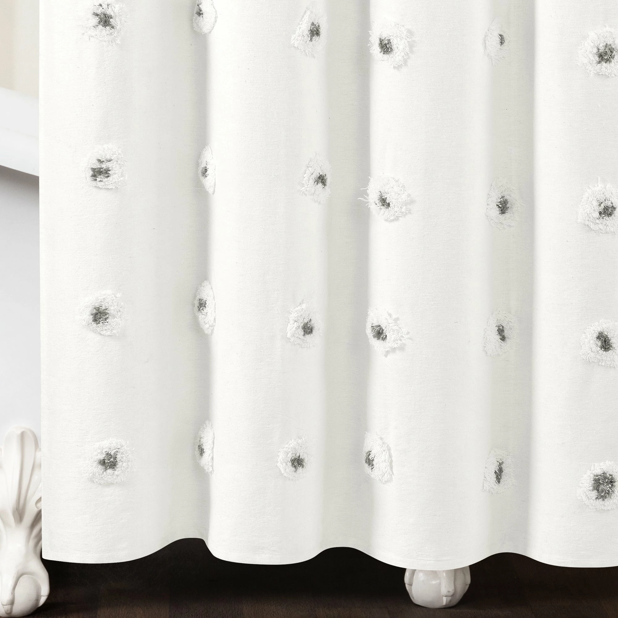 Who doesn’t love a boho vibe? With its textured woven look and stylish two-toned tufts, this shower curtain is sure to add some character to your bathroom design. Made of recycled cotton, it’s environmentally friendly and perfect for any boho-lover. It’s lightweight construction won’t pull on your shower curtain rod and the yarn dyed design will resist fading. Each side of this shower curtain measures 72 inches and should fit most bathtubs. 12 button holes line the top for easy hanging with any rings or hooks (not included). Please refer to label for full care instructions.