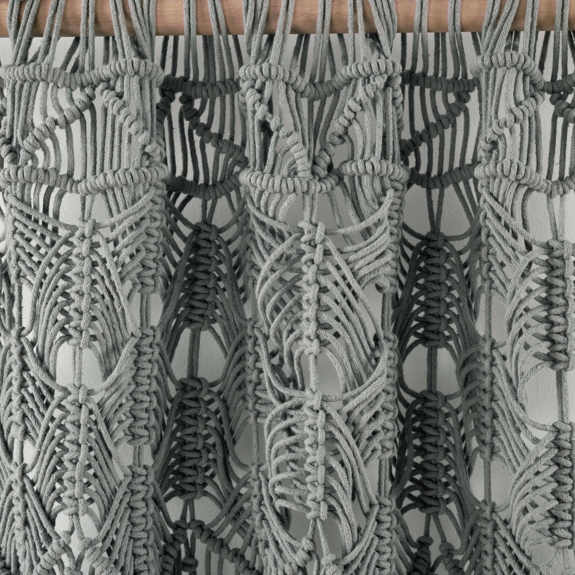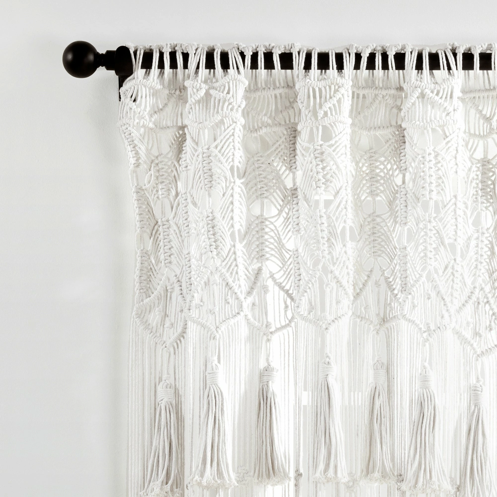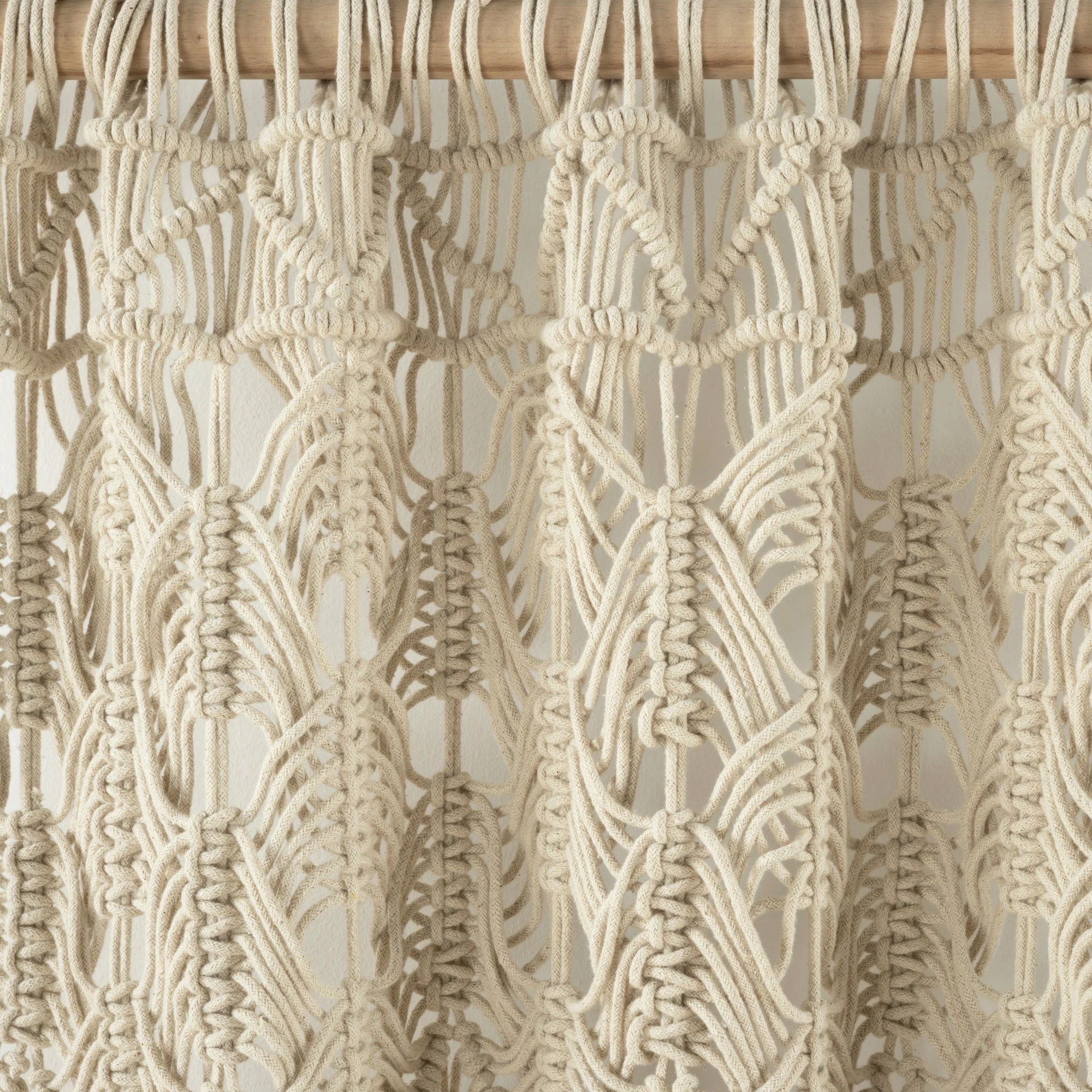 Macrame decor brings a relaxing vibe into your home. Each hand woven knot is incorporated into the overall original design. Seven tassels hang across the panel, each flowing seven inches down. This Bohemian accessory is extremely versatile. Hang this panel in your window for a light filtering curtain, or embrace its artsy side and use this piece as trendy wall art. The intricate detailing also makes for beautiful wedding or photo backdrop, or even a room divider. Hang your panel simply by sliding a curtain rod through the rod pocket and hang wherever desired. This panel has a 40 inch width and is sold as a single piece. Please refer to label for full care instructions.