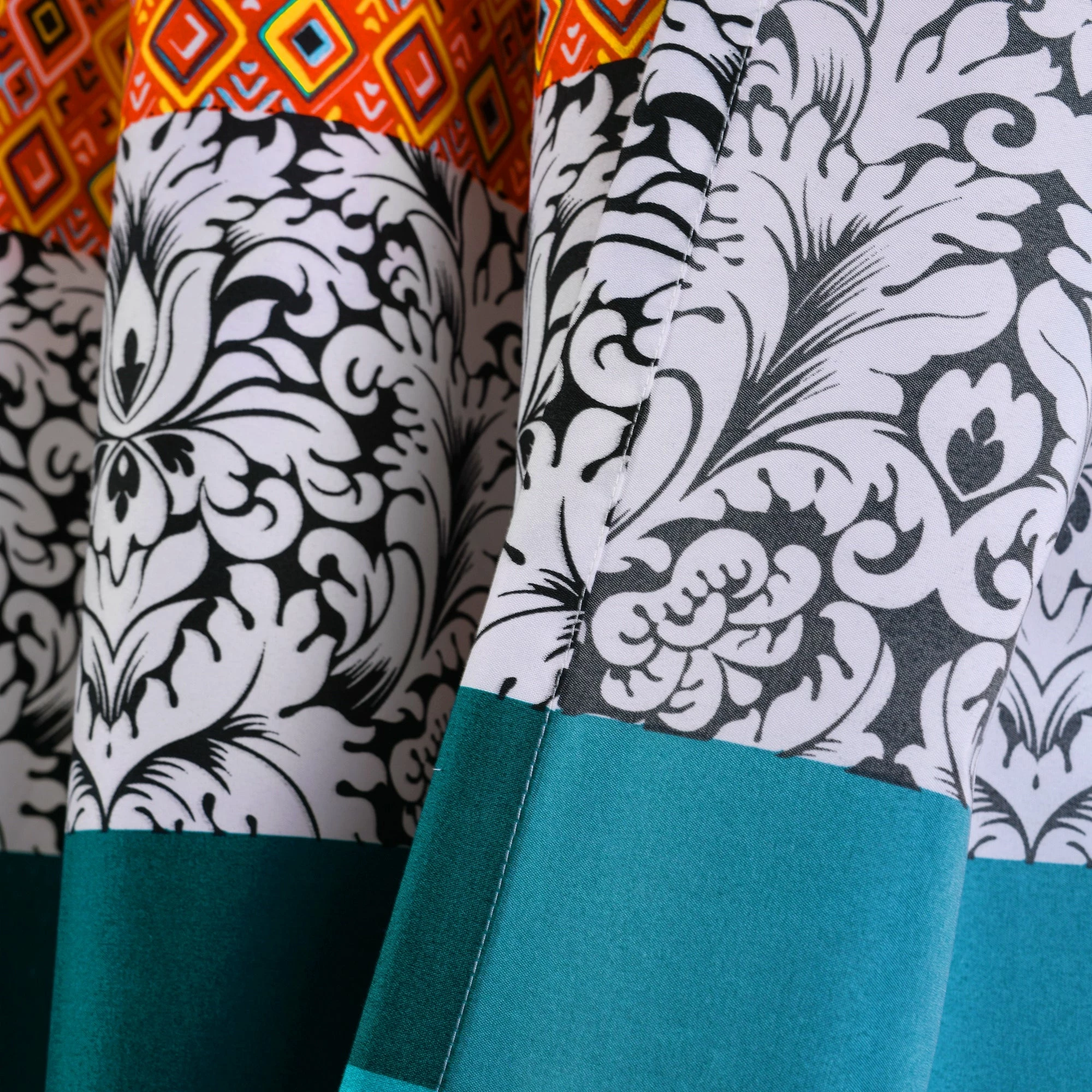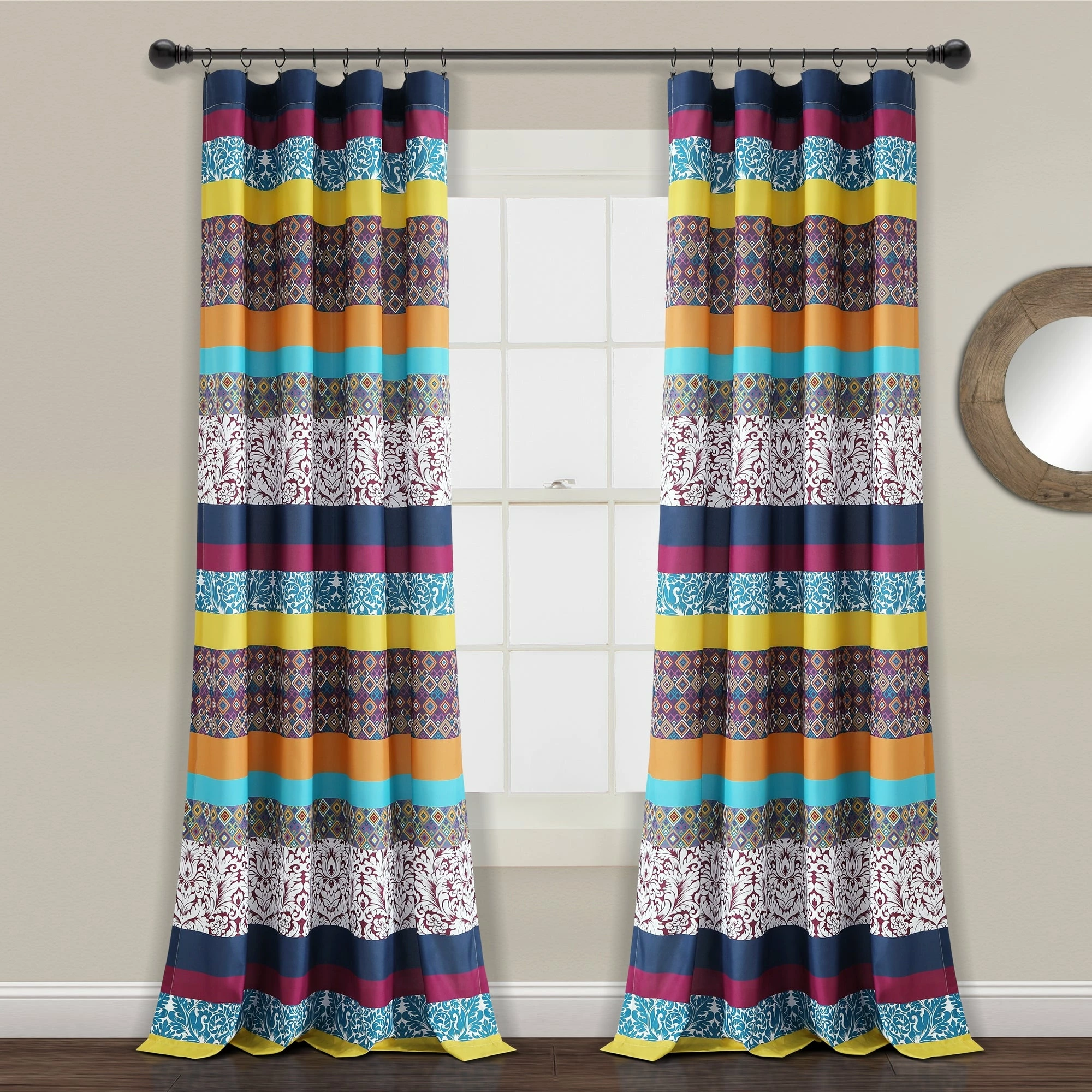 Free spirited, untamed, rustic and yet chic, this window curtain set is a perfect piece of modern time creativity. Each stripe features a new color story and a different pattern from floral to geometric. The stylish boho look will brighten any space.