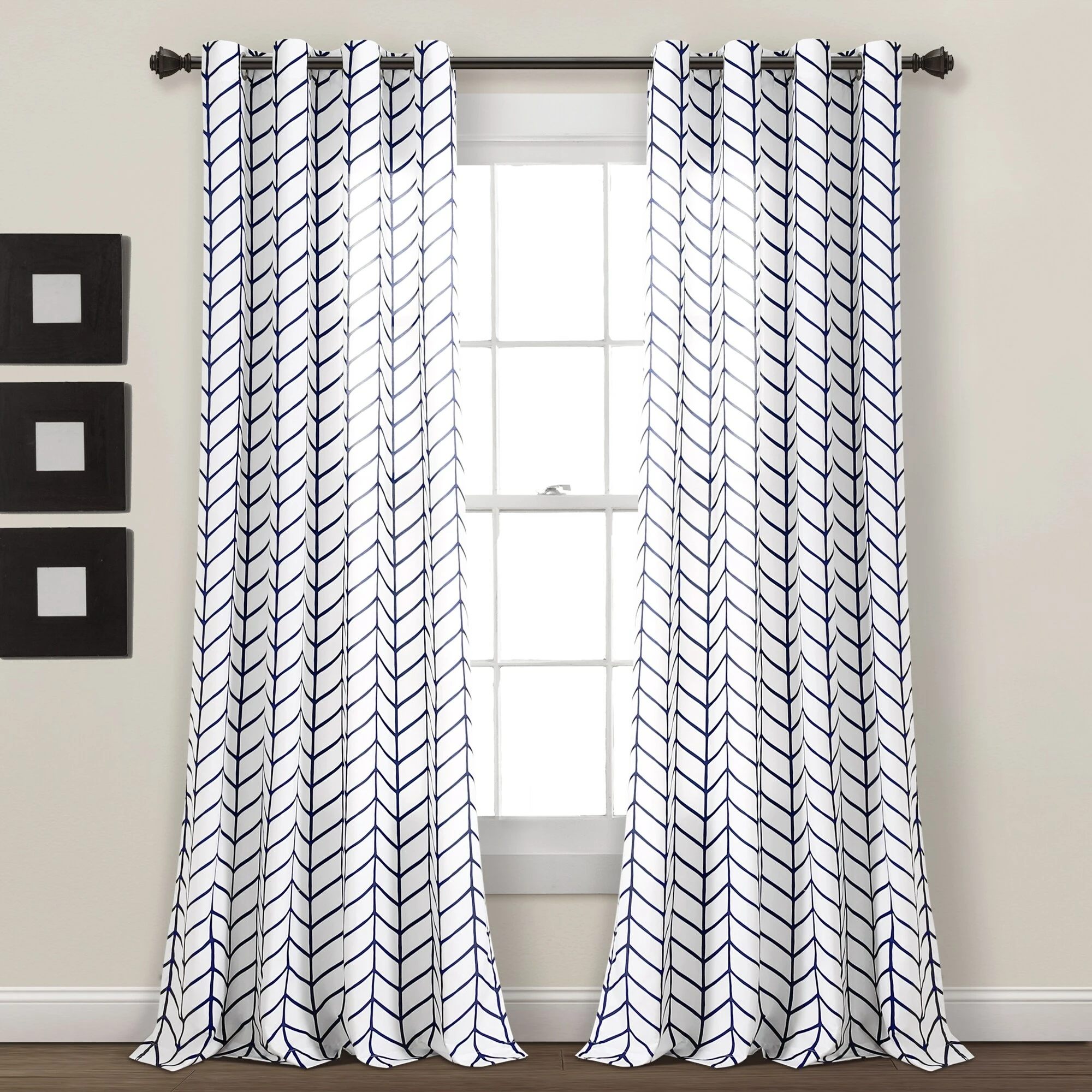 This artistically designed curtain panel set is the perfect addition to your modern styled home. The chevron pattern leads your eyes from top to bottom of each printed window panel for an eye-catching effect. Each panel measures 52 inches across and hangs 84 inches down and they are sold by the pair. Assembly is simple, just slide a curtain rod through the metal grommets found at the top of the panel. Please refer to label for full care instructions.