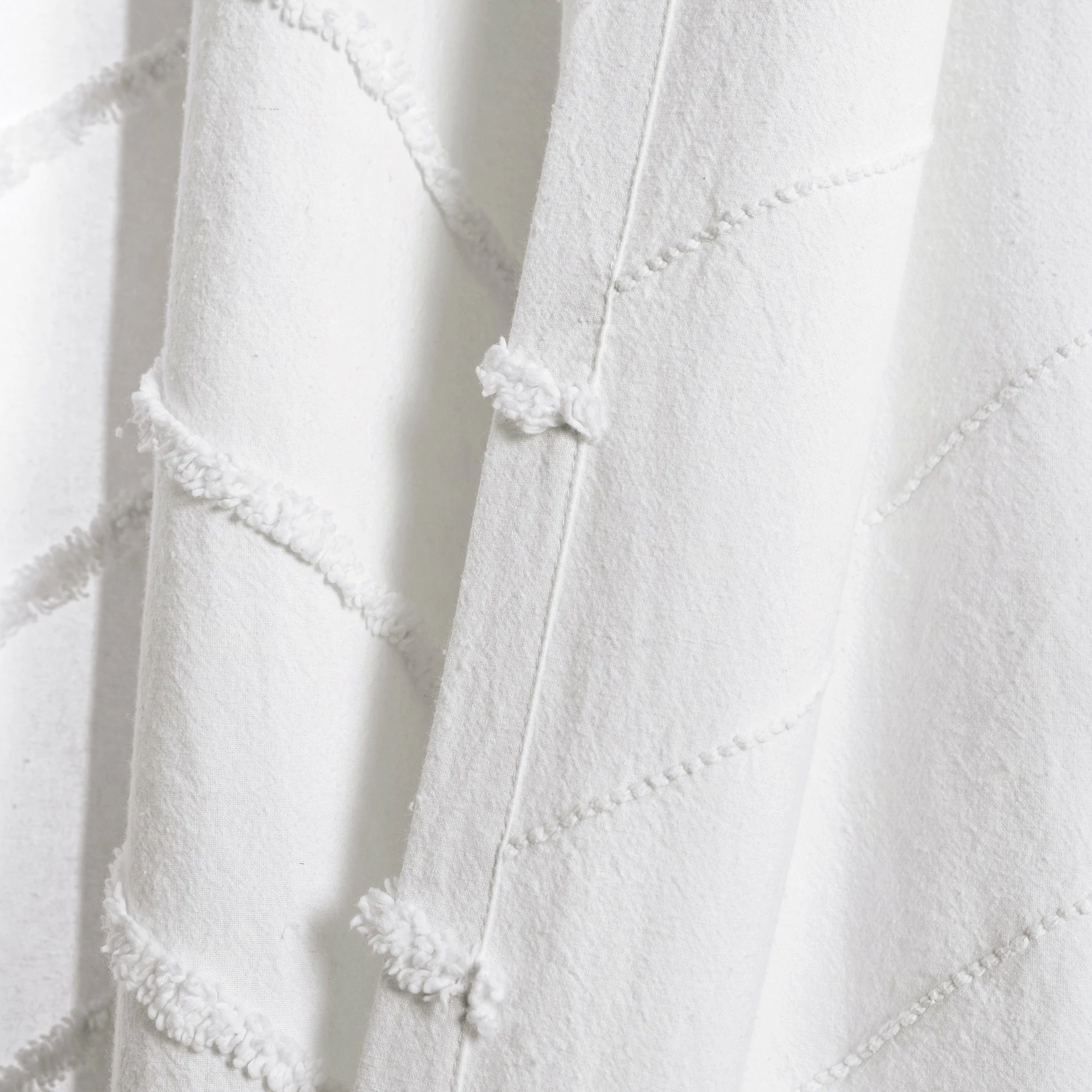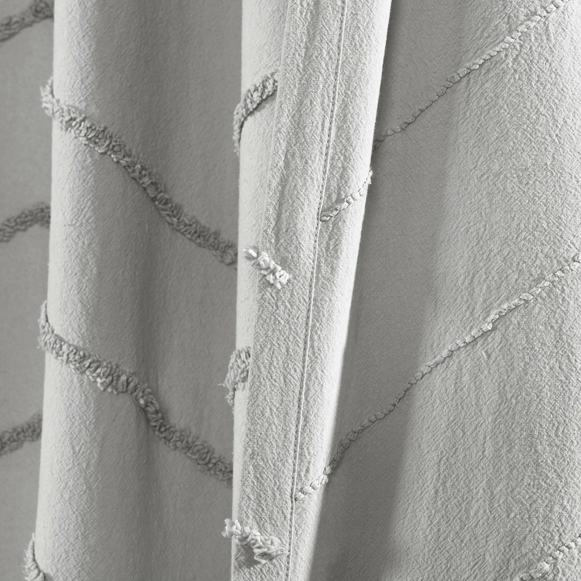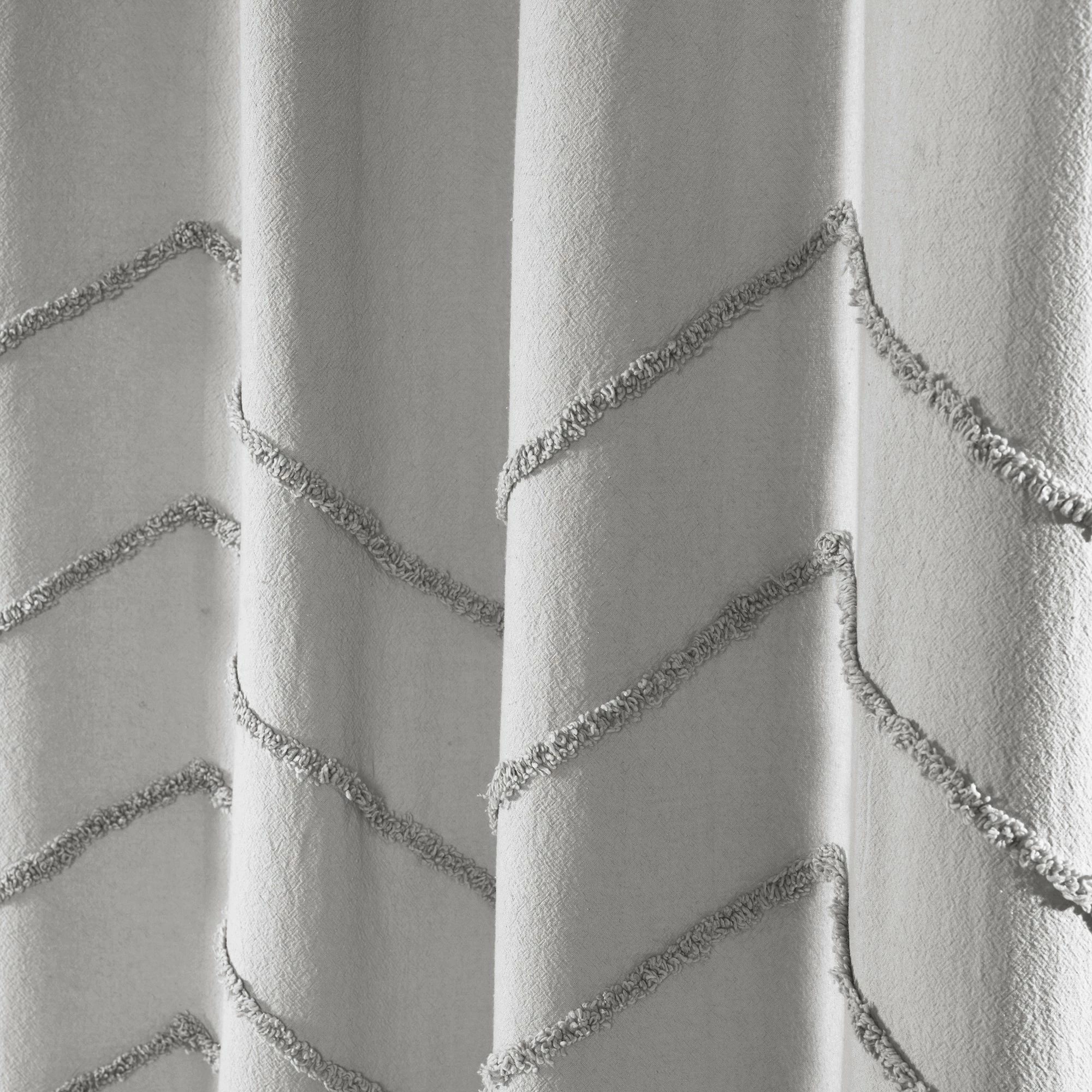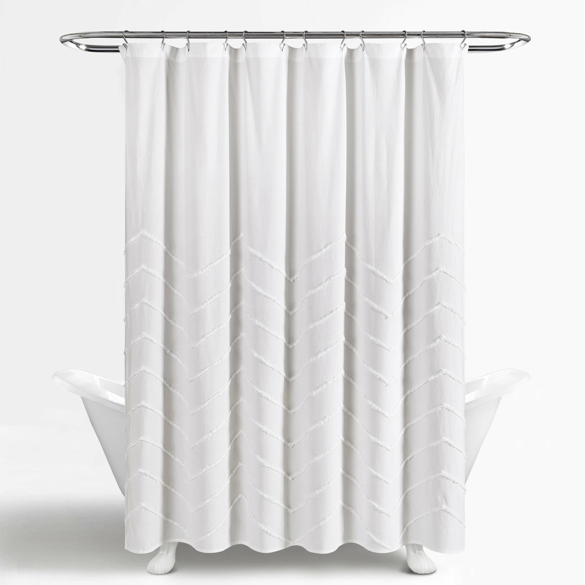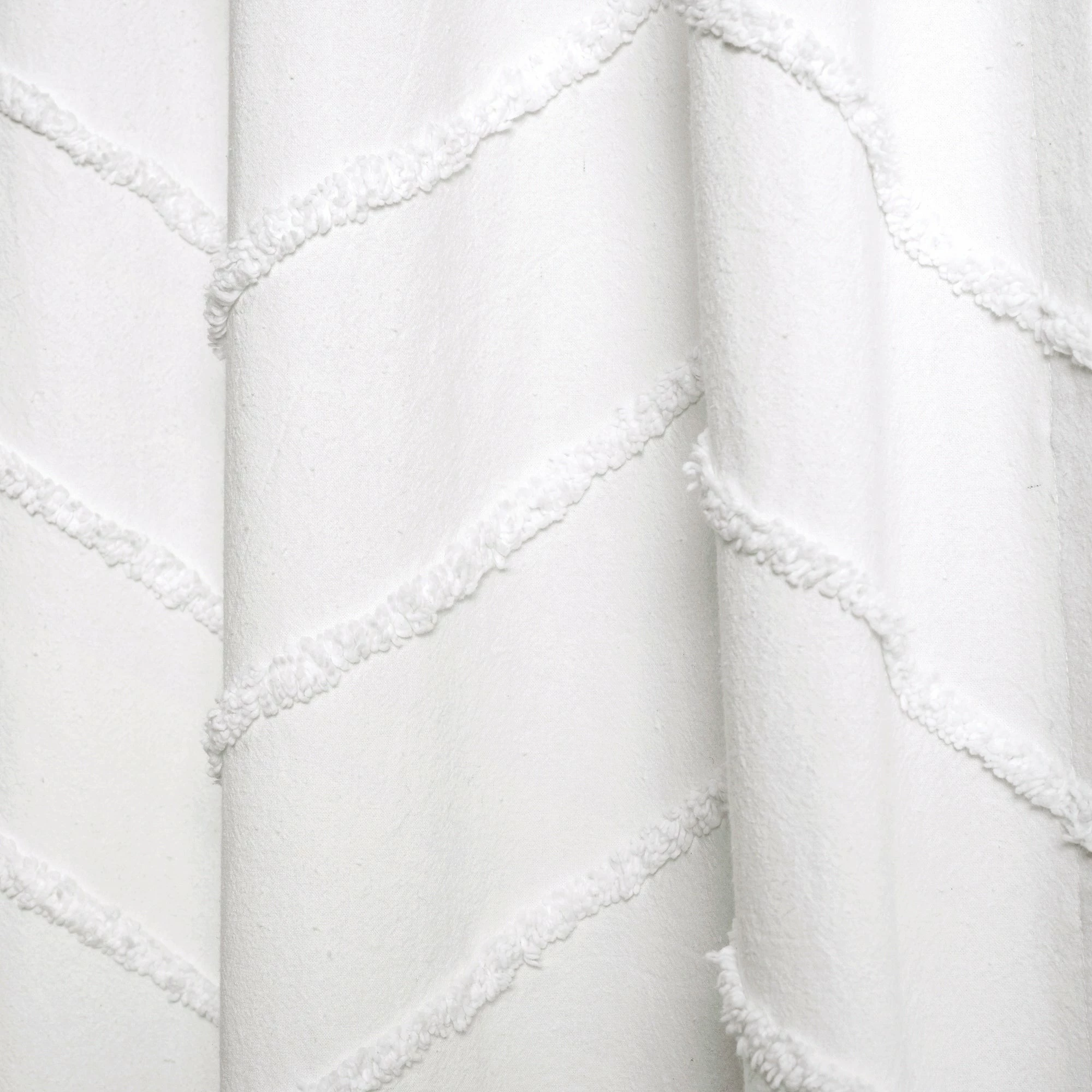 These delightful new shower curtains add lovely texture to your master bathroom or guest bathroom with chenille woven embellishments against cotton fabric. The contemporary chevron pattern will turn heads but will not take over the look of the bathroom.