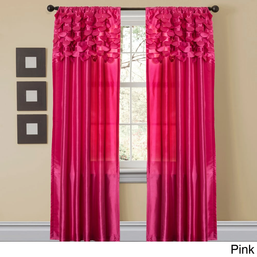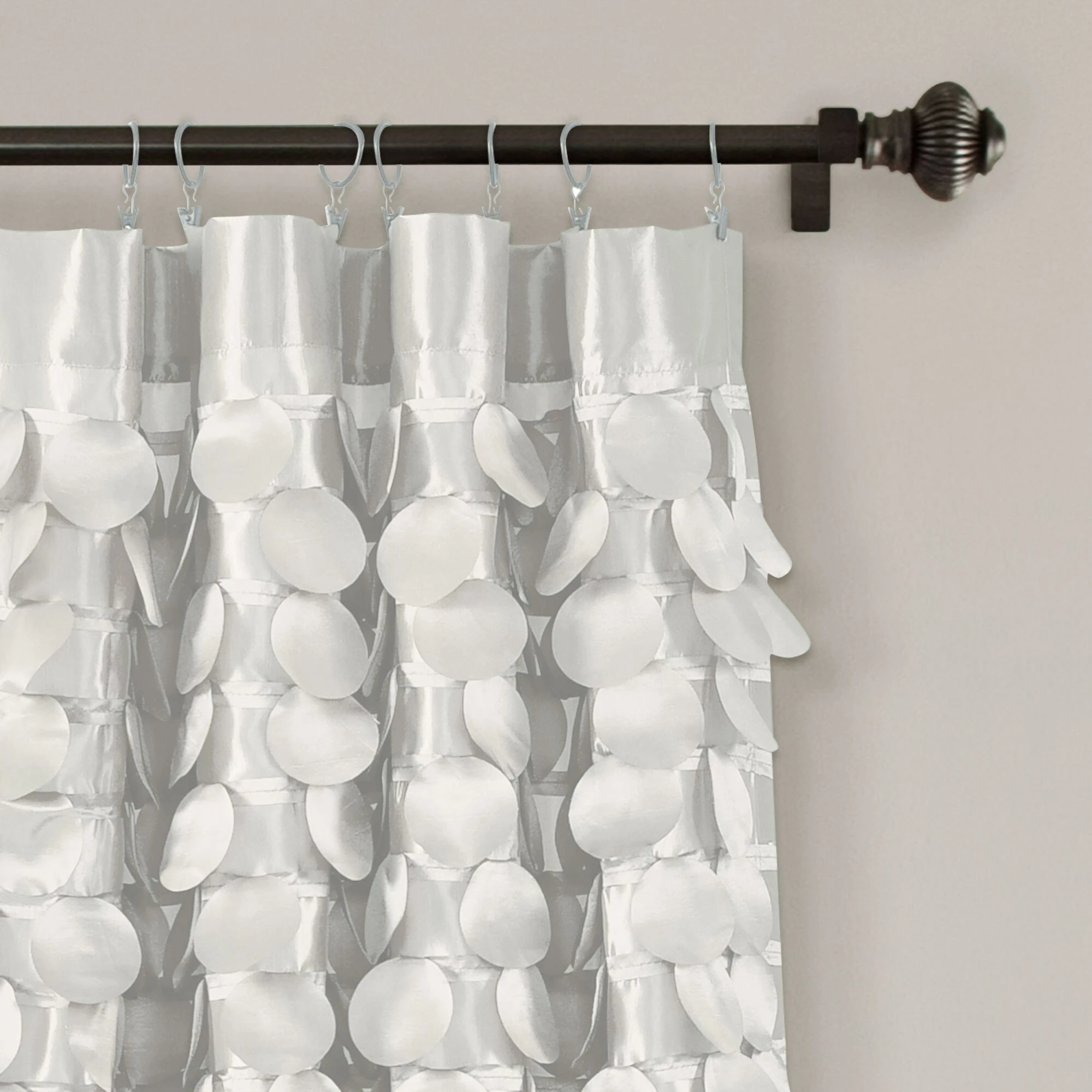 Lend lush style and luxury to your space with this set of two curtain panels. Crafted from 100-percent polyester, these curtain panels feature a luxe design with a rod pocket header for easy hanging. The fluttering circle pattern at the top adds extra texture and flair to these attractive curtains.