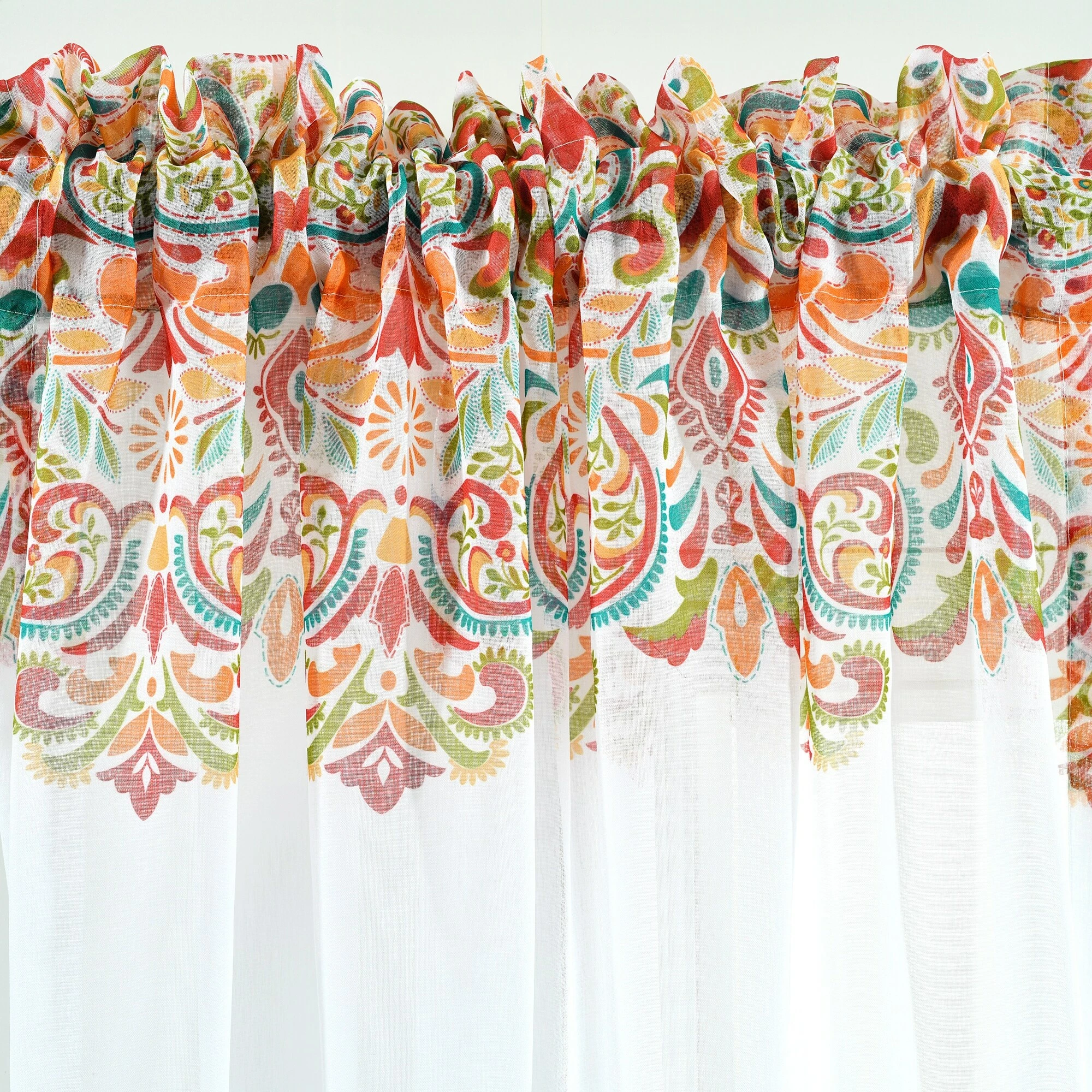 The bold design of these window curtain panels are very appealing and perfectly fit into a bohemian style home. The classic damask pattern is combined with bright colors giving this a unique look. The panels are sheer and will let plenty of light in.