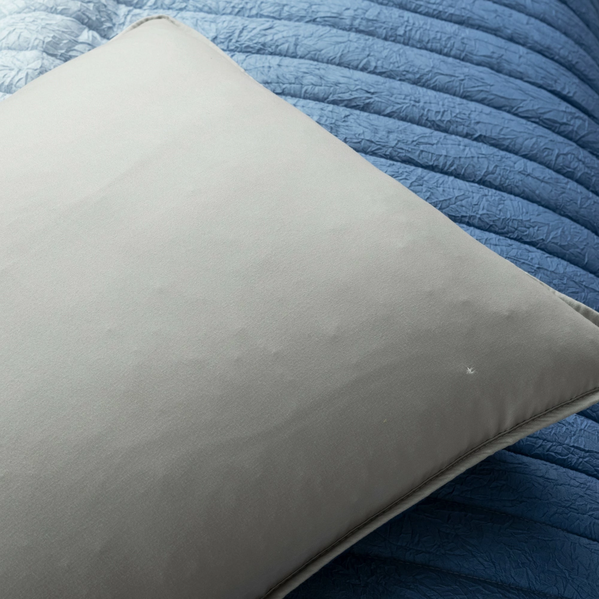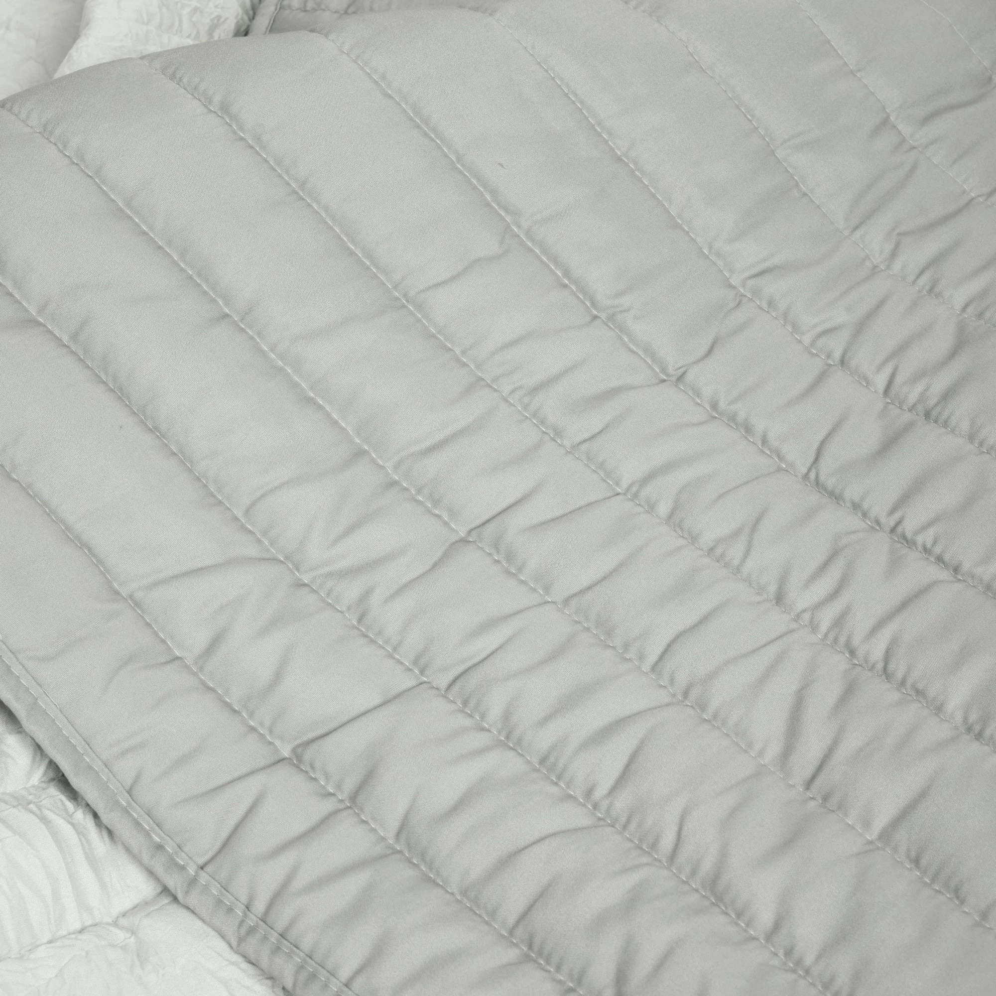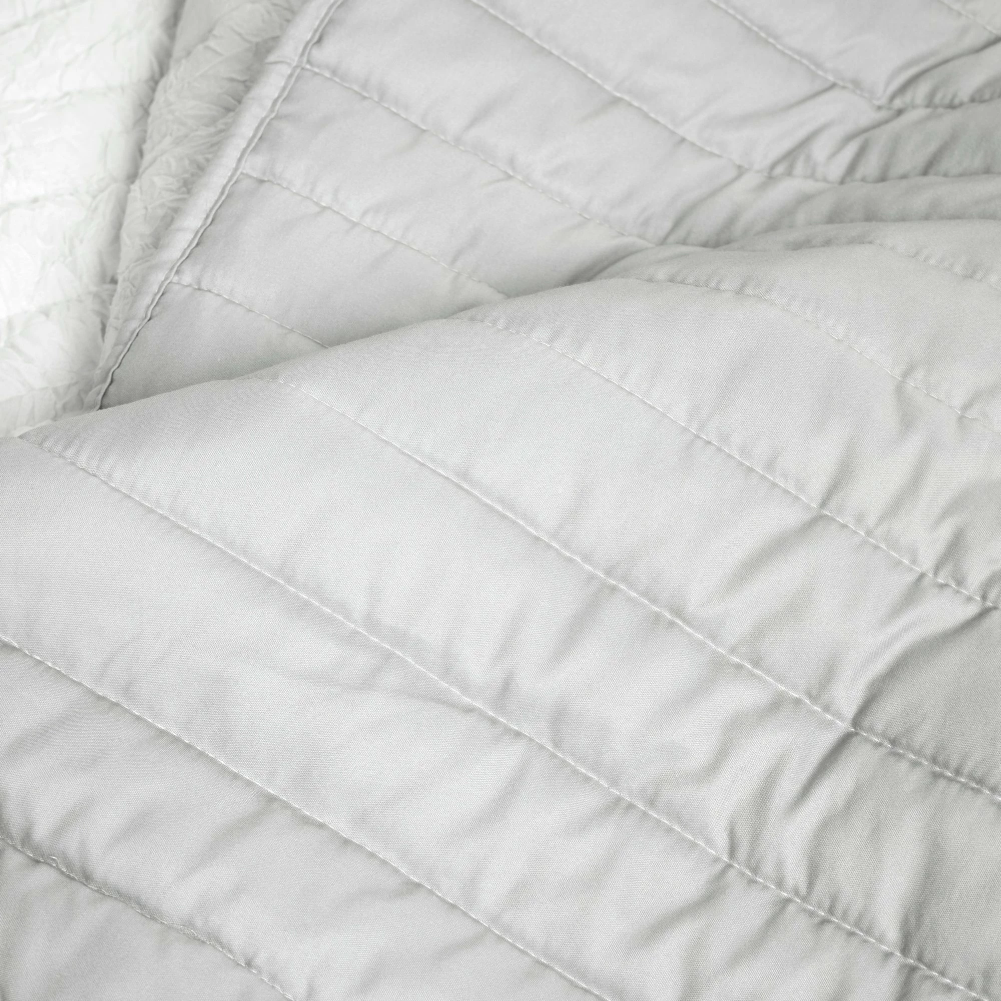 Bring fun and comfort to your bedroom with this three piece quilt set. The soft crinkles in the fabric along with the quilted detailing provide maximum comfort and a unique look. The trendy ombre pattern perfectly blends these complementary colors together making it easy to add your own home accessories to complete the look. This set includes one quilt and two shams. This quilt set is STANDARD 100 by OEKO-TEX® certified, which means the fabric, dyes and all components have been tested in an independent laboratory and certified against a list of more than 350 harmful substances. Please refer to label for full care instruction.