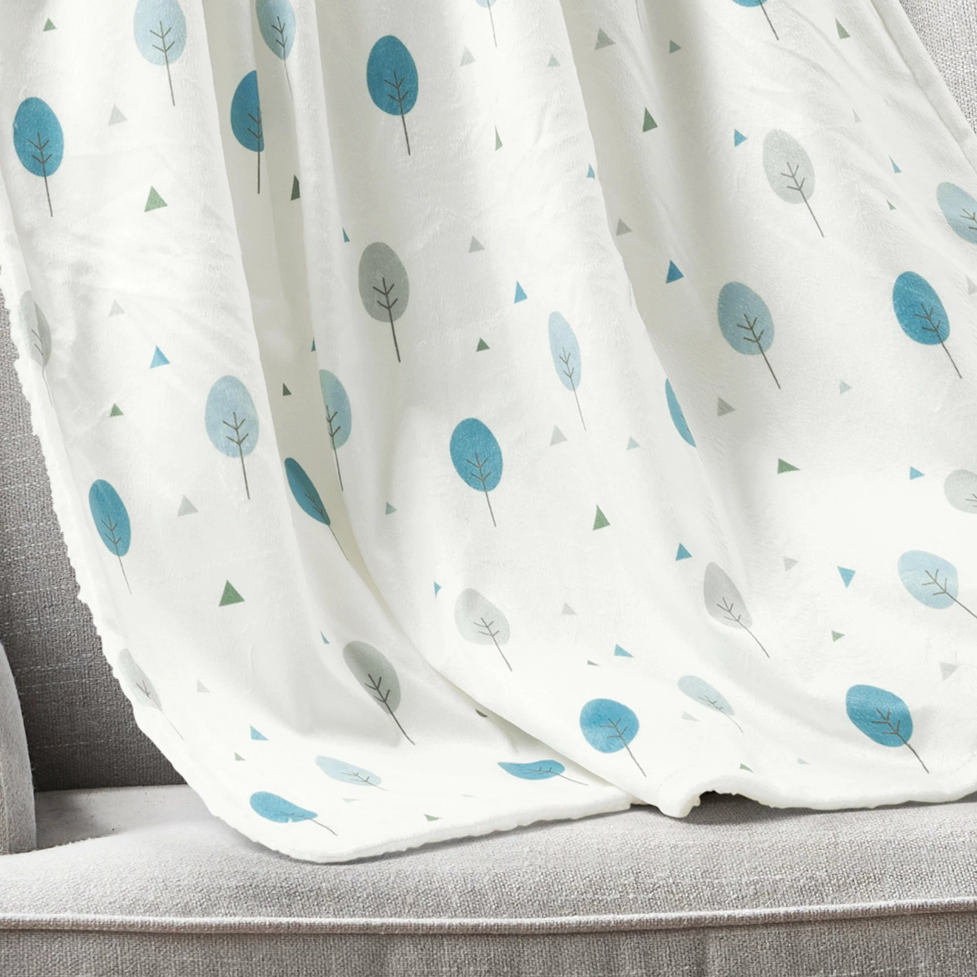 Cozy up your little one to the outdoors when you cuddle them in this soft sherpa blanket. Decorated with an adorable tree print, this blanket will be yours and your little adventurer’s favorite accessory. Style this blanket in a dinosaur, jungle or even woodland themed nursery. Complete a dinosaur theme with the coordinating pieces in the collection. This blanket measures 30 inches by 40 inches. Please refer to label for full care instructions.