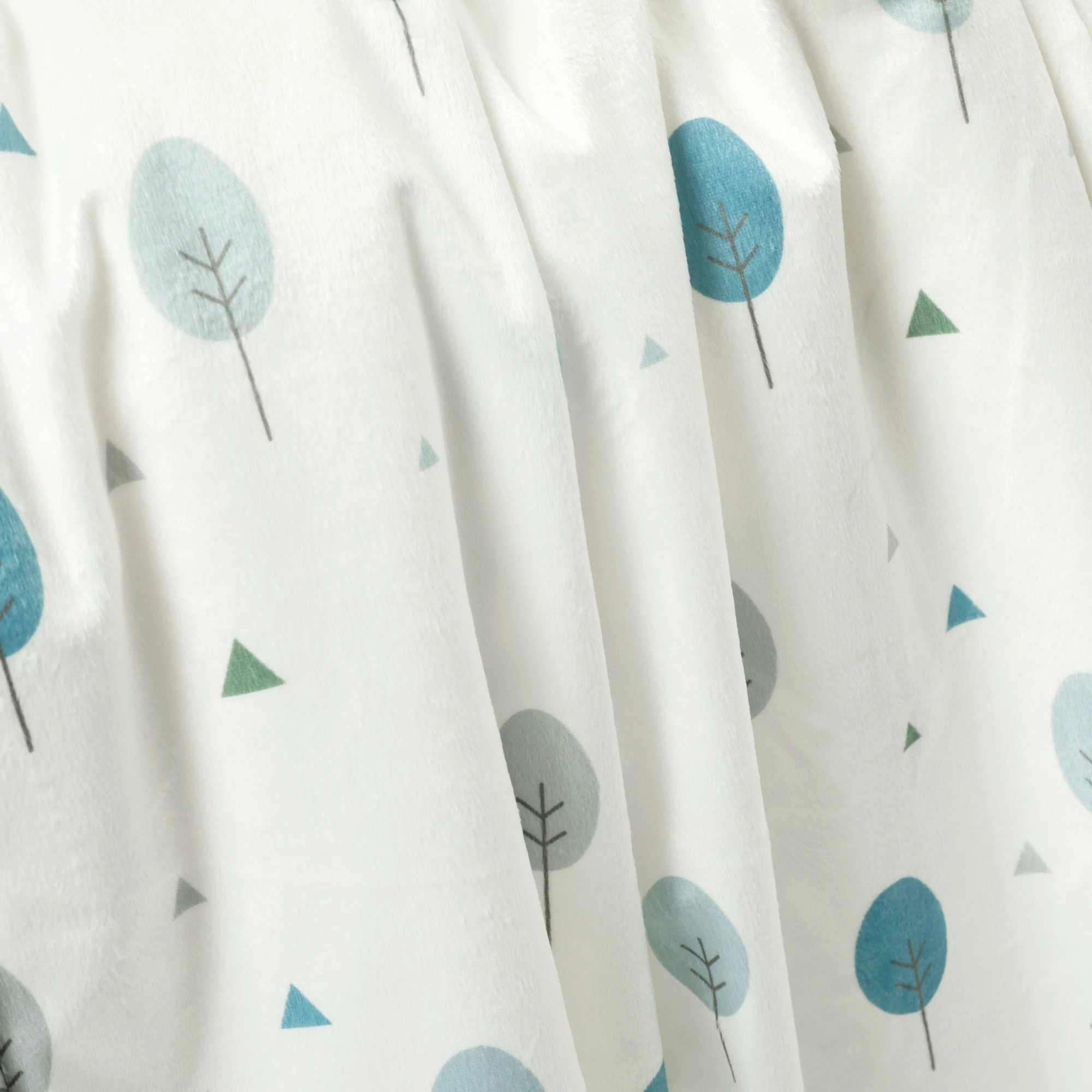 The adorable forest print on this baby blanket is the perfect accessory for your little adventurer. The cozy sherpa fabric has a luxurious feel and earthy colors are easily styled. This tree pattern can fit in with almost any outdoorsy nursery theme.