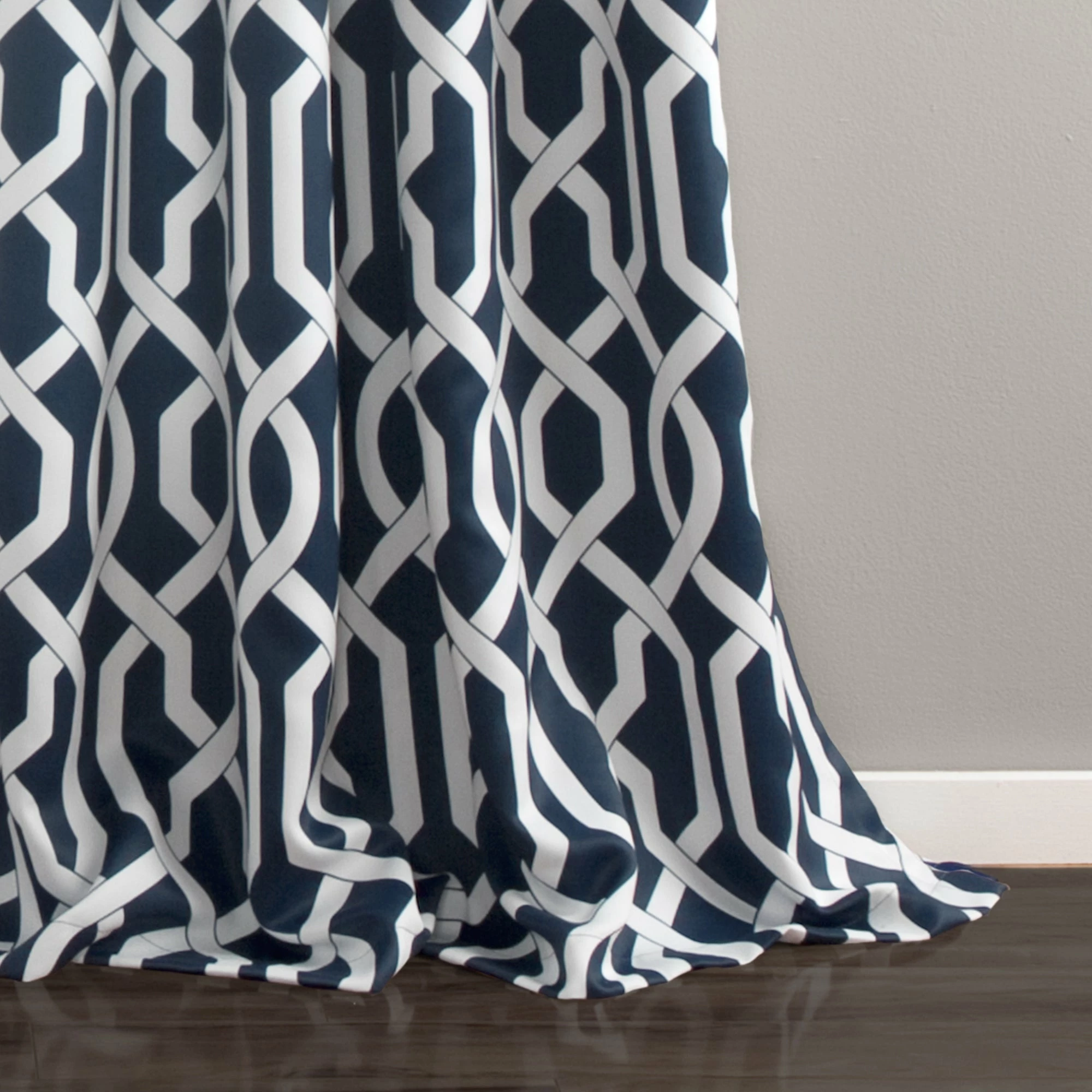 Darken your room and keep it cool at once in grand style, with this pair of energy-efficient curtain panels. Made from machine-washable polyester with hassle-free maintenance, these lined panels boast a Moroccan trellis pattern for a pop of Old World charm, as grommets at the top of each curtain allow for simple installation.