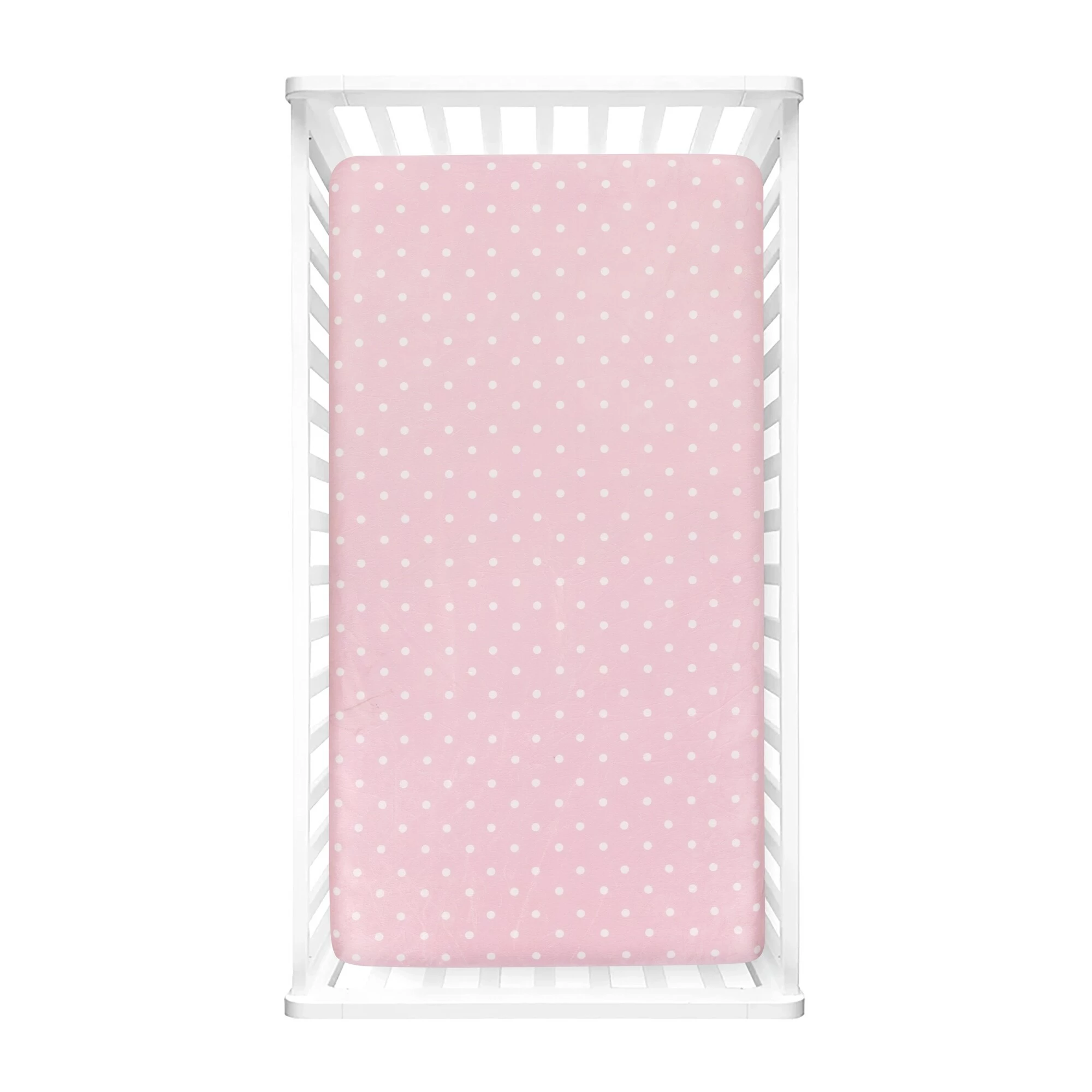 Style your little one’s nursery with this sweet polka dot printed fitted crib sheet. The versatile style of this decorative piece fits into so many nursery themes and is easy to coordinate with similar shades and patterns. A soft touch and relaxing look makes this sheet ideal for your baby’s comfort and your cozy nursery ambience. Decorate the rest of your stylish nursery with the matching decor in this collection. This sheet measures 28 inches by 52 inches with a 9 inch pocket depth. Please refer to label for full care instructions.