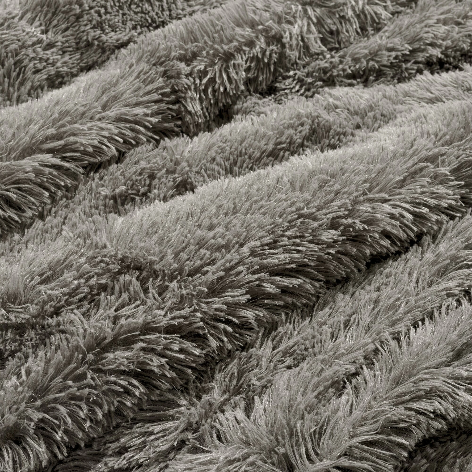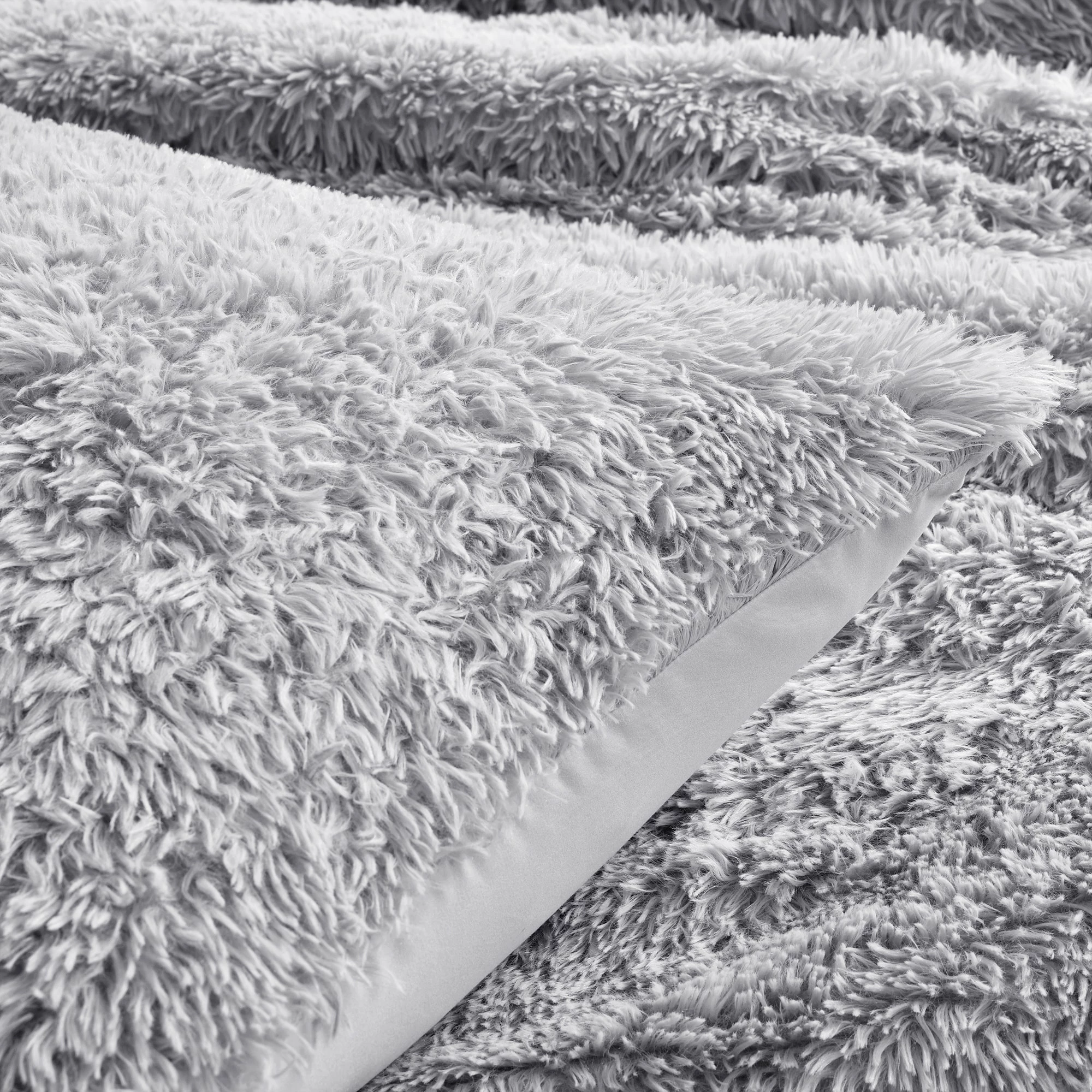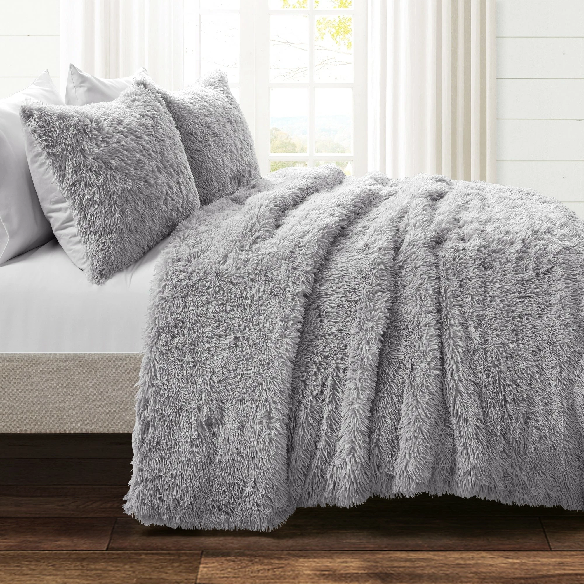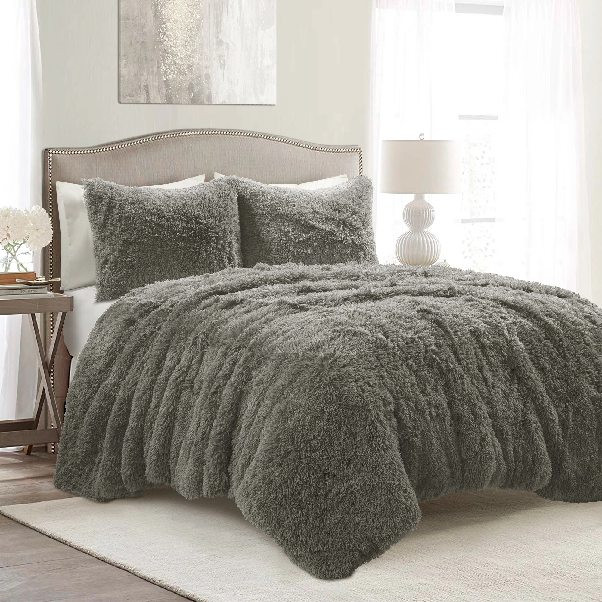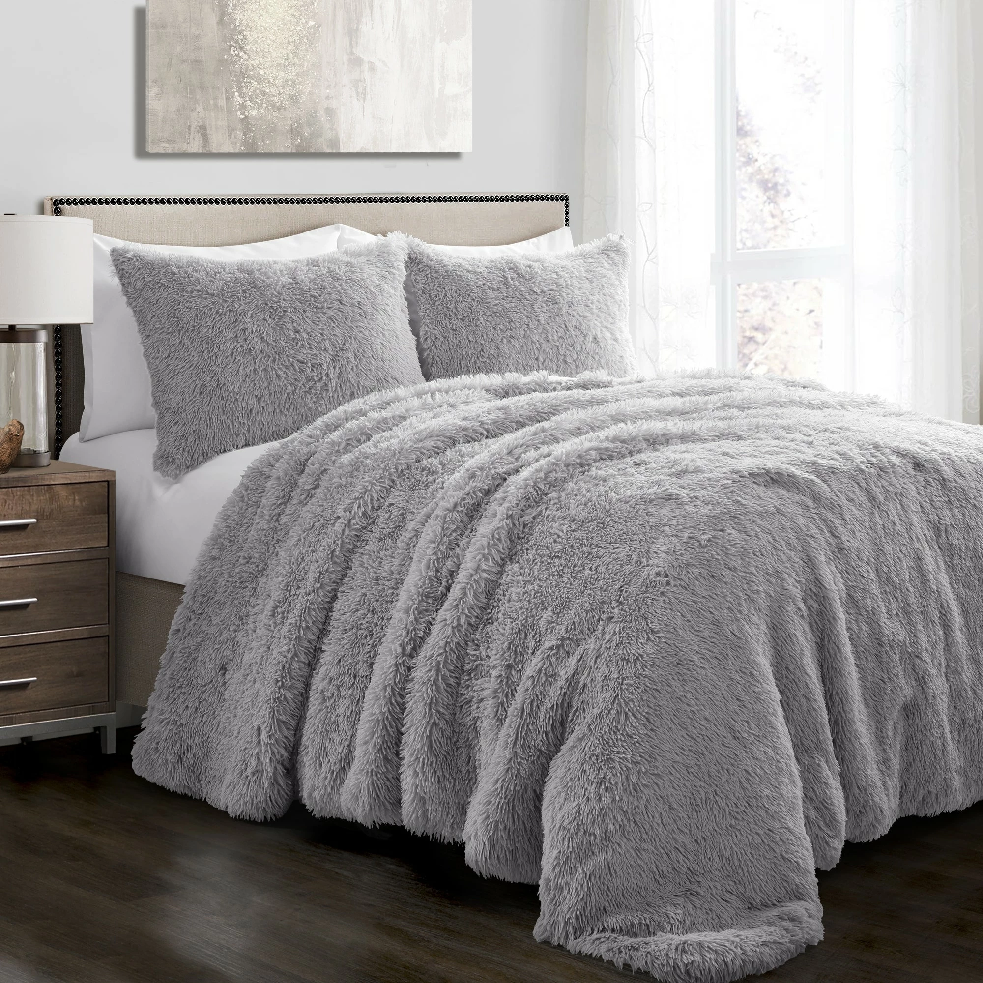 Add modern charm to your bedroom decor with this fluffy and stylish comforter set. The set is crafted from polyester faux fur with a soft fabric back and a polyester fill, and includes one comforter and two shams (only one sham in twin set). The heavyweight, luxurious design will add a bright, cozy feel to your room.