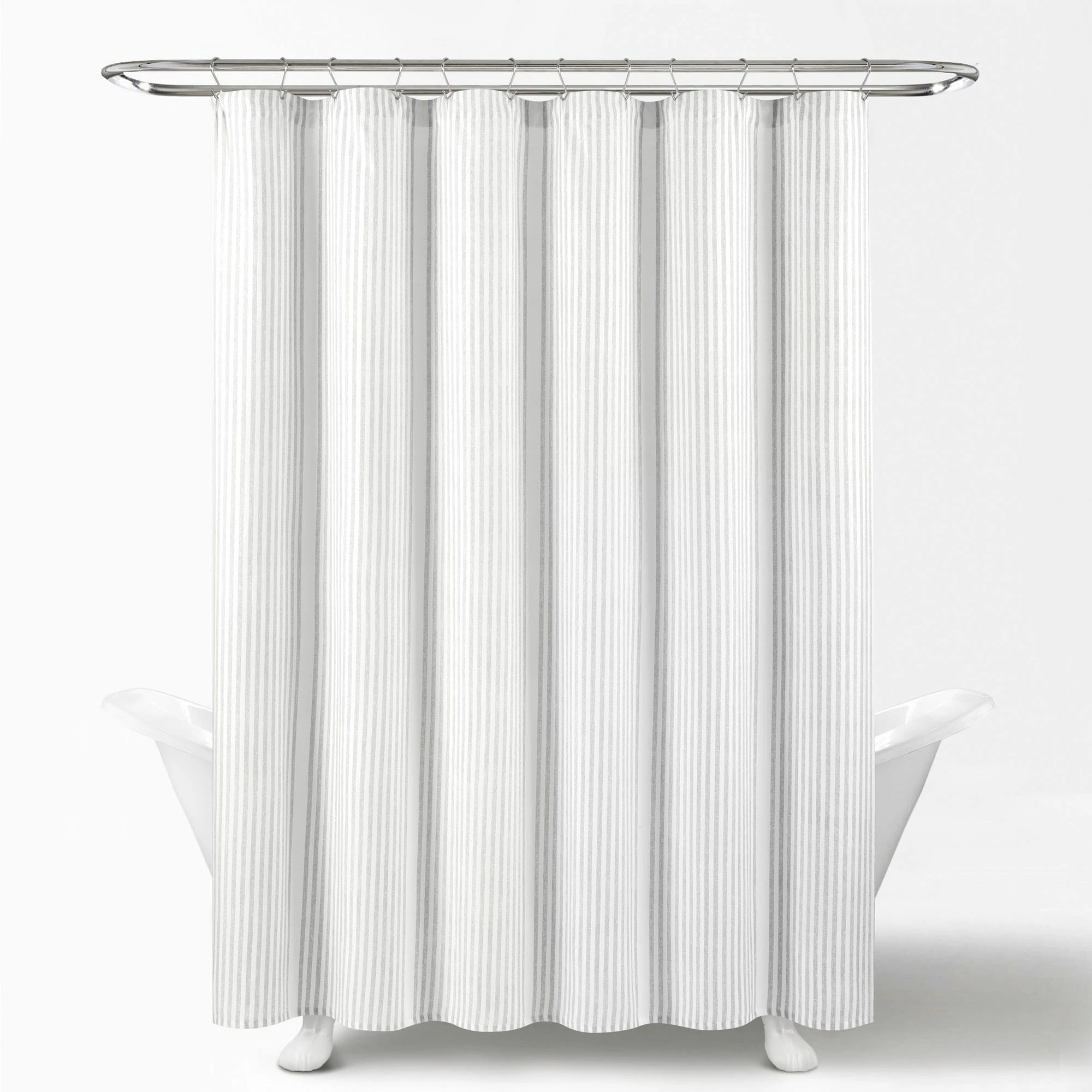 This silver-infused shower curtain fits perfectly into your fresh farmhouse styled bathroom. Silver is known for its natural anti-microbial properties. It’s also naturally fresh, naturally anti-odor and prevents 99% of bacterial growth. The neutral color palette makes this curtain the perfect addition to rustic or modern farmhouse decor. The simple stripe pattern adds a very traditional look without being distracting. This curtain measures 72 inches on each side so it will fit most standard bathtubs. Please follow care instructions found on label before washing.