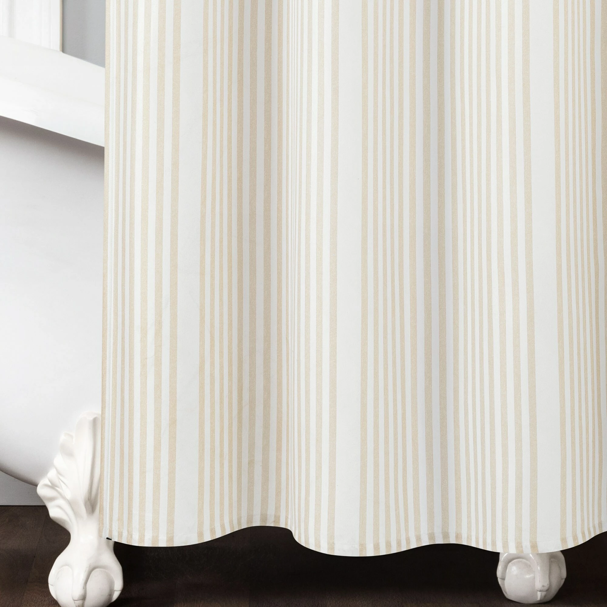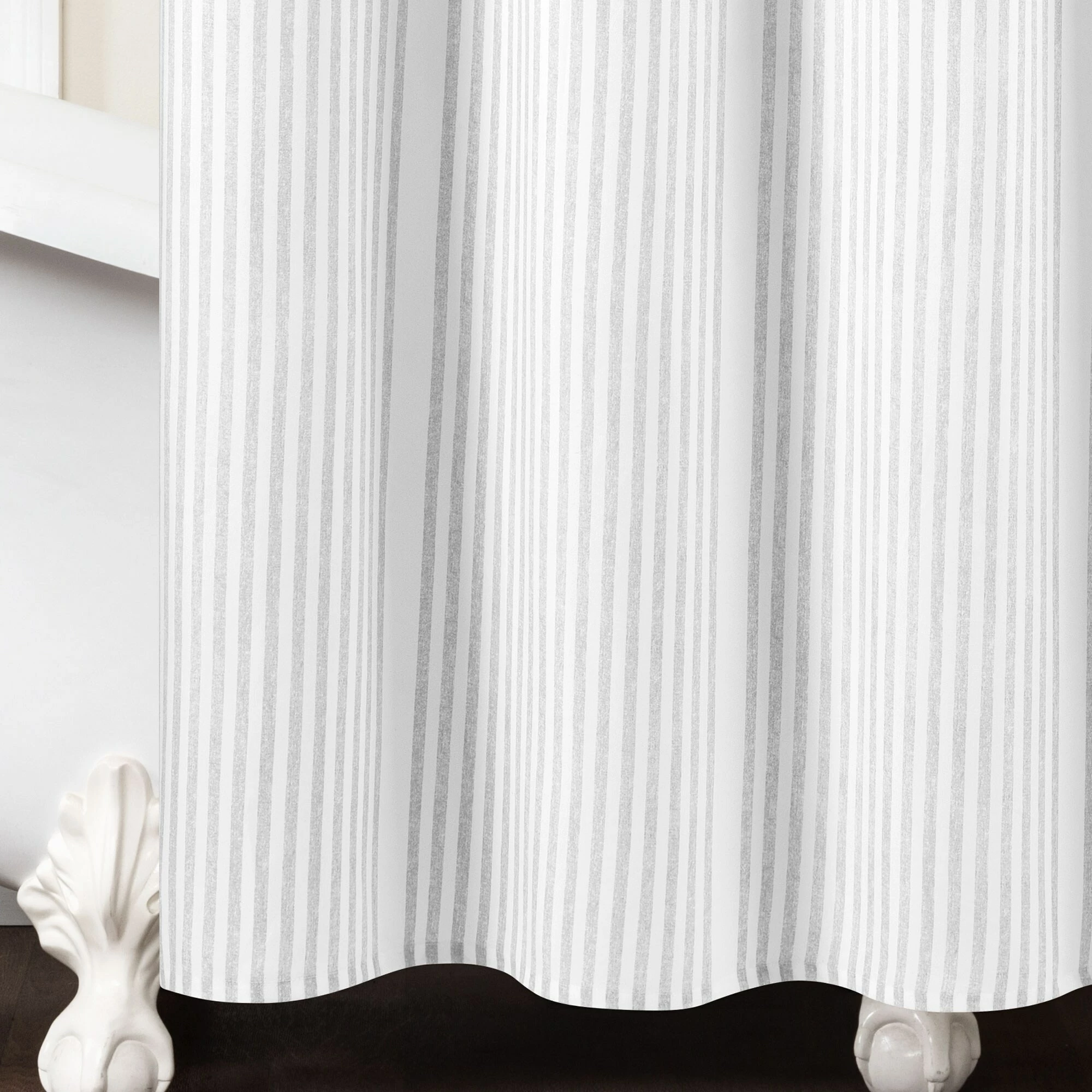 Add this striped shower curtain to complete the farmhouse style of your master or guest bathroom. The traditional stripe pattern is both classic and fresh. This shower curtain is made with anti-microbial, silver-infused fabric.