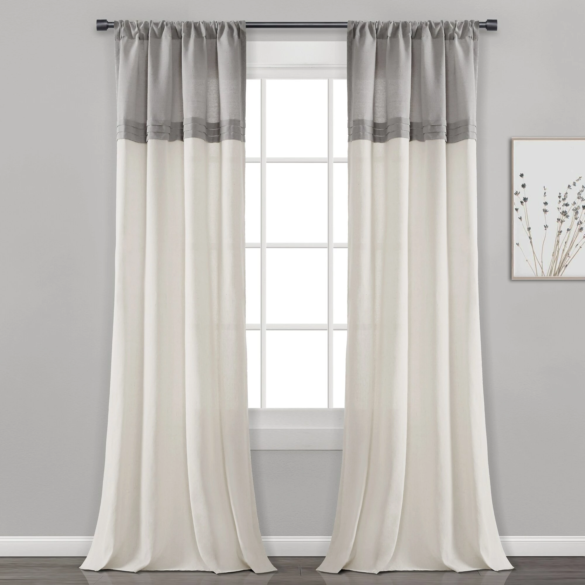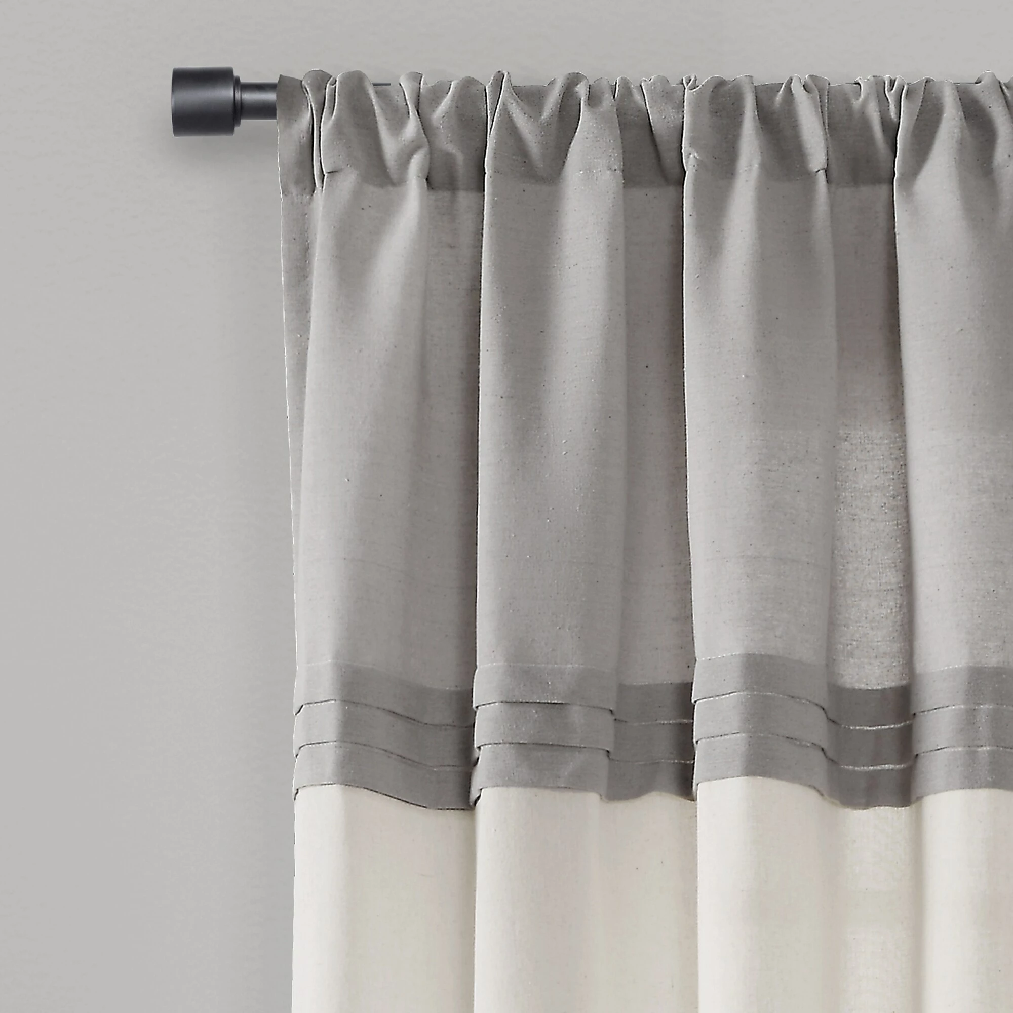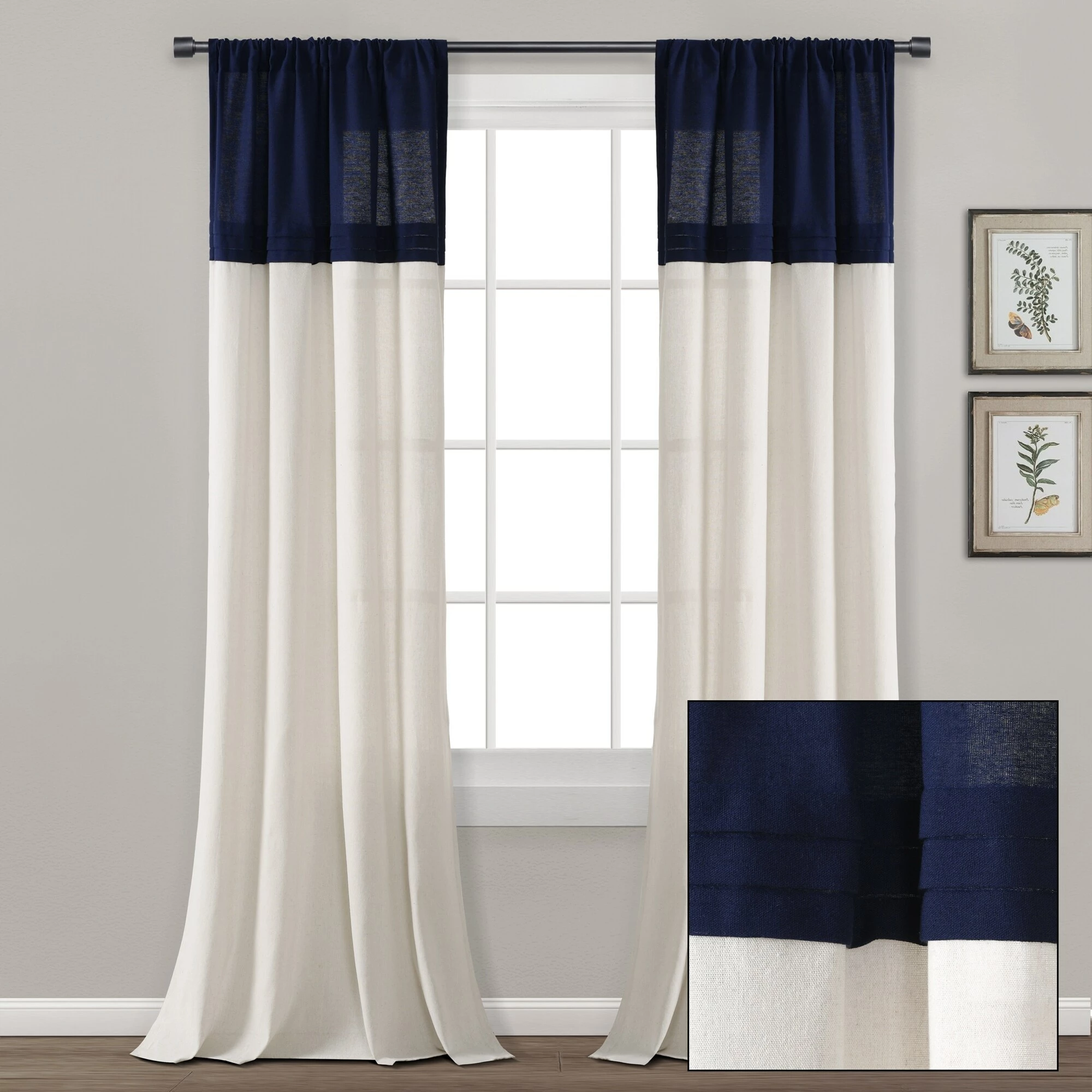 This timeless look coordinates perfectly with a farmhouse style and other modern interiors. Color block patterns offer a distinct design palette that can either coordinate with other style elements in your room or take on a lead role with their fun pop of color. This window curtain set brings some texture in its pleated detailing that also works to separate the two blocks of color. Each panel has a 40 inch width, and this style is sold as a pair. Please refer to label for full care instructions.