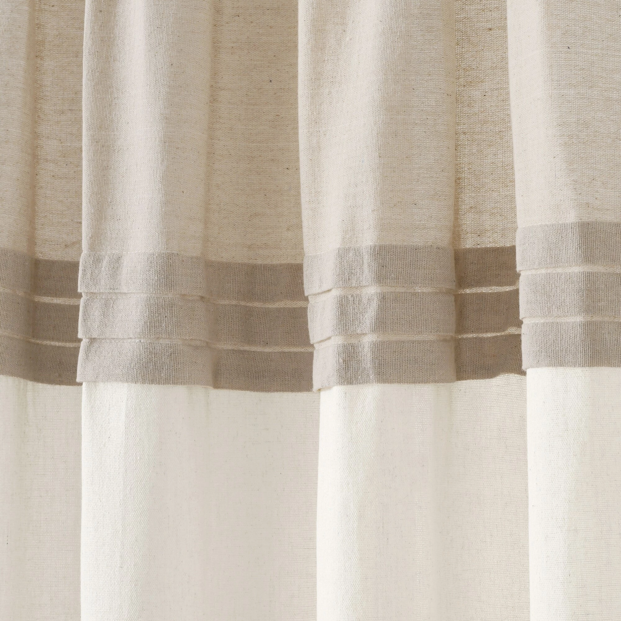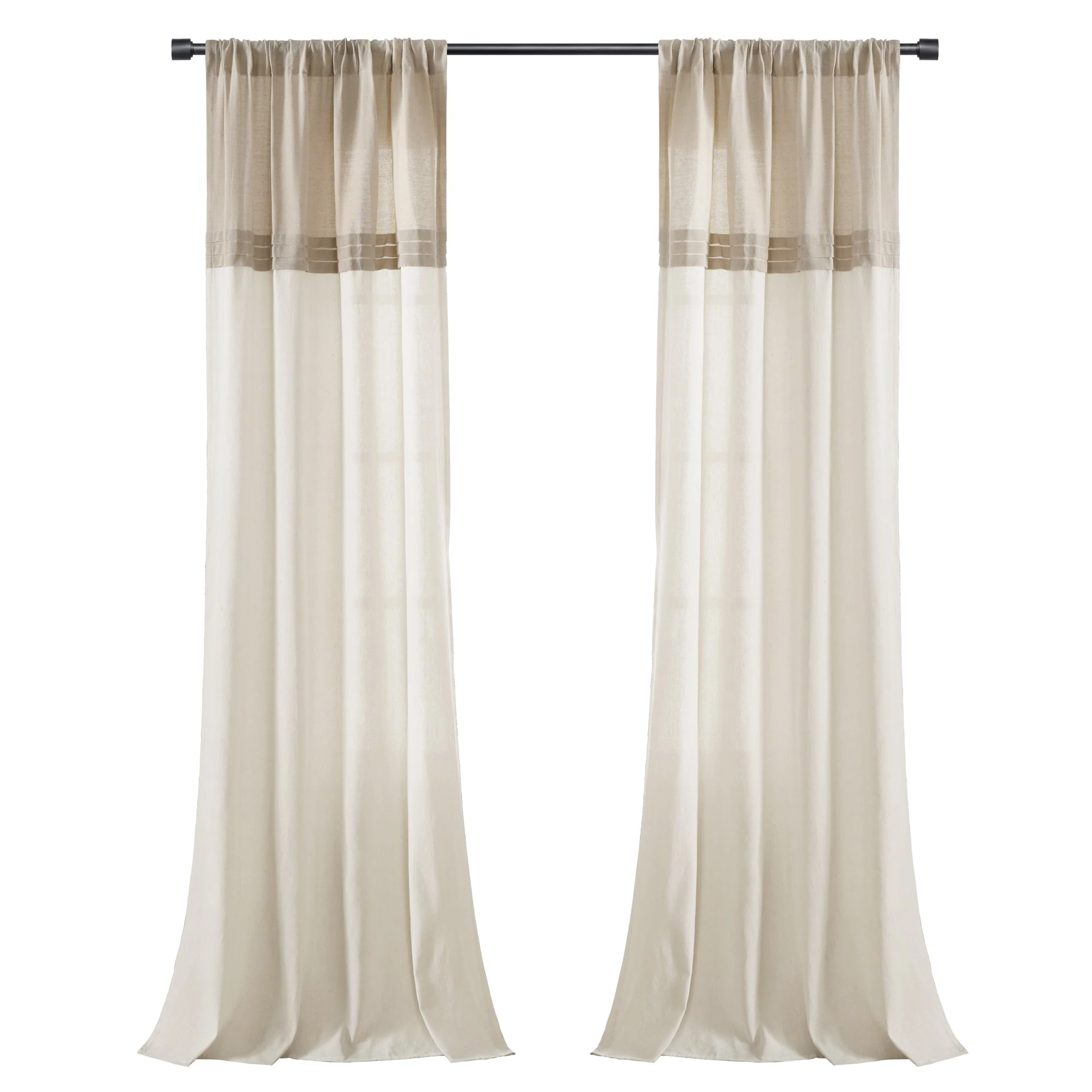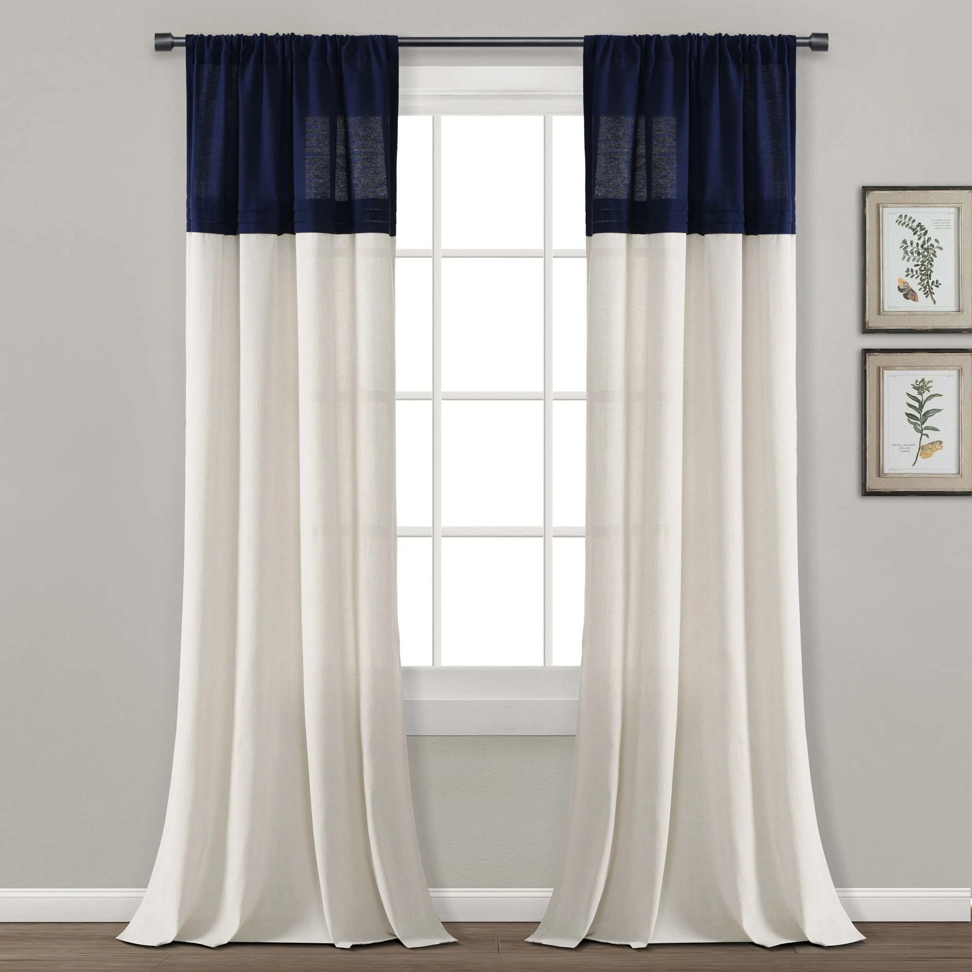 This timeless look coordinates perfectly with a farmhouse style and other modern interiors. Color block patterns offer a distinct design palette that can either coordinate with other style elements in your room or take on a lead role with their fun pop of color. This window curtain set brings some texture in its pleated detailing that also works to separate the two blocks of color. Each panel has a 40 inch width, and this style is sold as a pair. Please refer to label for full care instructions.