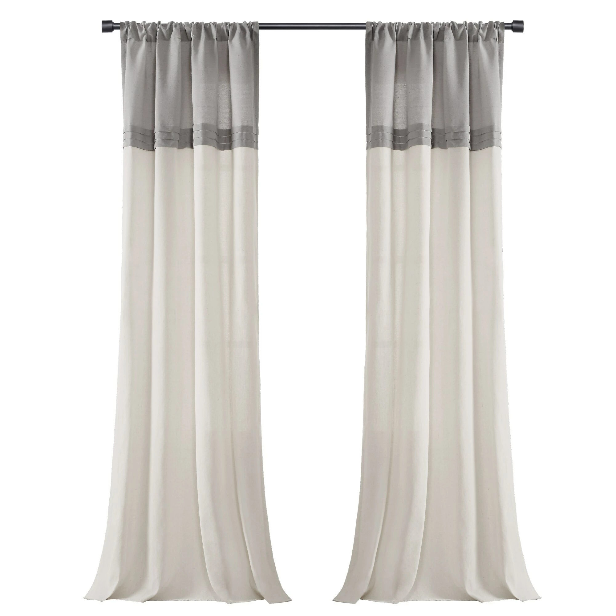 The classic color block pattern in this window curtain set is a timeless way to style your interior. The two-toned pleated window panels offer a familiar style and a starter color palette for your space. These window curtains are sold as a pair.