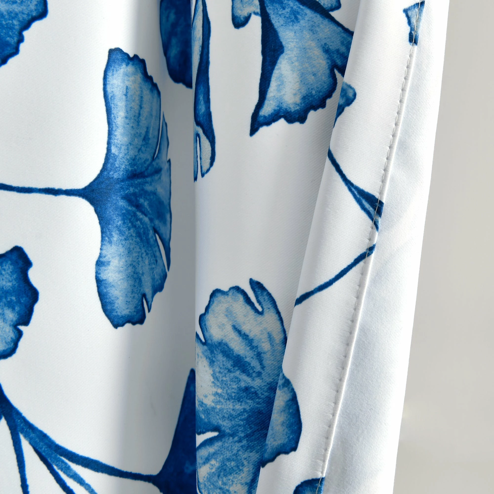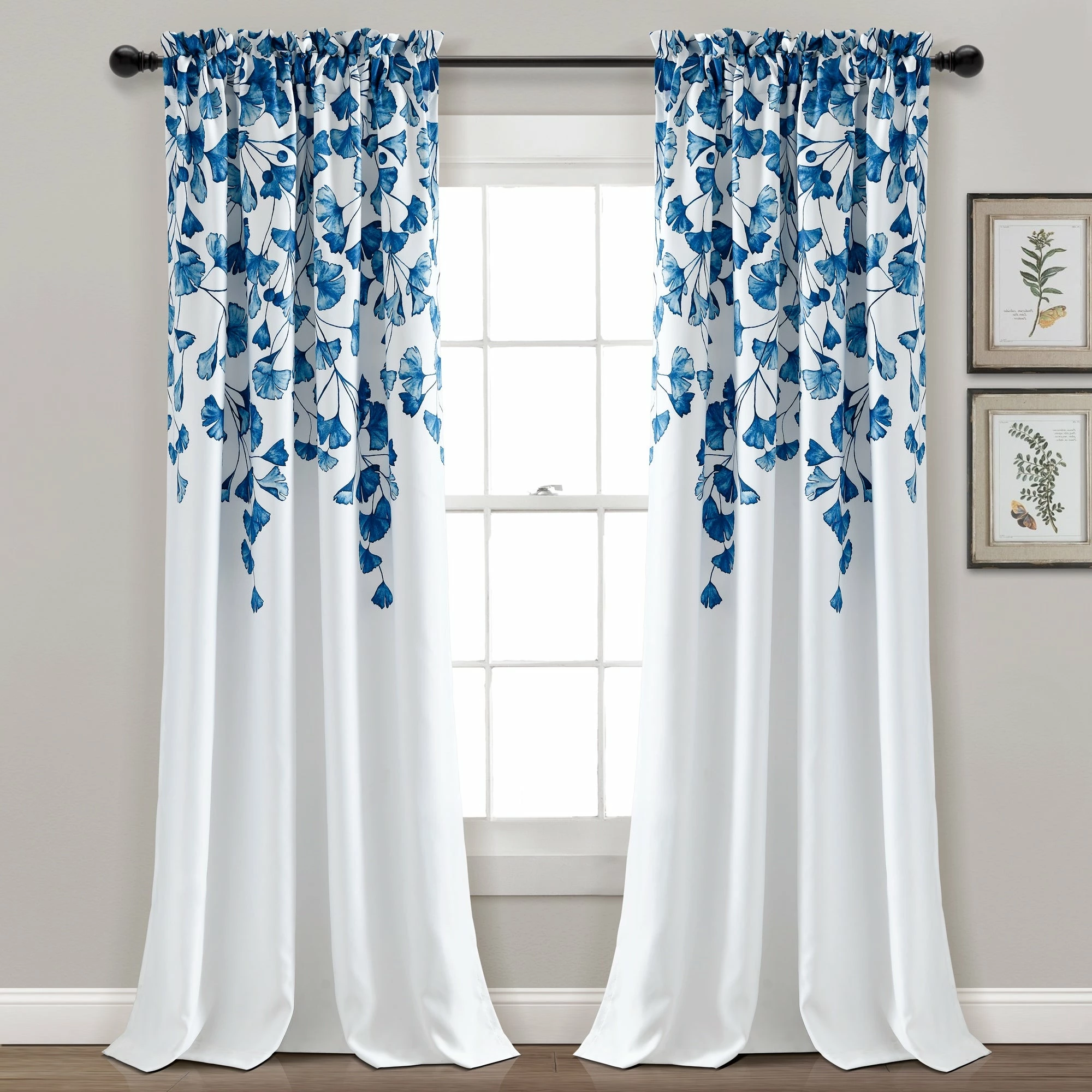 Bring artistry to your farmhouse styled home with these printed window curtains. Through cascading vines of ginkgo leaves is an introduction of bold color set to inspire your interior. The light filtering fabric provides privacy and only allows a slight flow of natural light in your space. Simply slide a curtain rod through the rod pocket of each panel when hanging. The width of this curtain is 52 inches and this is sold as a single panel. Please refer to label for full care instructions.