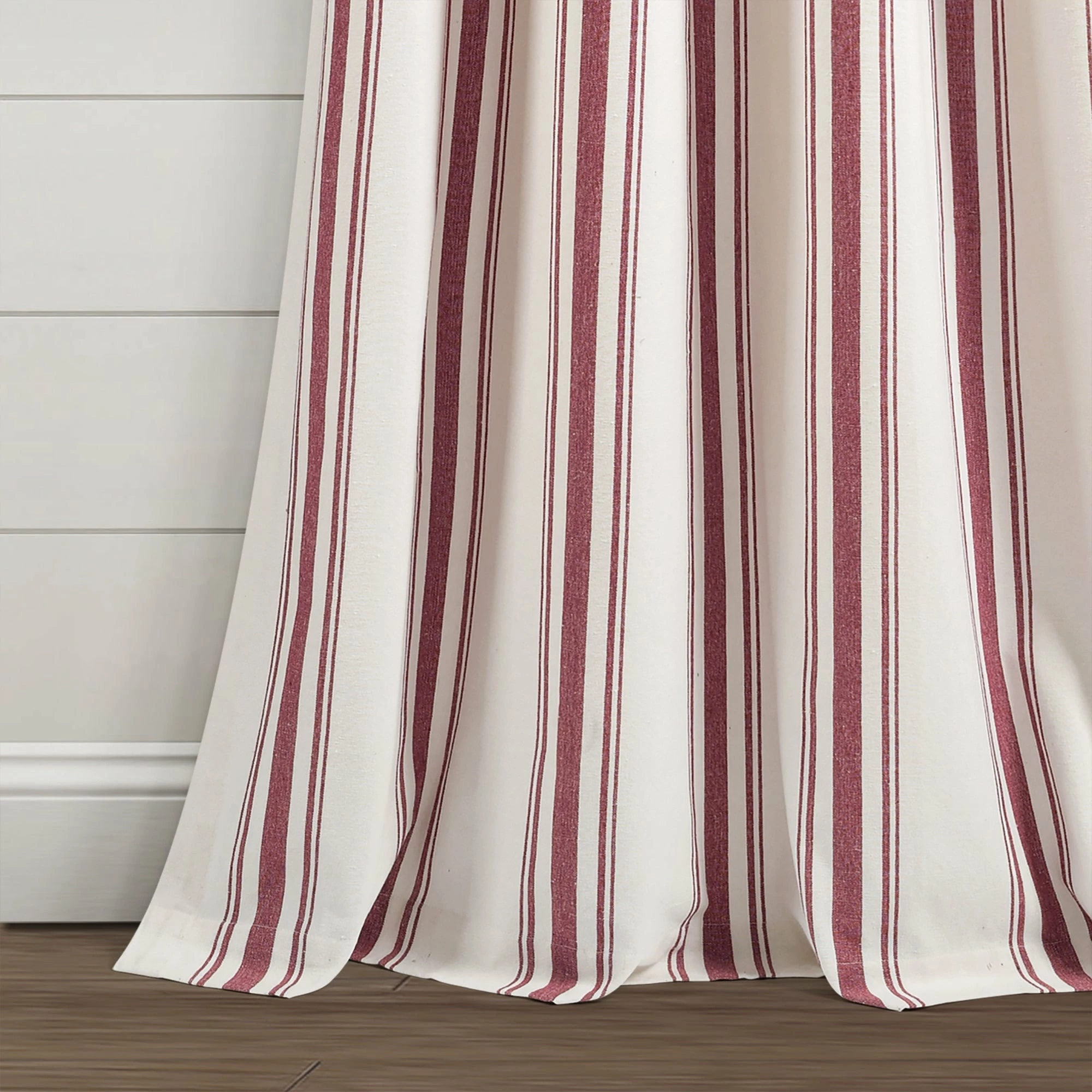 Block out unwanted light and bring a cozy, farmhouse flair to your home with this set of two curtain panels from Lush Decor. Made of recycled cotton, these eco-friendly curtains feature a country-inspired striped pattern. Choose from a variety of sizes and colors to best meet your needs.