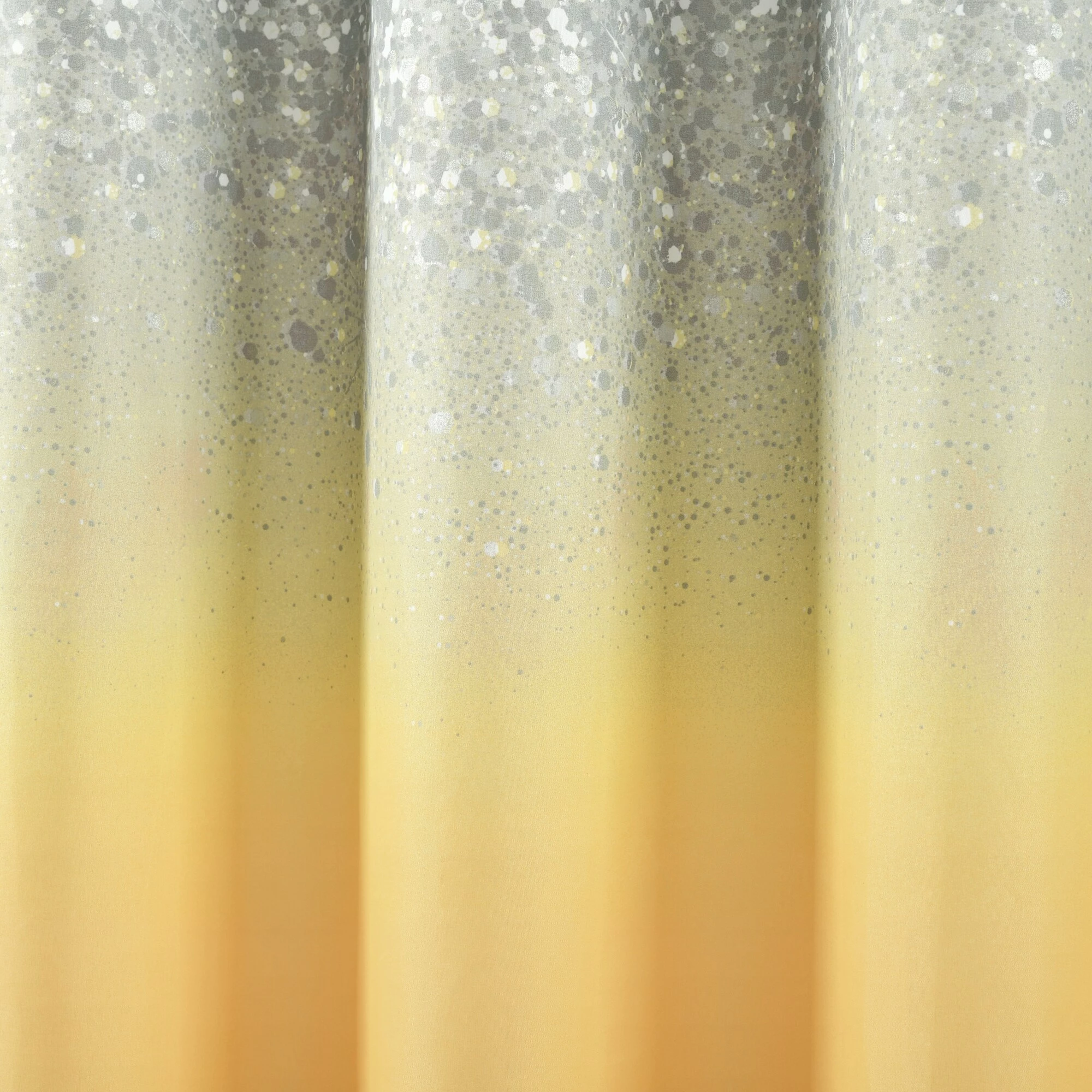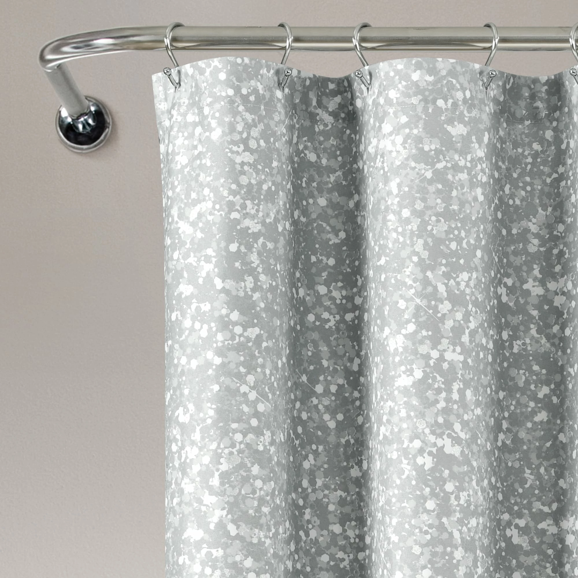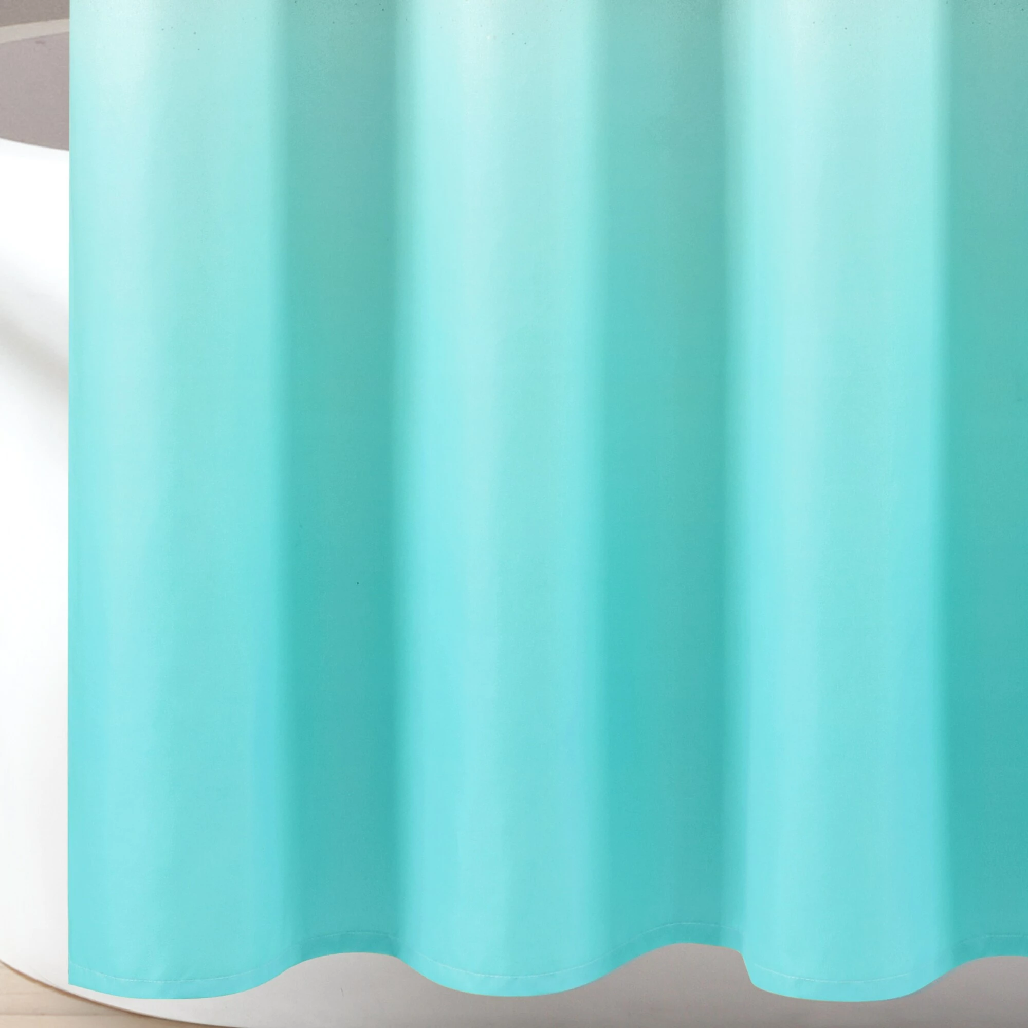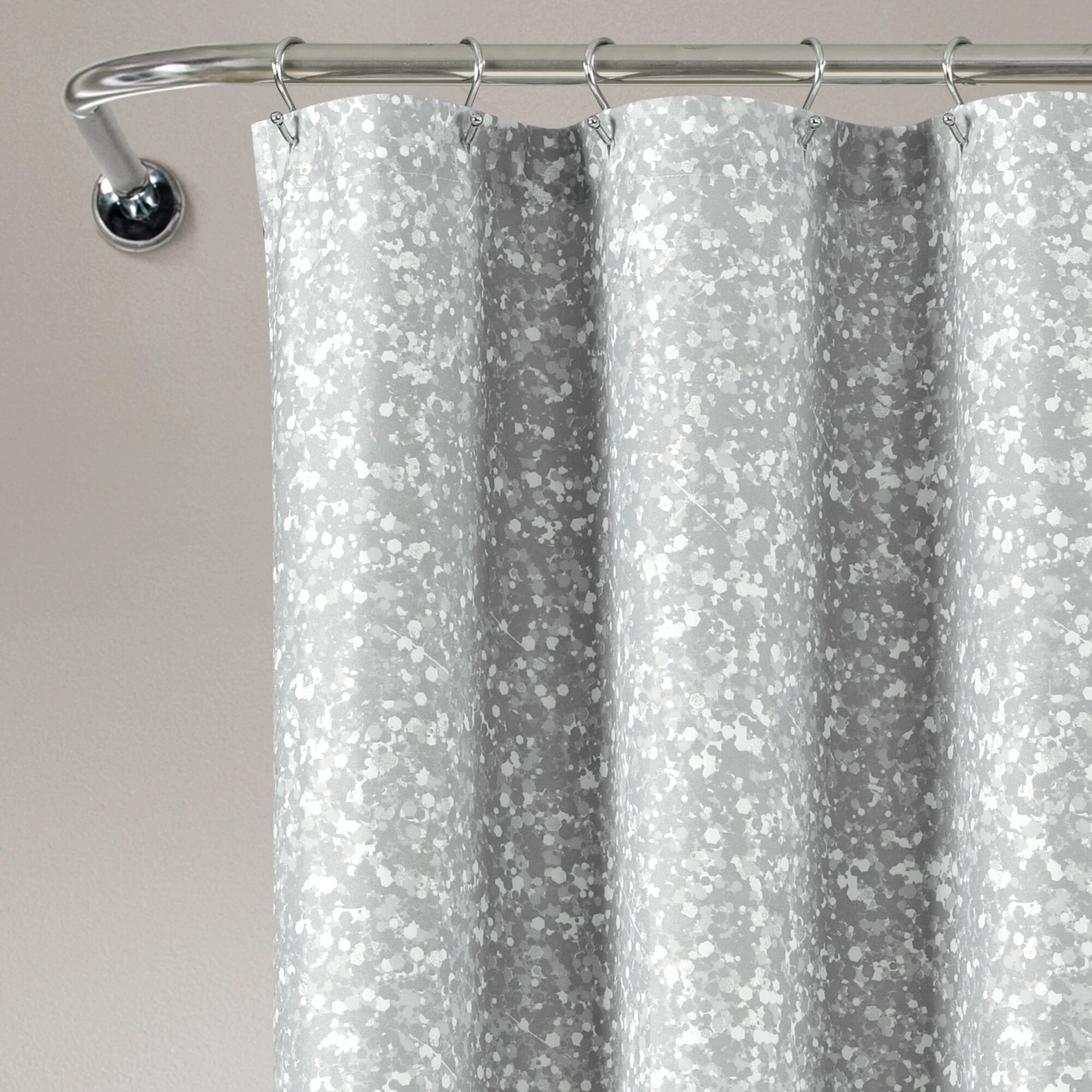 Glam up your bathroom with this sparkly shower curtain. This trendy curtain features an ombre style fade that blends together a silver printed glitter design into an eclectic color of you’re choice. This shower curtain would look great in your child’s bathroom for a fun piece of decor or your guest bathroom for you visitors to enjoy. Each side of this shower curtain measures 72 inches. This curtain is machine washable for your convenience. Please refer to label for care instructions.