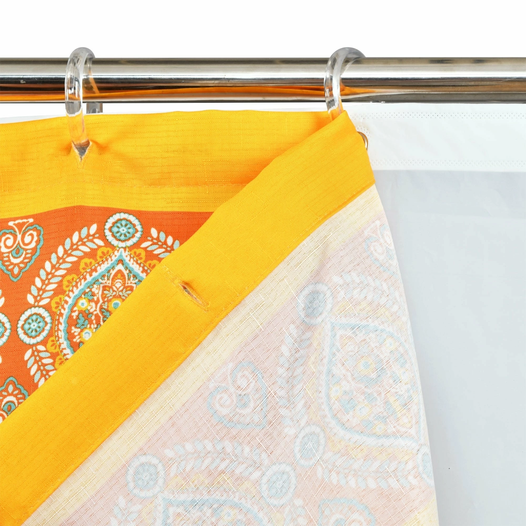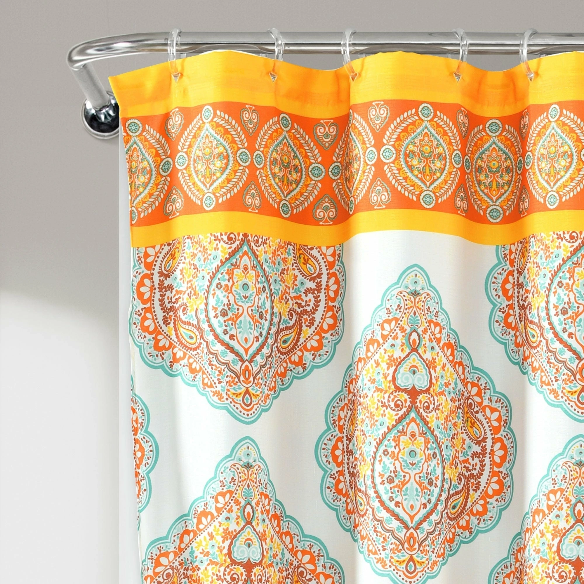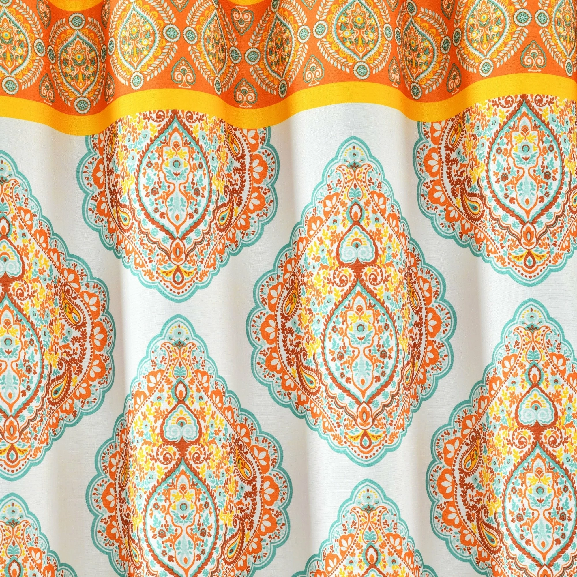 Enhance your master or guest bathroom with this uniquely styled 14-piece complete shower curtain set. It’s like adding another window to your bathroom! The bold damask pattern is sure to make a statement in your space. This set includes liner and rings.
