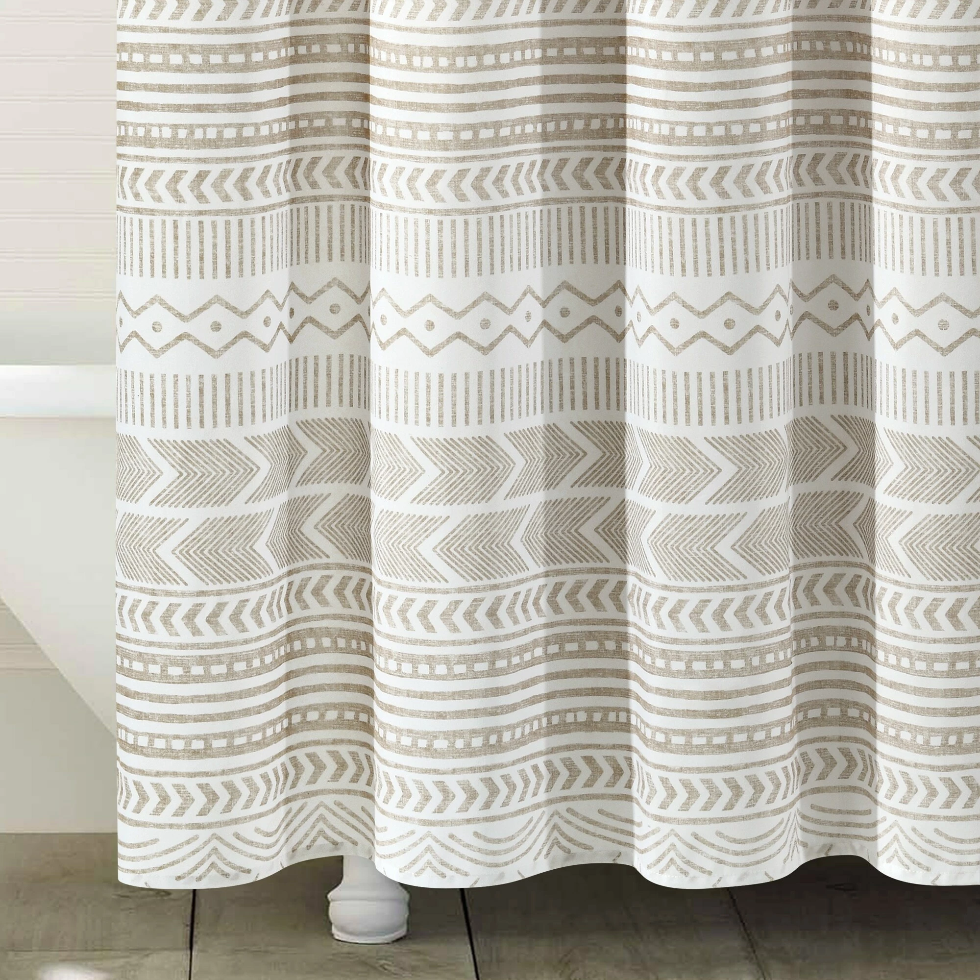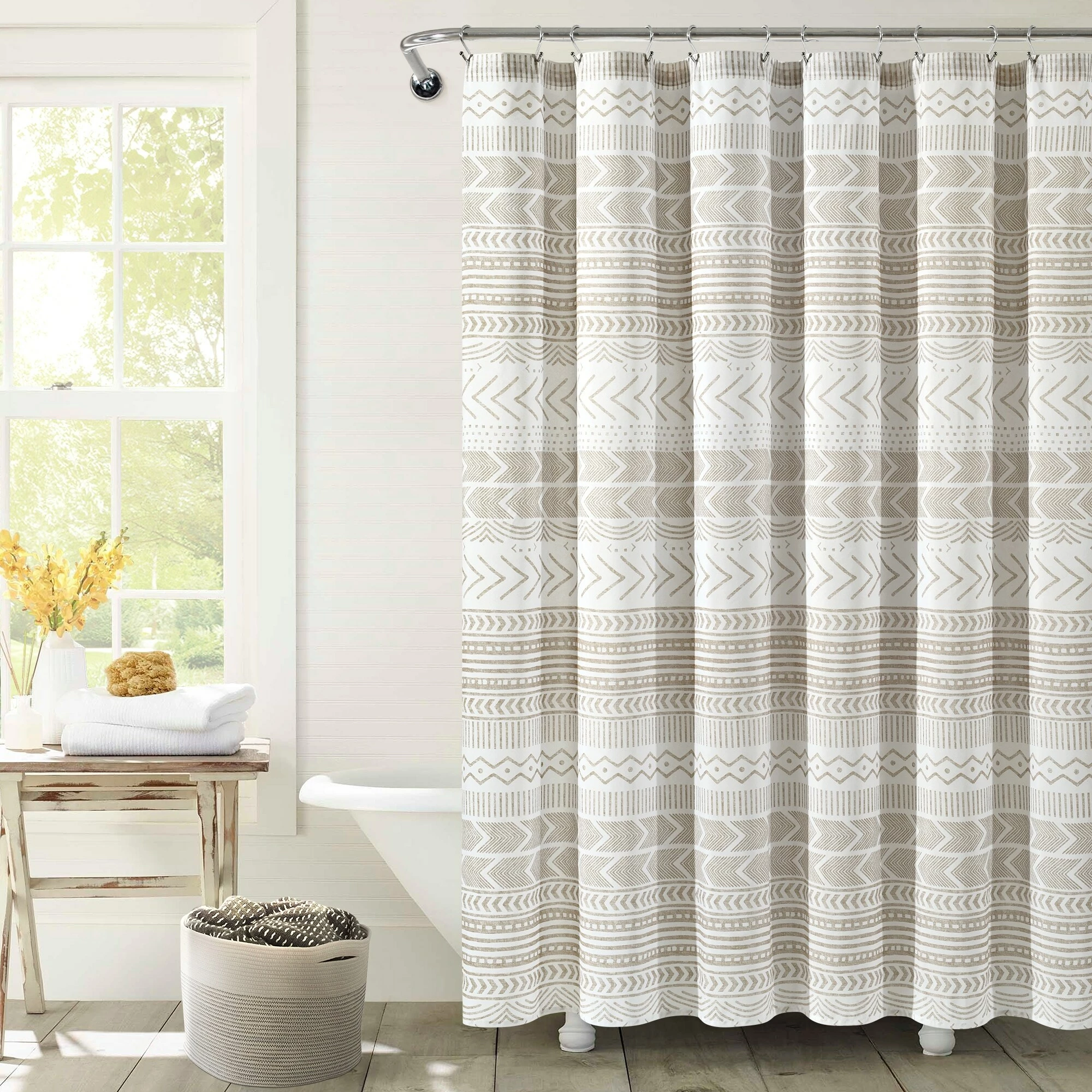 Add Swedish style to your home with this shower curtain featuring stripes of various geometric patterns. This shower curtain is perfect for a master, guest or teenager’s bathroom.1 Shower Curtain: 72″Hx72″W100% PolyesterMachine Wash Cold, Mesh Bag, Similar Colors, Gentle Cycle. Use Only Non-Chlorine Bleach When NeededTumble Dry Low, Light Iron If Needed.