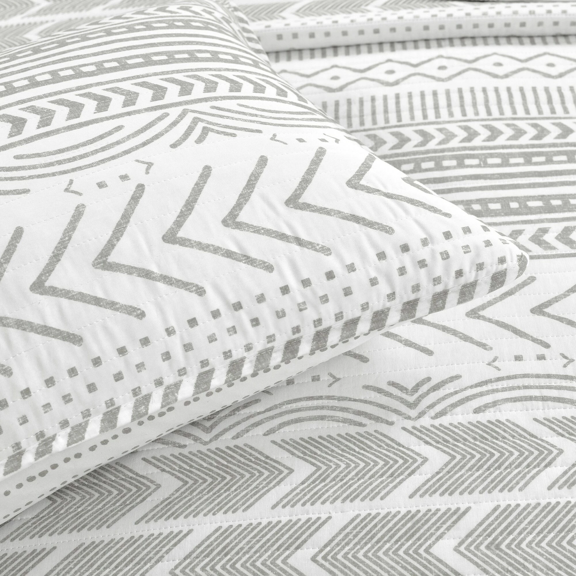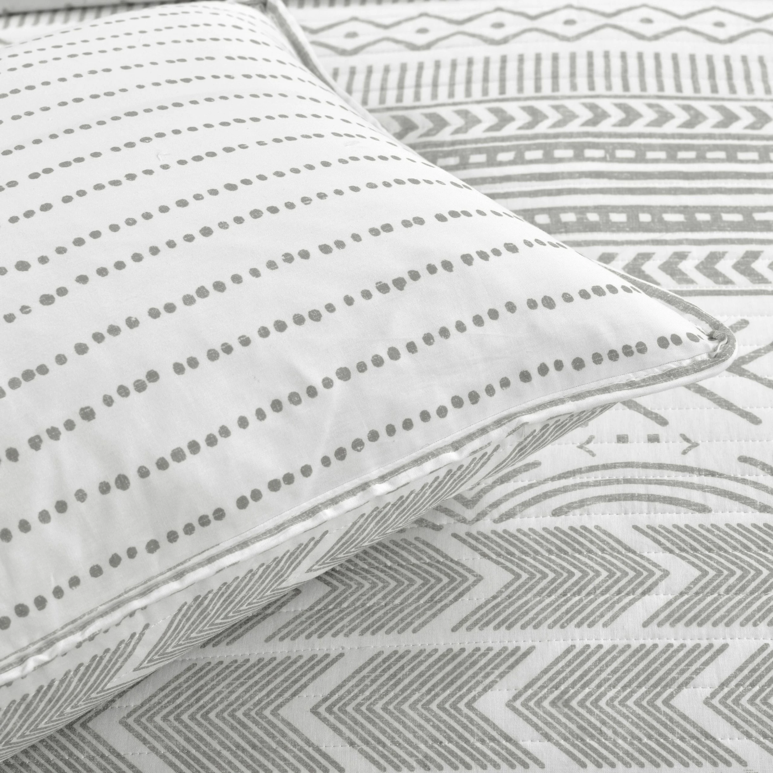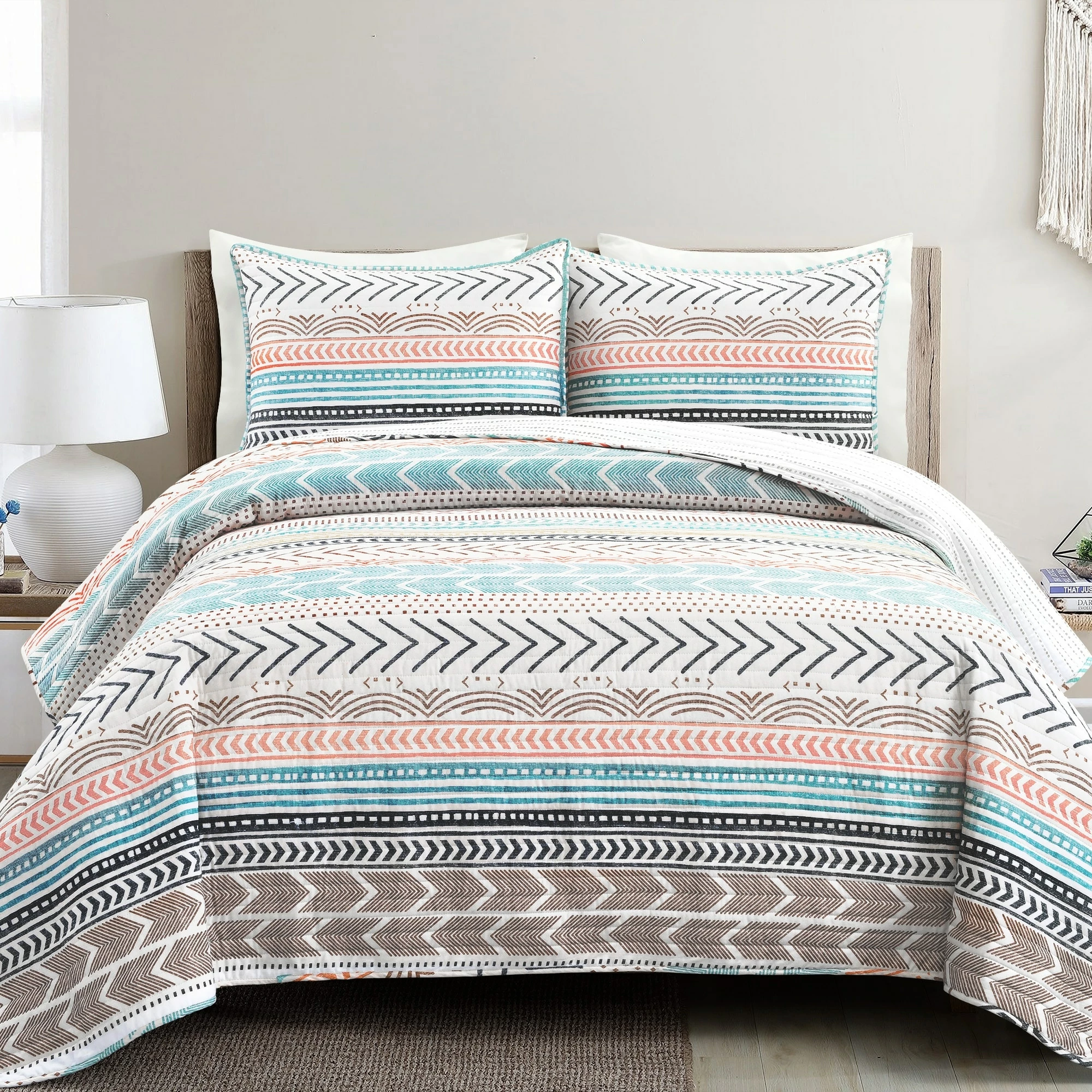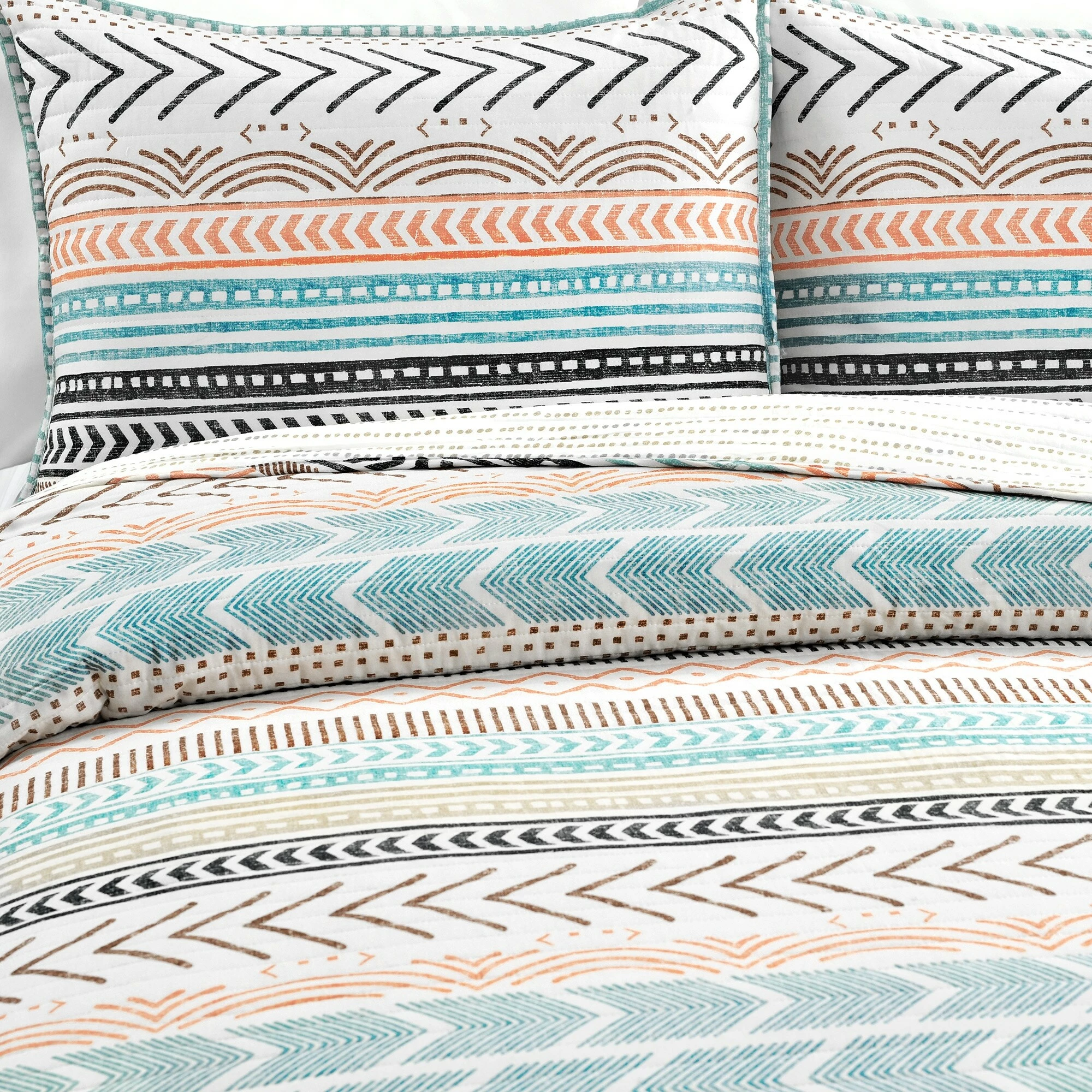 Customize your contemporary bedroom with the Hygge three-piece quilt set from Lush Decor. The cozy cotton set features stripes of varied geometric designs, and it is reversible to an alternate look. Choose from two sizes and various color combinations to match your existing decor.