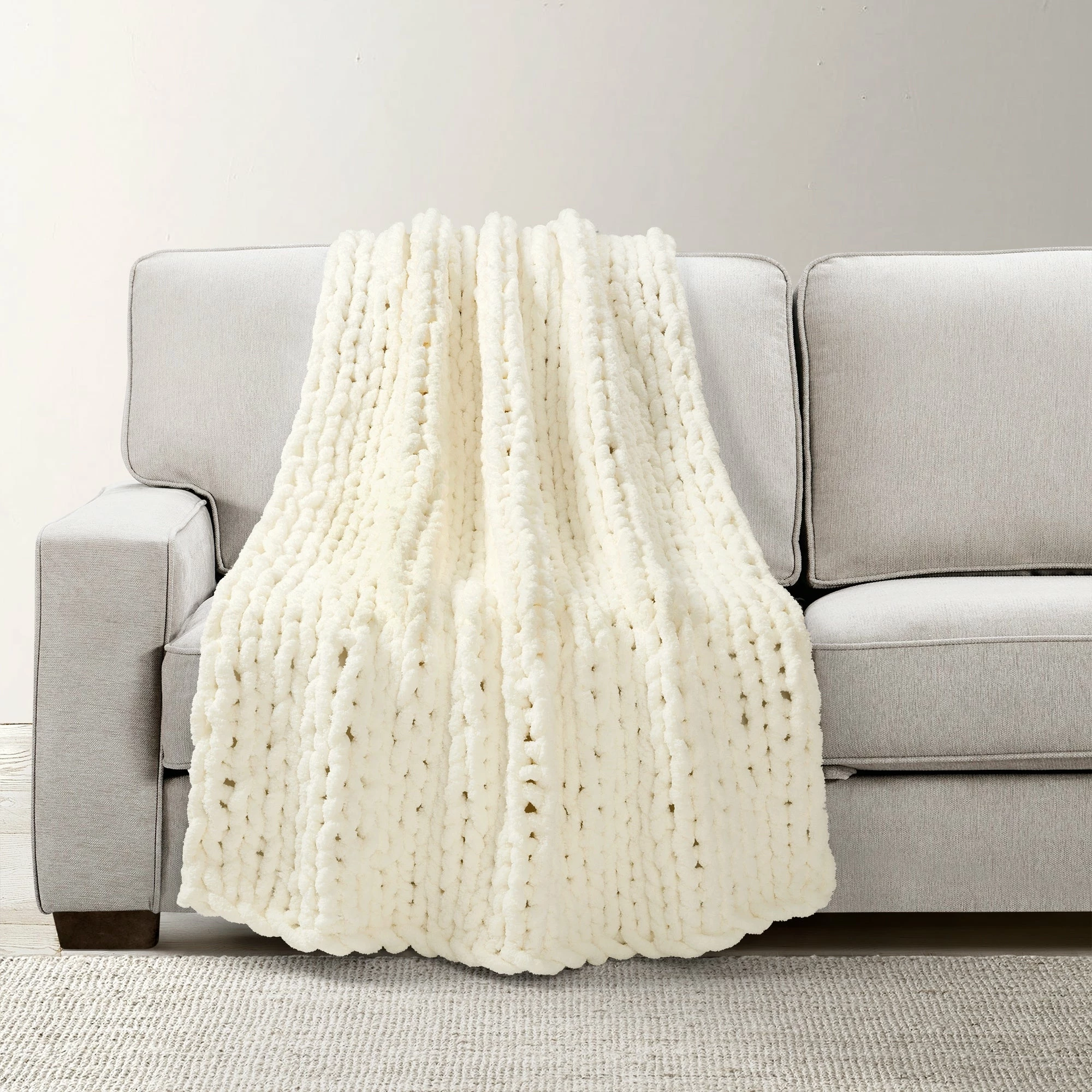 This style is always trending, and for good reason! You’ll want to spend every moment curled up in the lavish comfort and rich softness of this chunky knit throw. This plush blanket styles beautifully on its own but also goes well in many design themes.