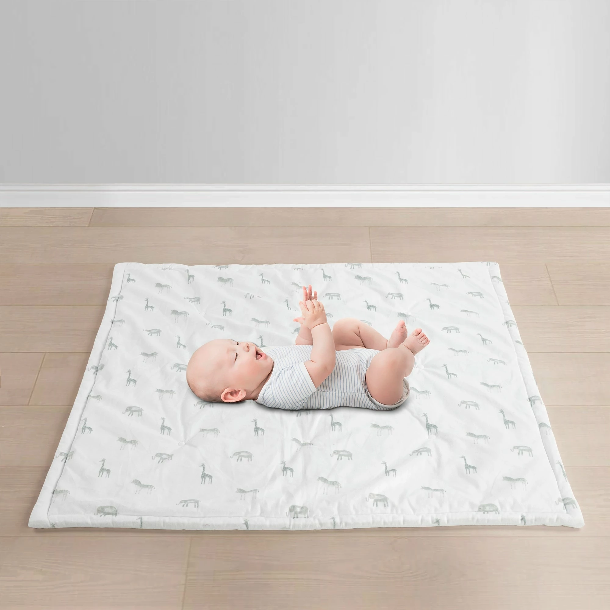 Every baby has some exploring to do, and this STANDARD 100 by OEKO-TEX certified play mat is here to help while keeping them safe and comforted! Decorated with an adorable jungle themed print, this play mat is the perfect addition to your nursery.Β