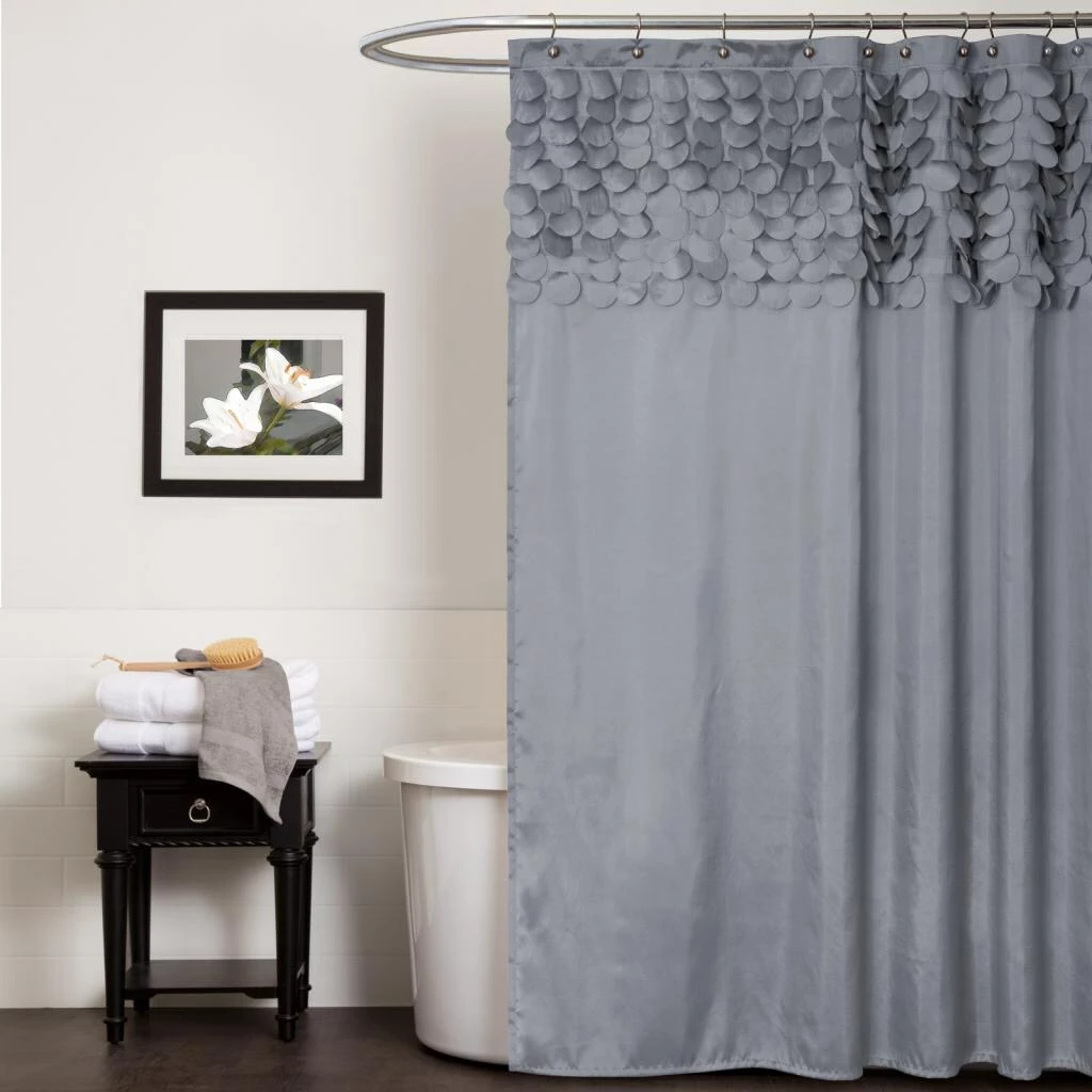 Invigorate your bathroom decor with this chic, modern-style Lillian shower curtain from Lush Decor. This fashionable shower curtain features hand-stitched, laser-cut circles that provide stunning visual flair, while the grey color suits a variety of color schemes. The curtain’s polyester construction is machine washable for easy care.
