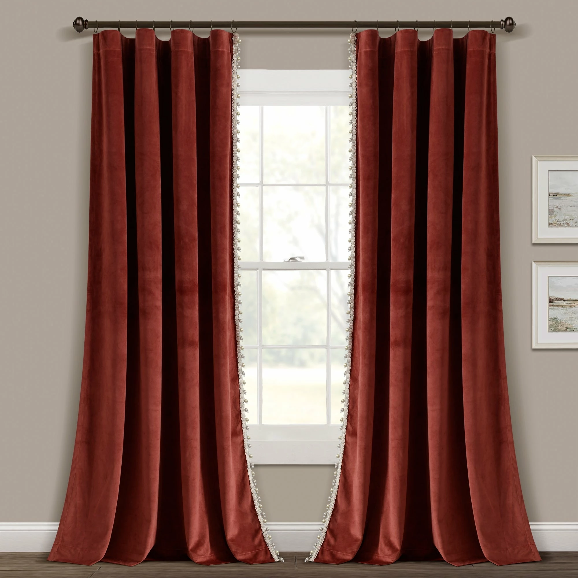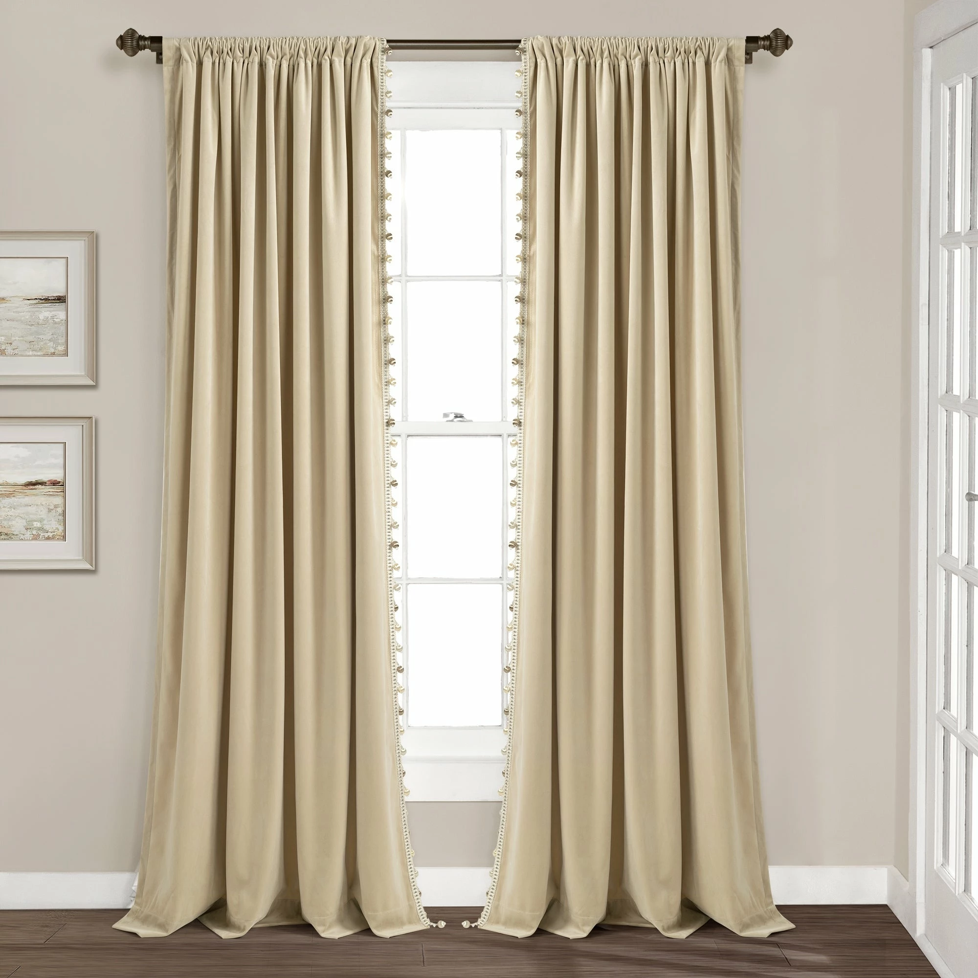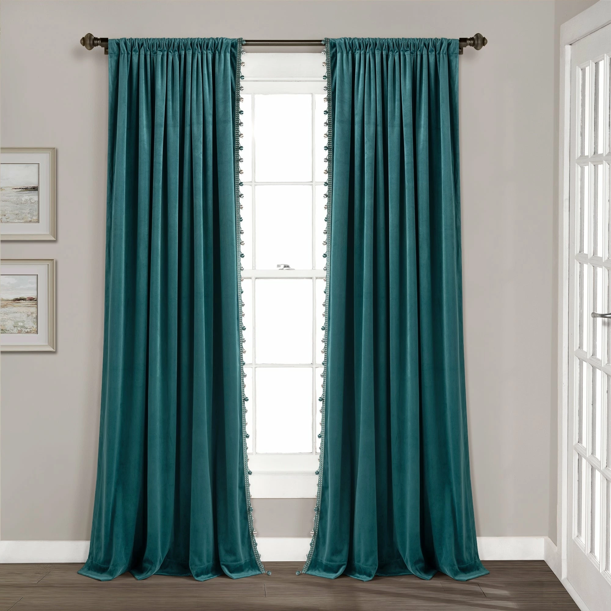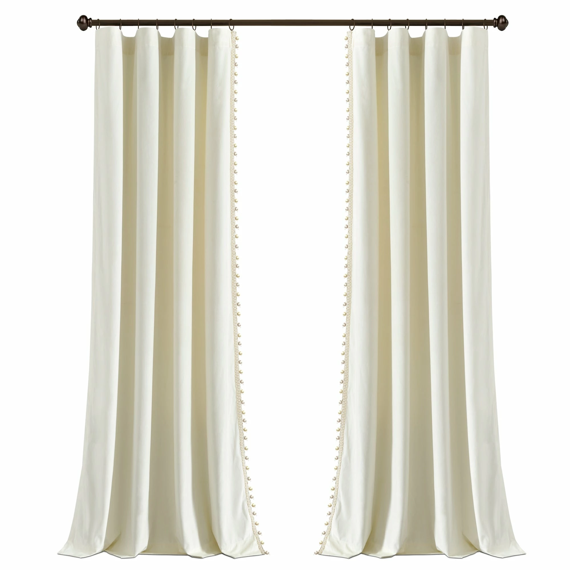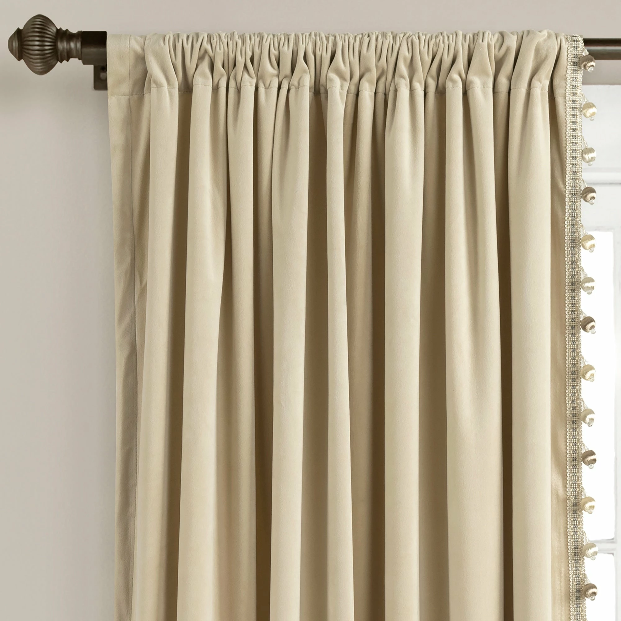 Elevate your interior with this luxurious window curtain. Lined with a silky pom pom trim and graced with a velvety texture, this STANDARD 100 by OEKO-TEX certified curtain’s elegant style captivates the attention of any room it decorates.