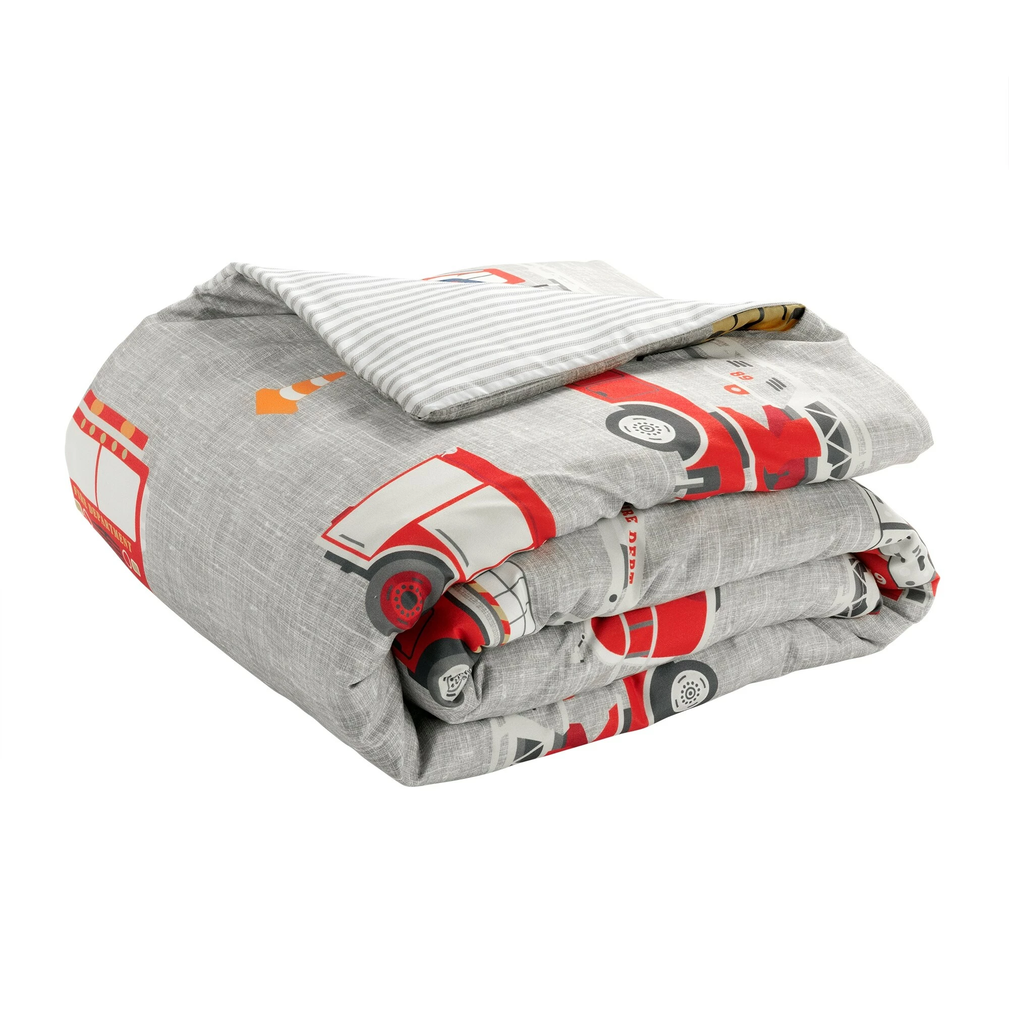 Make every night a restful one for your child when you gift them this soothing weighted blanket. This blanket mimic a soothing hug to naturally relieve stress. The adorable cover is printed with a fun fire truck theme. The weighted blanket stays secure inside the cover using the four internal ties and then closing with the hidden zipper. This set includes one weighted blanket and one blanket cover. For your childβs safety, be sure the weight of the blanket does not exceed 10% of their body weight. This blanket is designed to cuddle your little one without covering their face or head. 5% of the wholesale cost of each item sold within the Make-A-Wish Collection by Lush Decor on LushDecor.com or through any e-tail/retail site or location will be donated to the Make-A-Wish Foundation. Please refer to the product label for full care instructions.Β