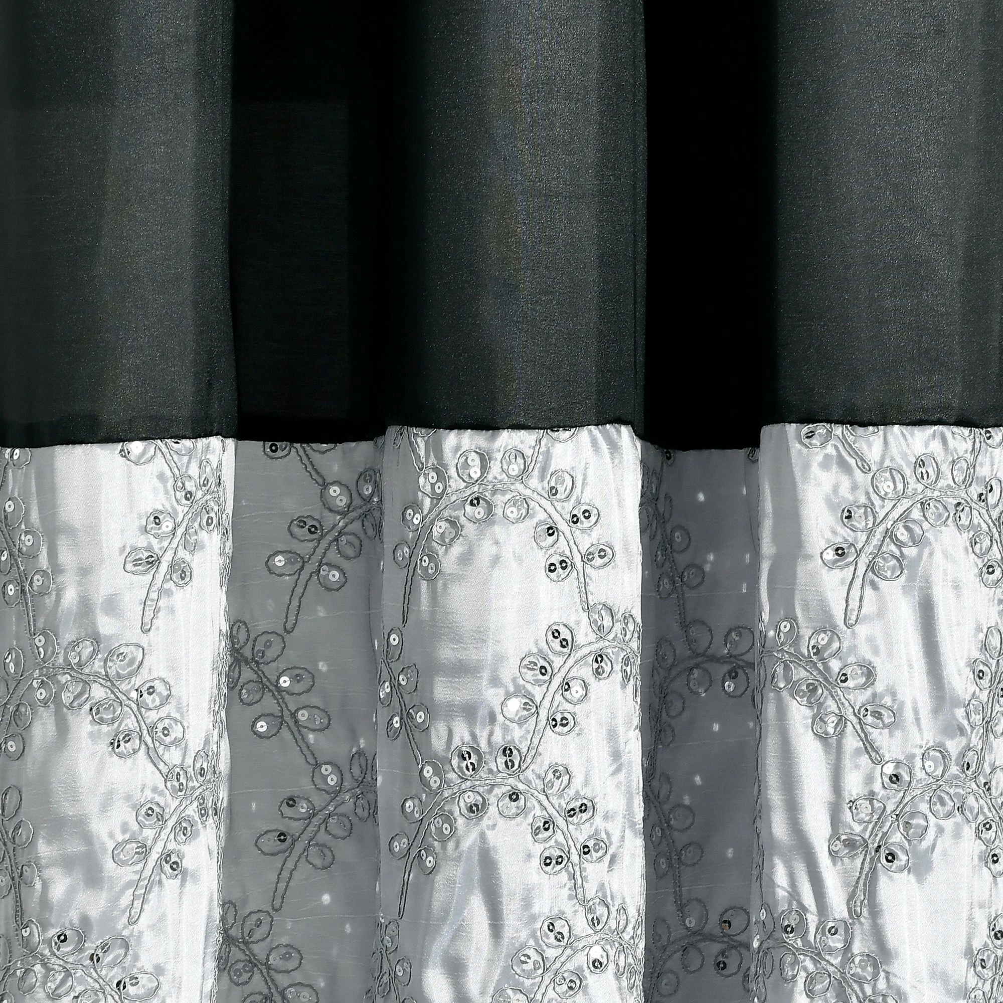 Glamorize any room with this regal looking decorative window curtain panel. Fabricated from taffeta, it features a color block design and cord embroidery laced with sequins for a show stopping texture. Hang this panel in any room and feel like royalty.Β