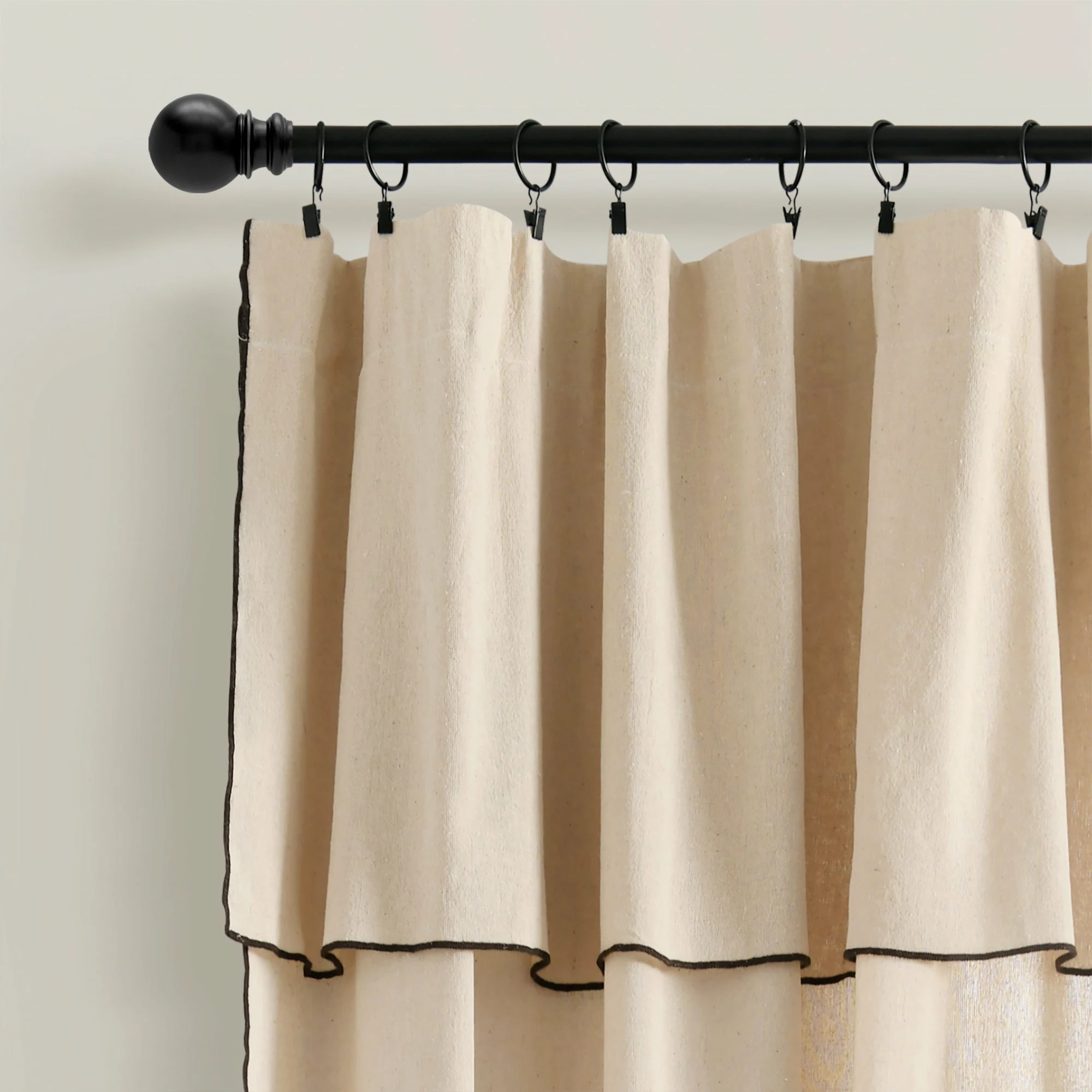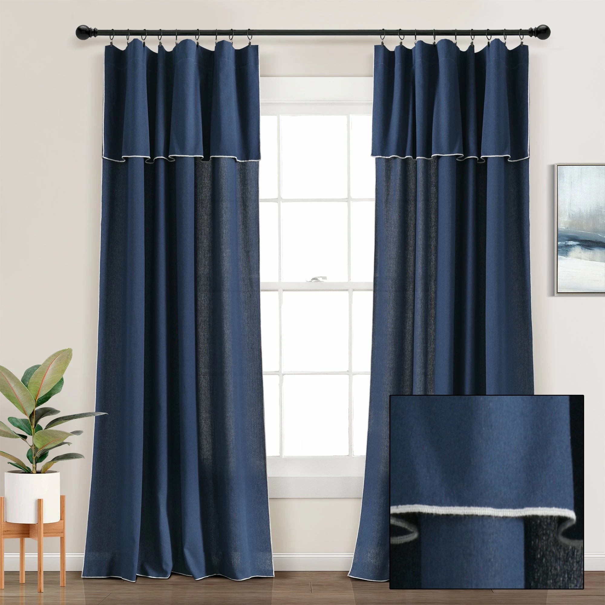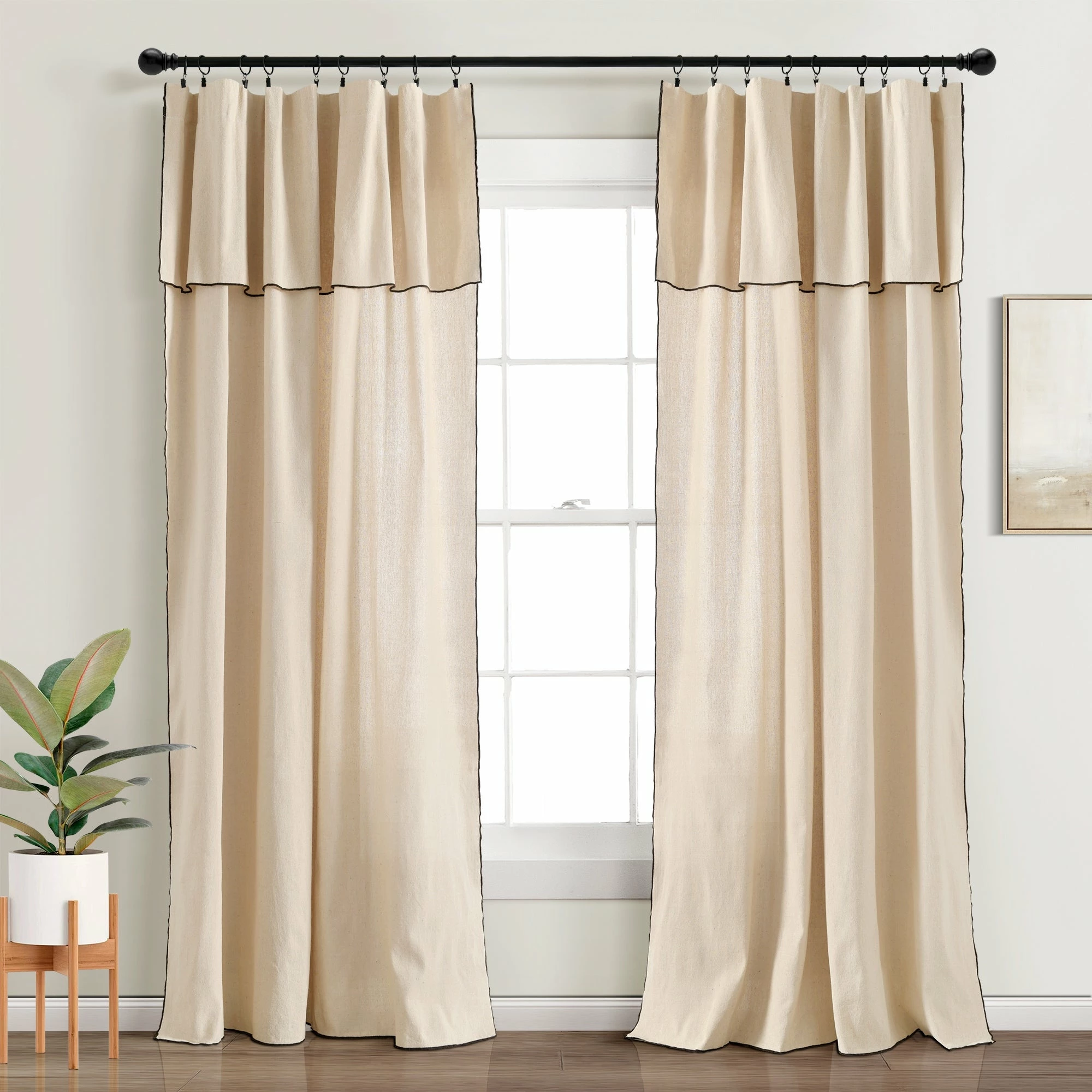 A little bit of layering gives these panels a whole lot of style. These beautiful window curtain panels are perfect for updating any space in your home. The modern linen look with the attached valance provides a stylish and sophisticated style. Hang this curtain set to complete your contemporary home design. Each panel has a width of 52 inches, and this is sold as a pair. Please refer to label for full care instructions.Β