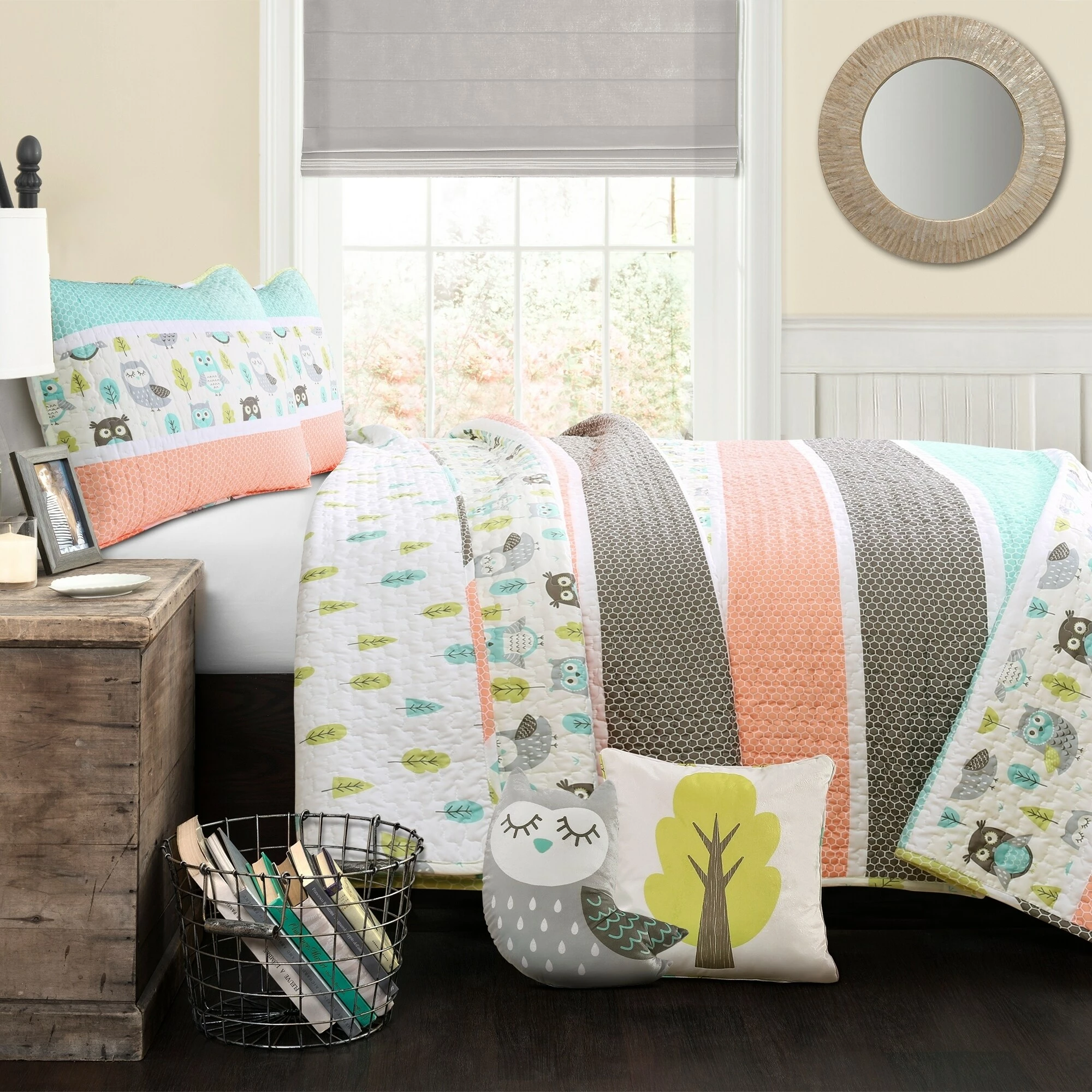 Owls symbolize magic, mystery and ancient knowledge. Bright colors and this unique design will help bring your child’s imagination to life as you surround him or her with the great qualities of one of nature’s most interesting birds in this 4-piece set.