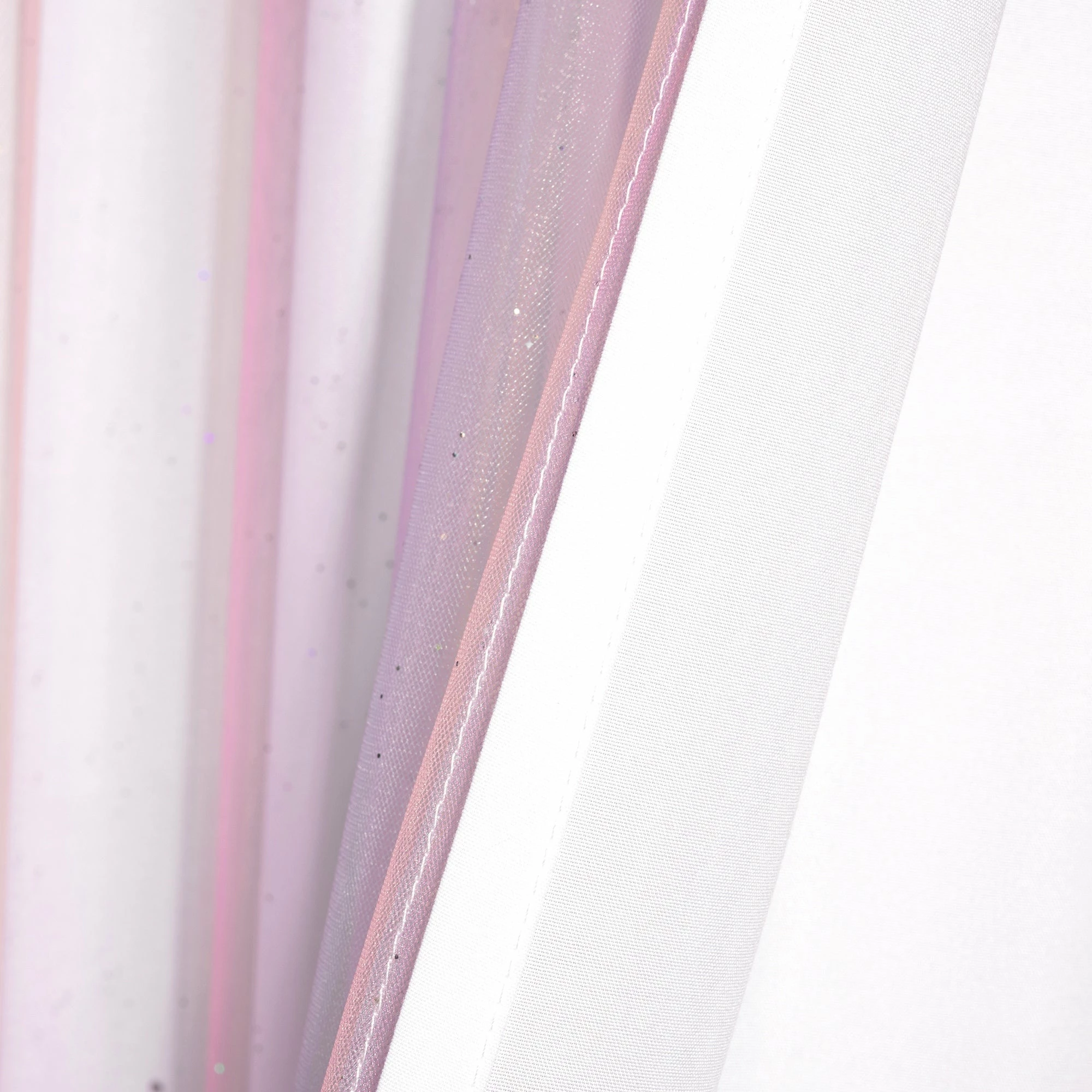 Layers, textures, and colors are our recipe for this beautiful children’s window treatment. Get inspired by the airy movement and rainbow effect of this panel to create multiple looks by skillfully styling the layers. Sold as a single panel.