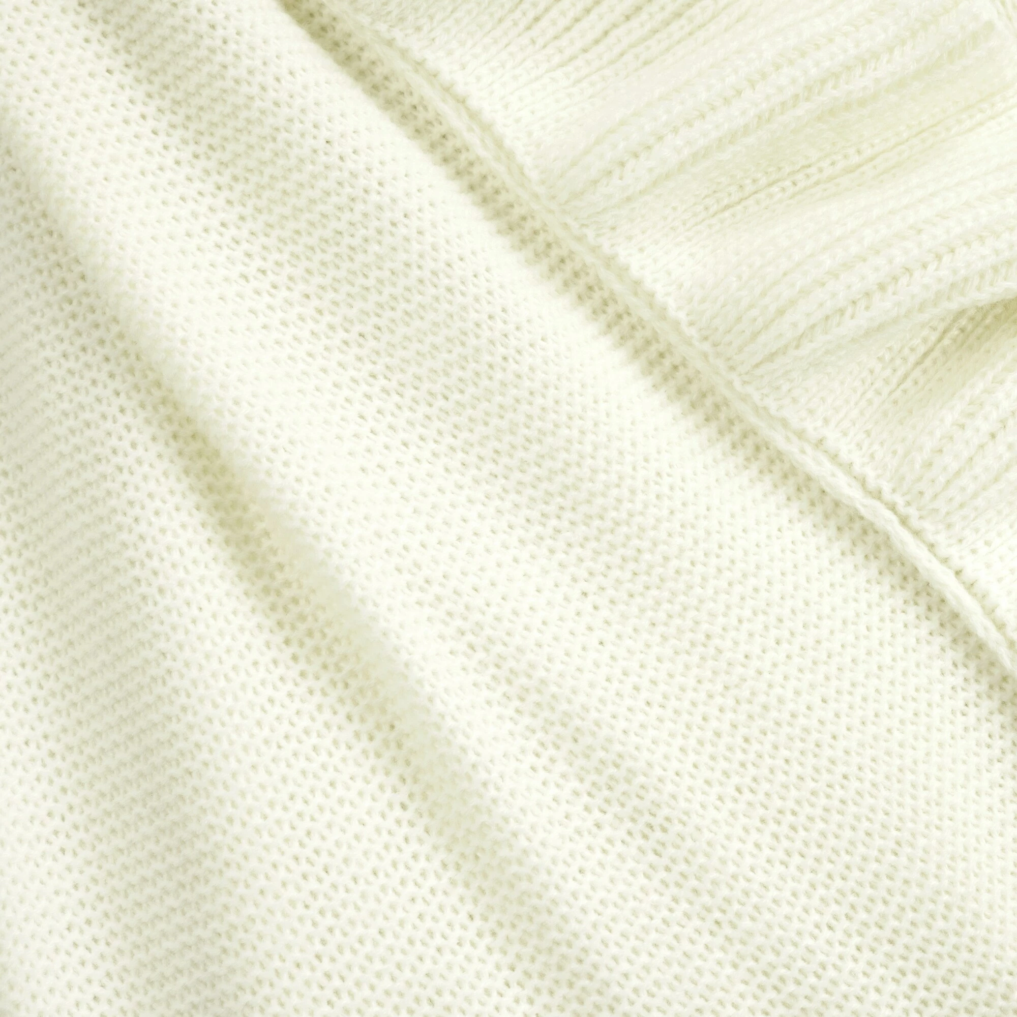Once you start curling up with this throw blanket, you may never choose another. It delivers the perfect balance of year-round comfort in a light, breathable fabric. Use in your primary bedroom to complement vintage, Parisian Chic or cottage core style or drape it over a sofa or chair in the living room for a classic look. Soft and decorative, this blanket is knit with feminine style and edged with a lovely ruffle detail. This beautiful throw blanket measures 50 inches by 60 inches including a 3.5 inch ruffle detail. For your convenience, this throw blanket is machine washable.