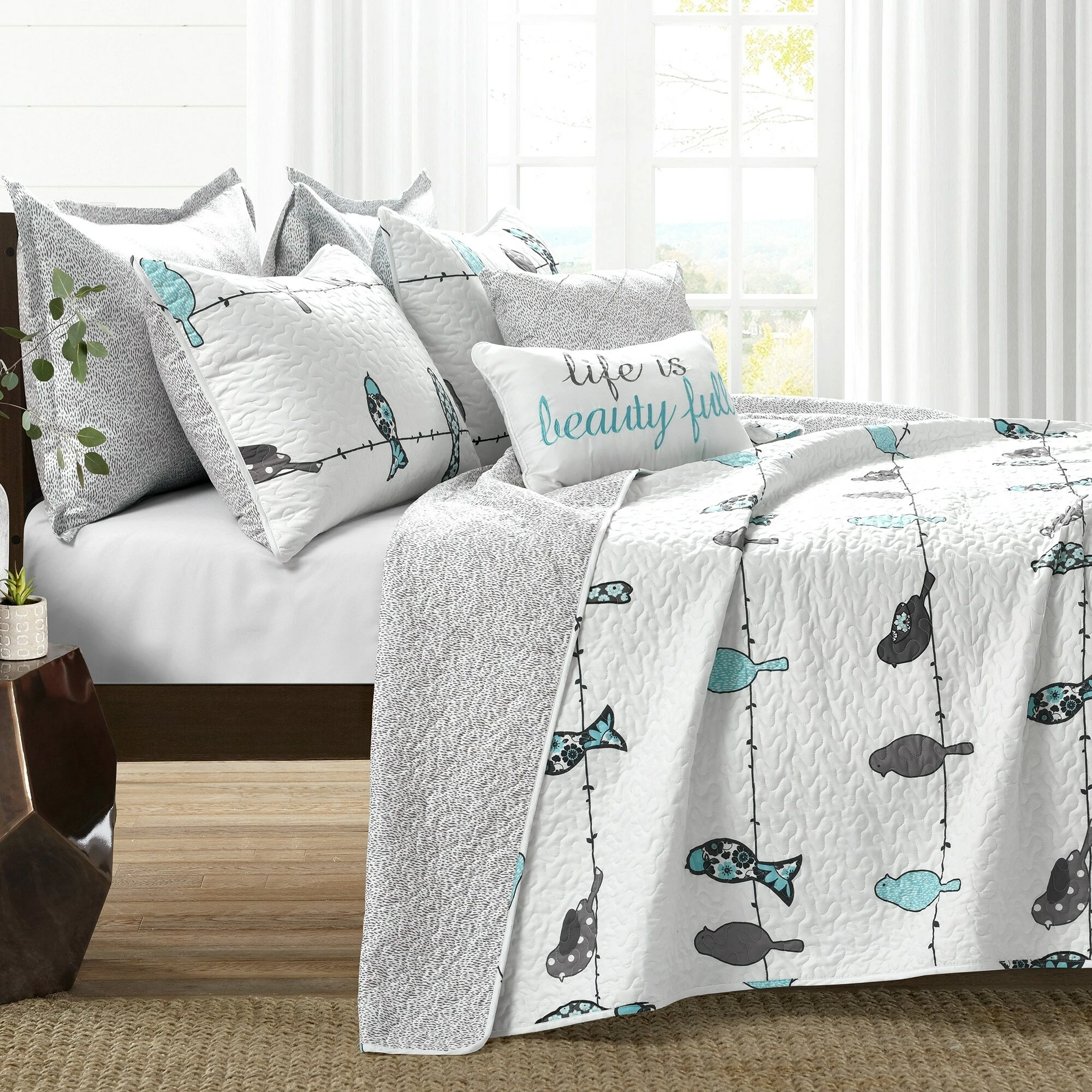 City lovers will adore this quilt set. It’s perfect for college students and those going off to college. The 7-pc set comes complete with 2 matching pillow shams, 2 pillow cases and 2 complementary decorative pillows. Part of the Rowley Birds Collection.