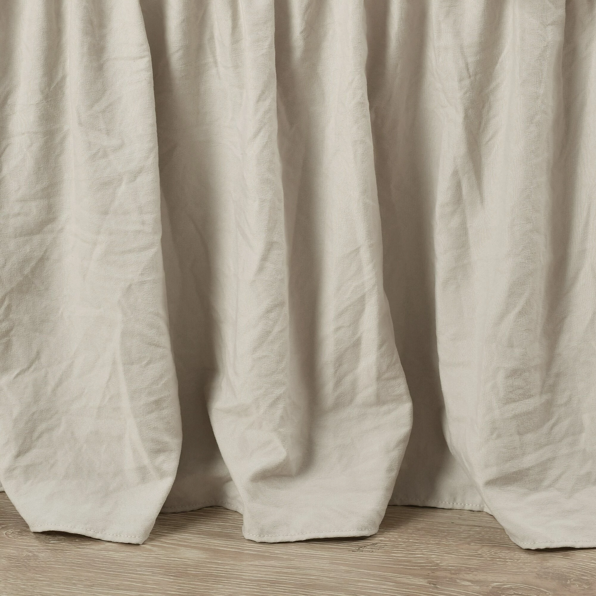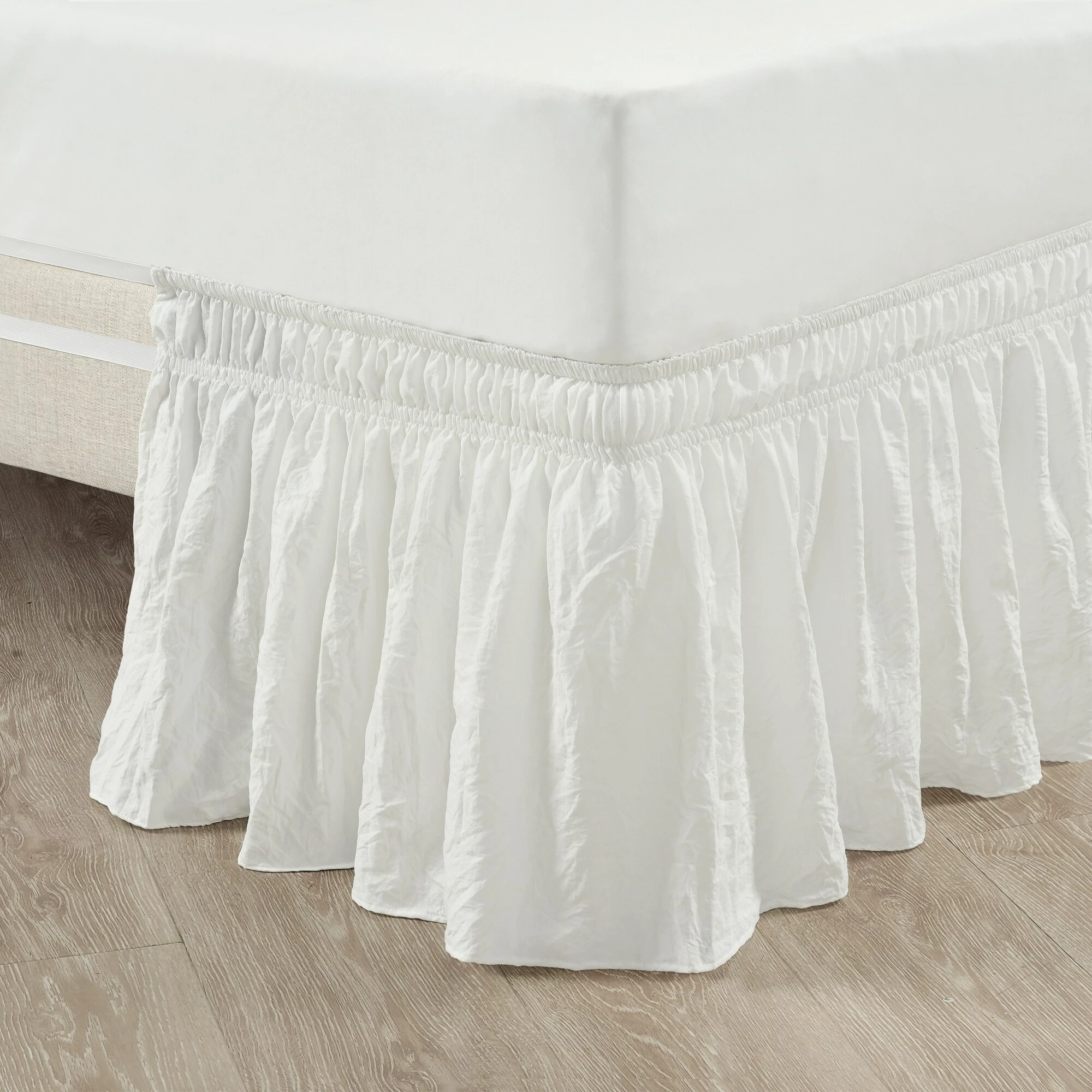 Add a shabby chic look to your bed with this bedskirt. 2 sizes available to fit all mattresses: Twin/TwinXl/Full: 75 inches long x 54 inches wide with a 20 inch drop, Queen/King/Cal King: 80 inches long x 76 inches wide with a 20 inch Drop. A double-elastic band secures in place. No lifting required for easy installation.