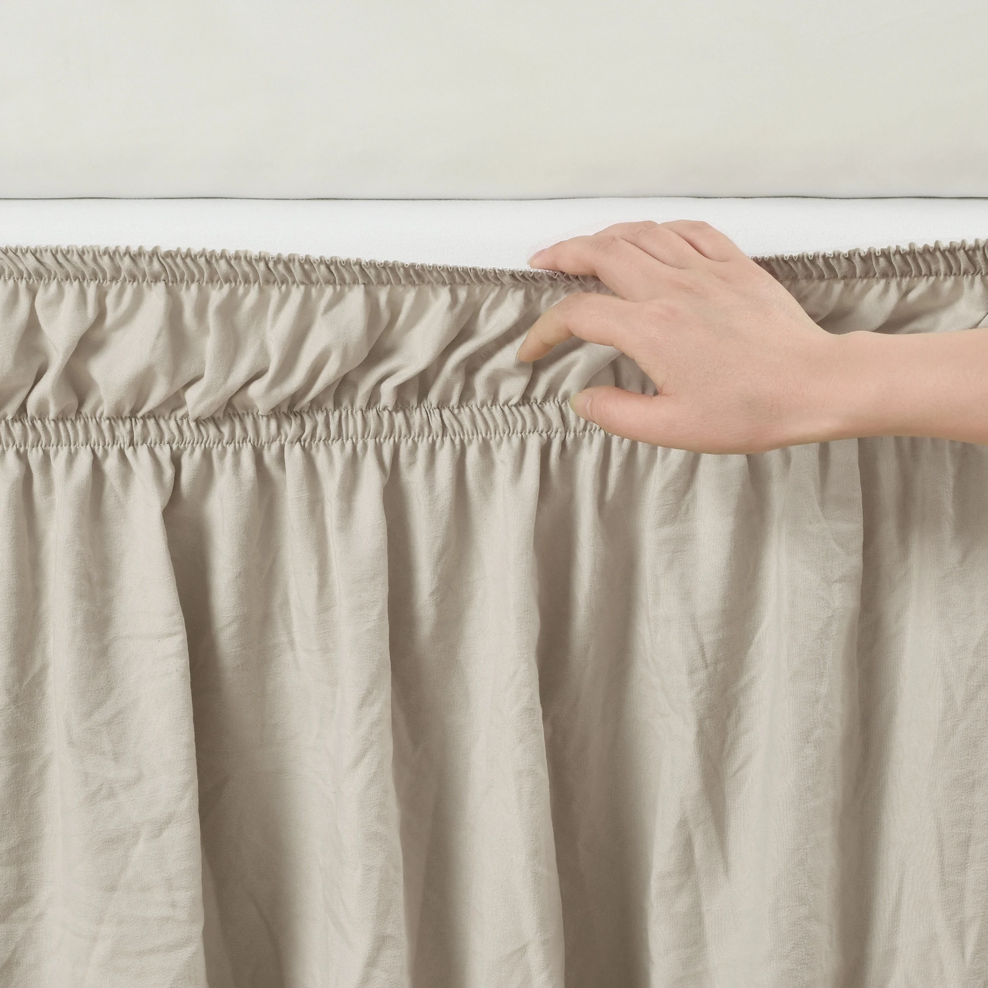 Bed skirts give any bed a more styled look and offer the added benefit of hiding all the items stored underneath the bed. The variety of colors makes it easy to match your existing dΓ©cor theme. Best of all, this bed skirt is made so that it installs easily without having to do heavy lifting. Instead of going under the mattress, it goes around the mattress. The elastic band will keep the bed skirt in place until itβs time for cleaning, and then it will easily install once again when itβs fresh and ready.