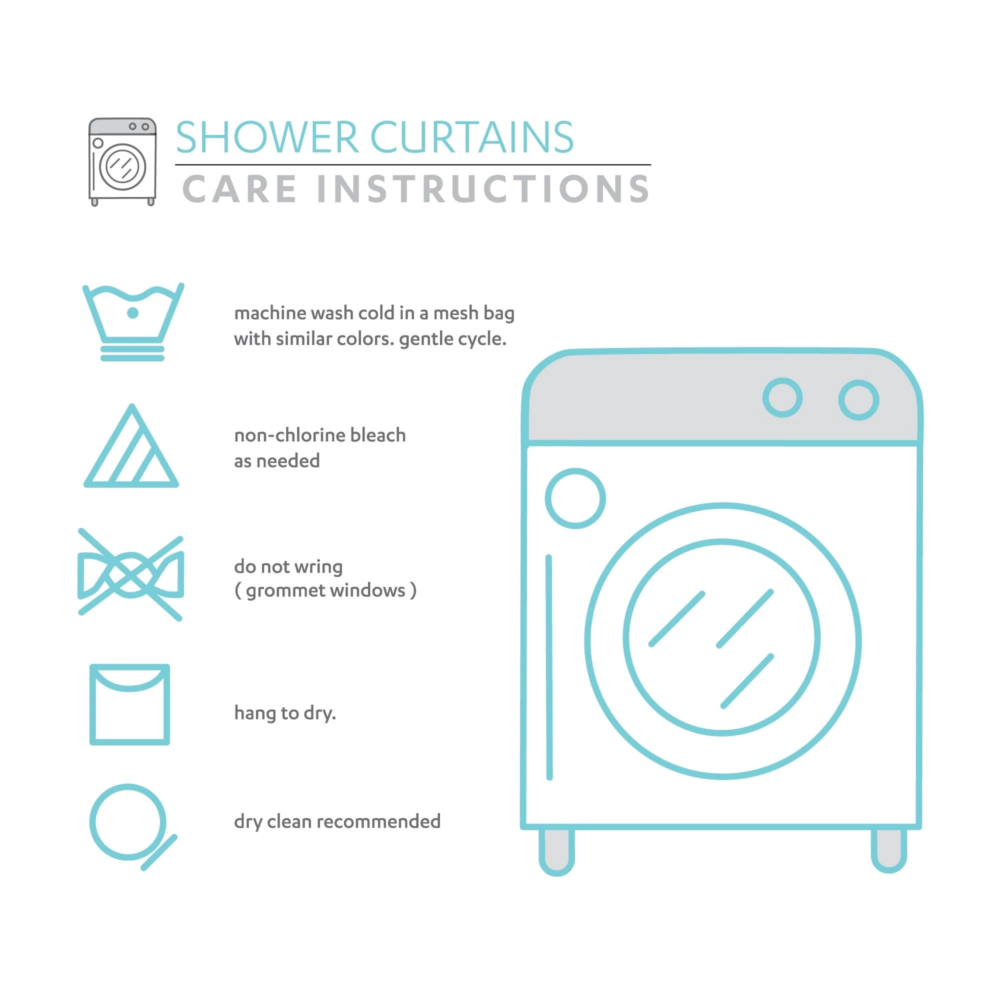 - Machine wash cold (mesh bag, gentle cycle, non-chlorine bleach)