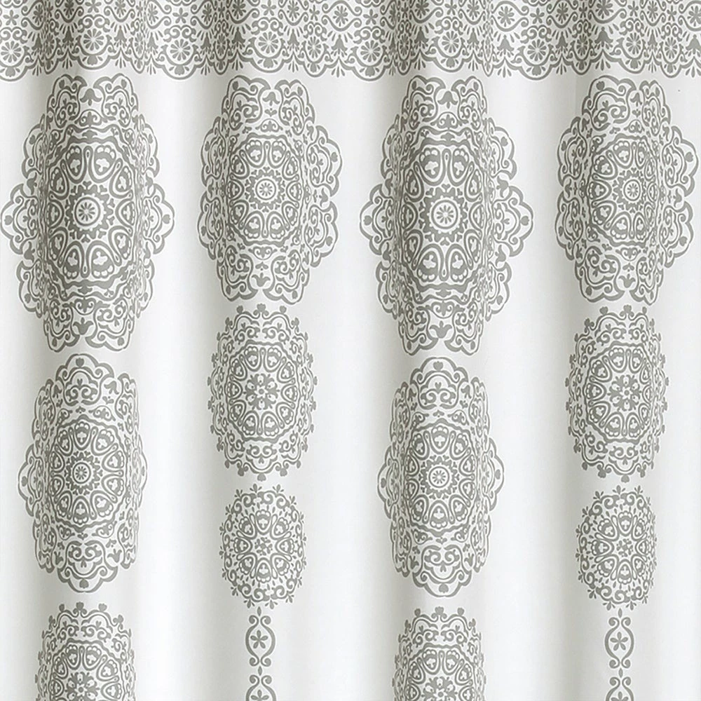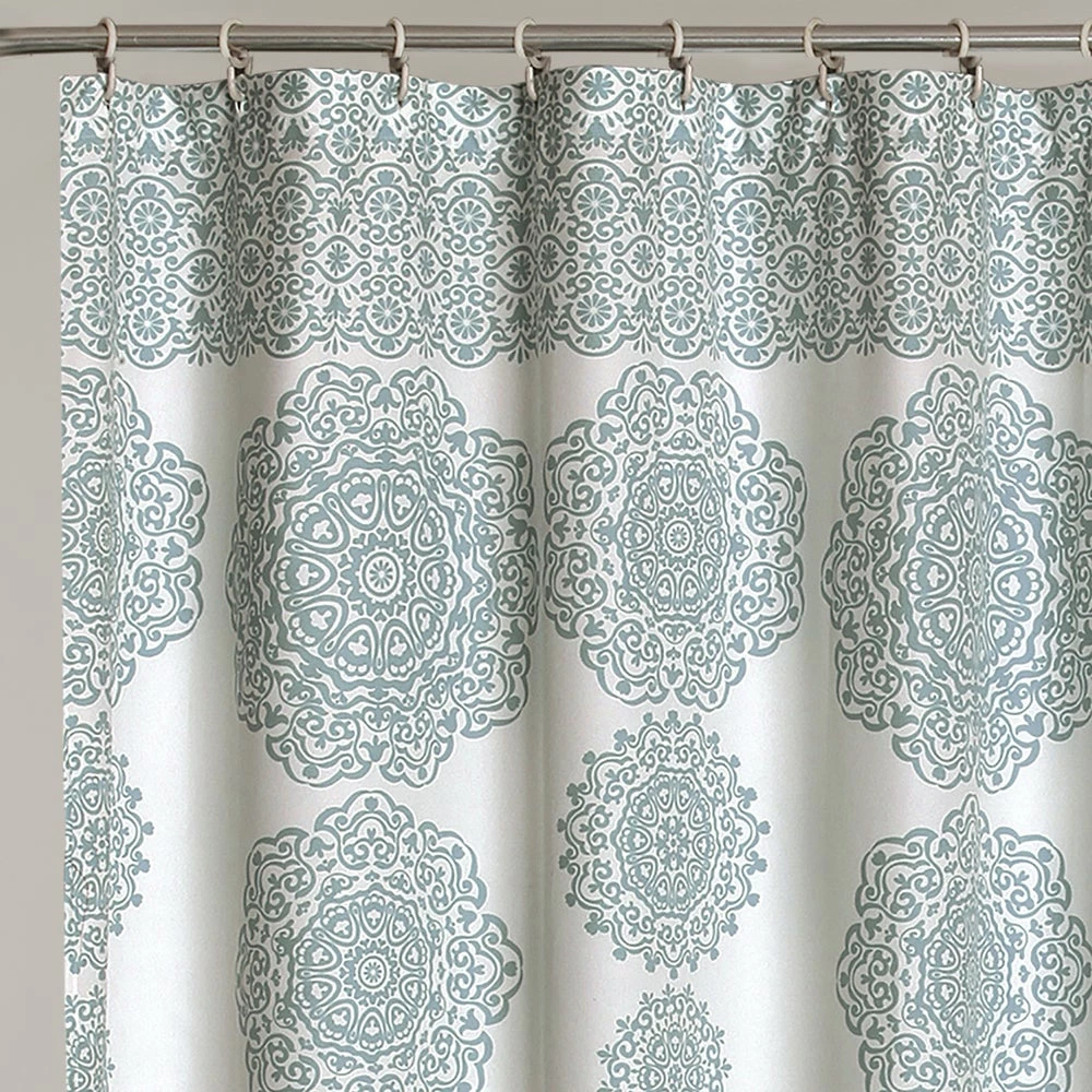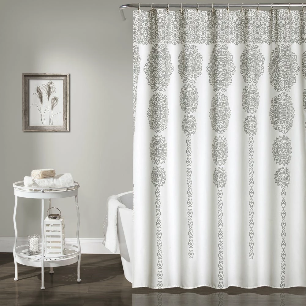 Give your bathroom an elegant finishing touch with this medallion-decorated polyester microfiber shower curtain. Crafted with a sleek buttonhole top that doesn’t interrupt the pattern, this curtain hangs easily with your choice of hooks, and the soft, machine-washable fabric is available in your choice of colors.