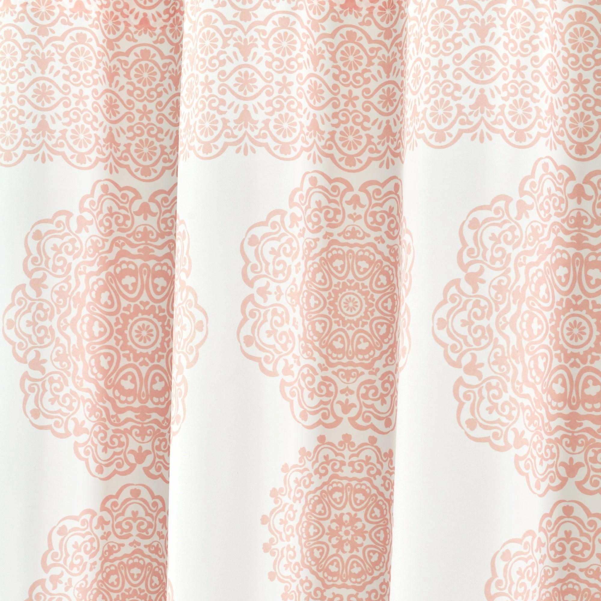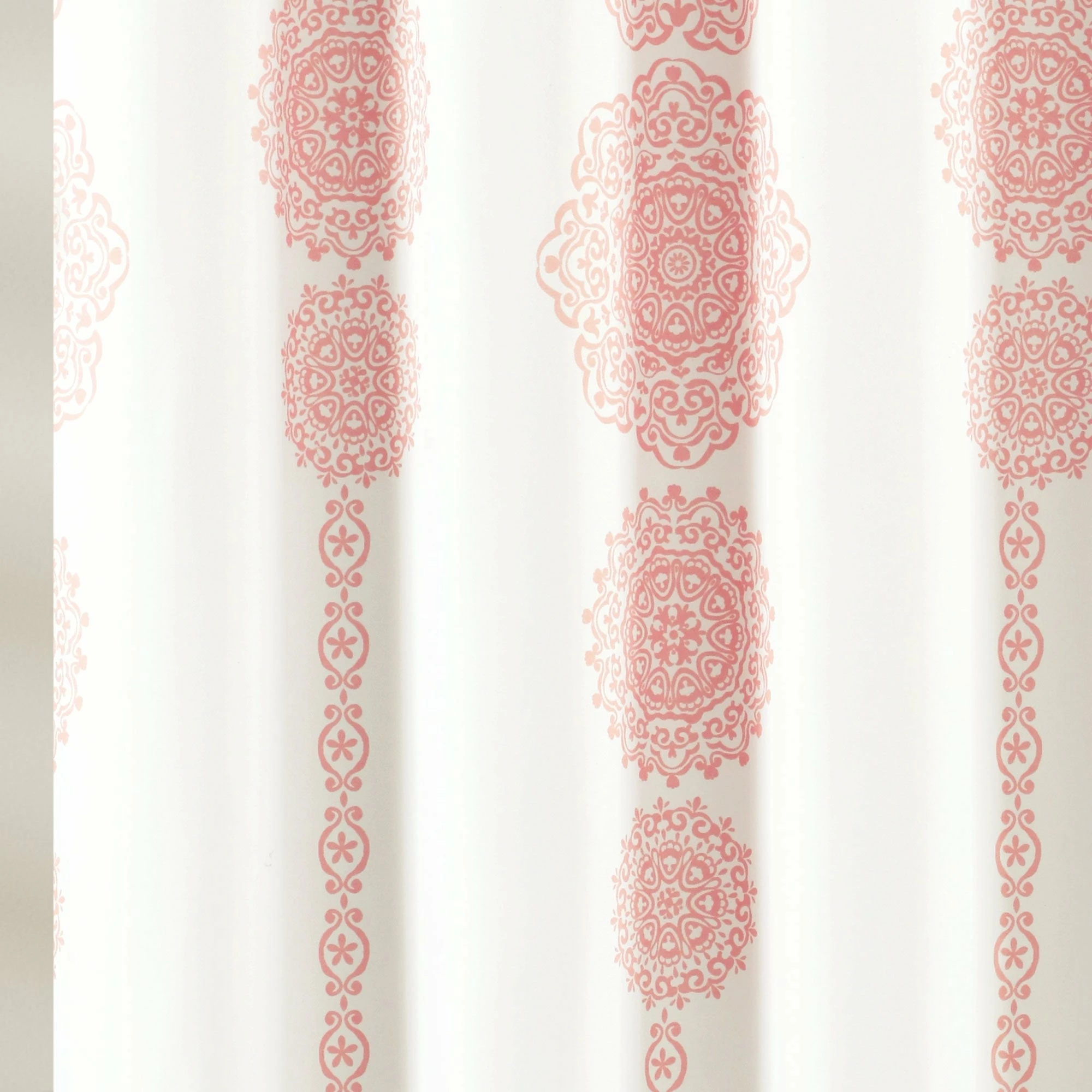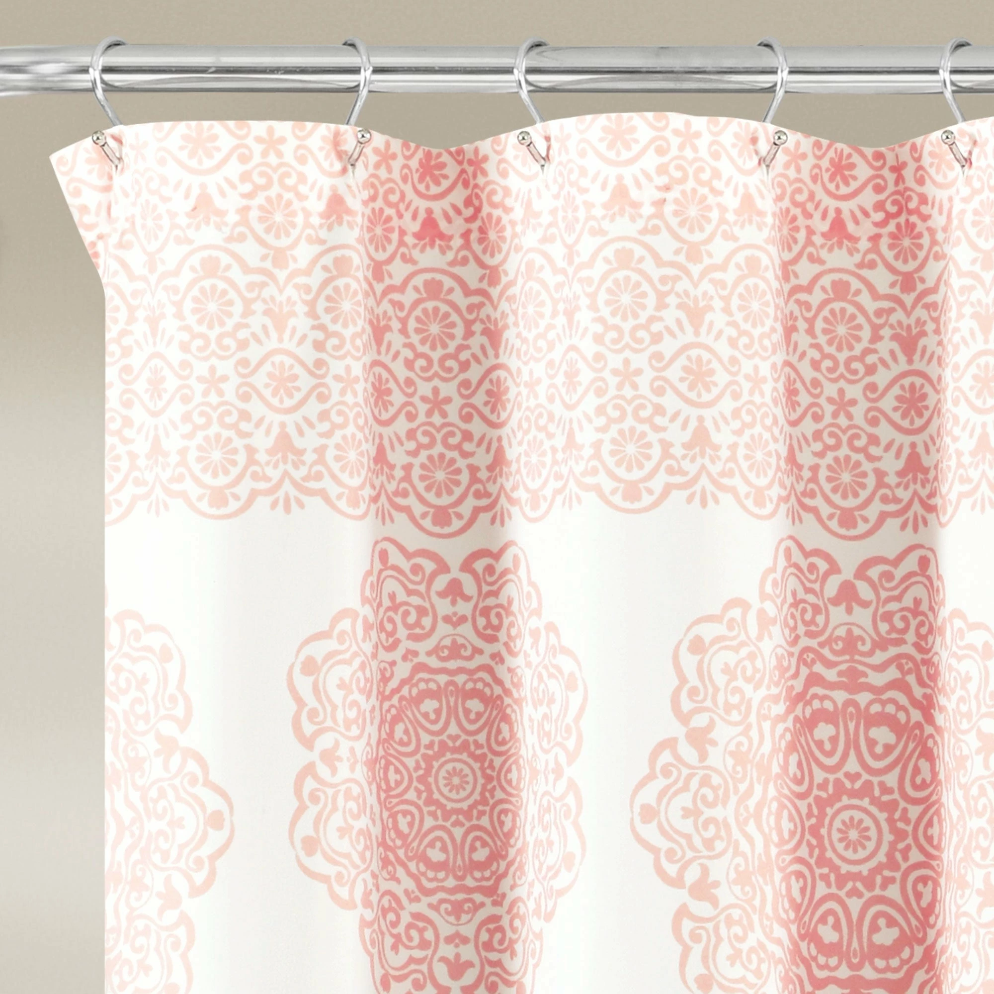 Give your bathroom an elegant finishing touch with this medallion-decorated polyester microfiber shower curtain. Crafted with a sleek buttonhole top that doesn’t interrupt the pattern, this curtain hangs easily with your choice of hooks, and the soft, machine-washable fabric is available in your choice of colors.